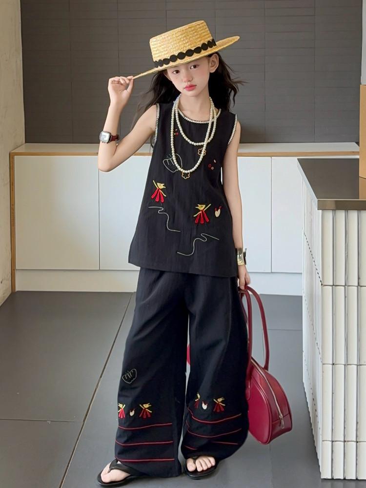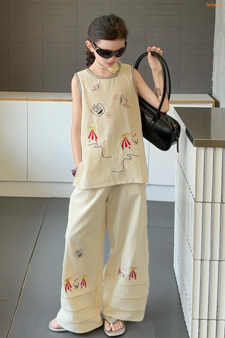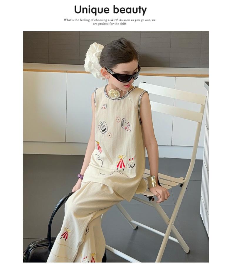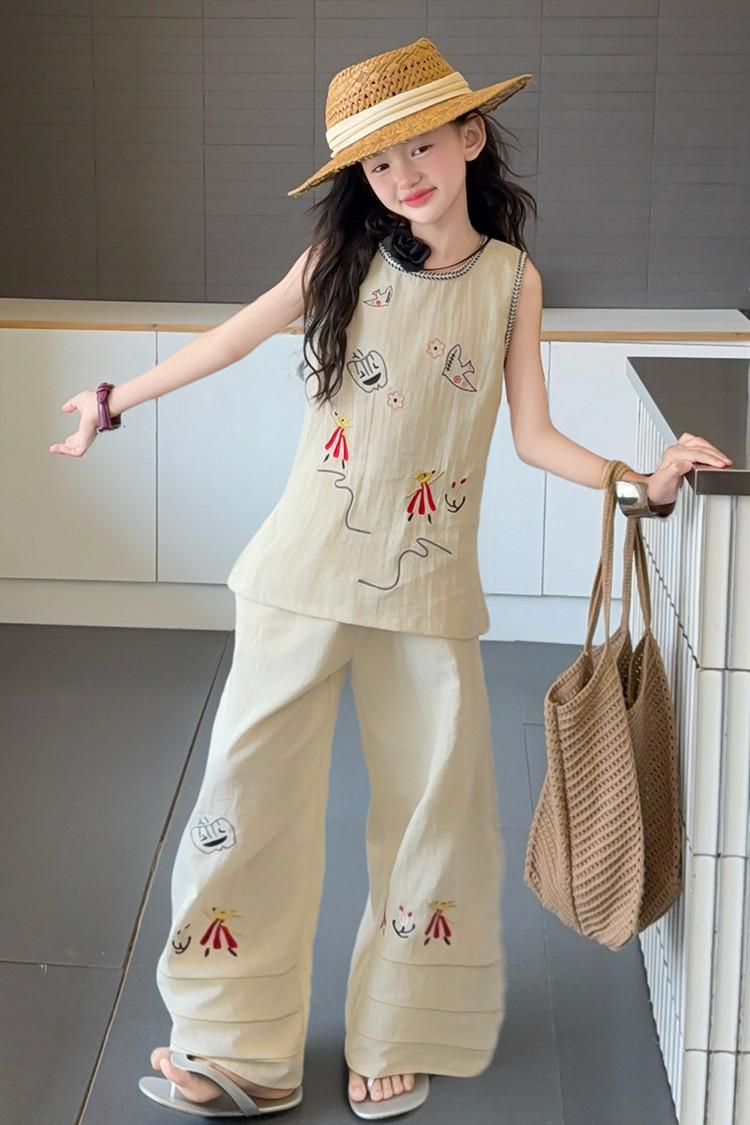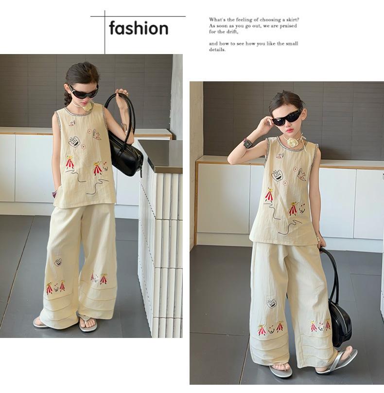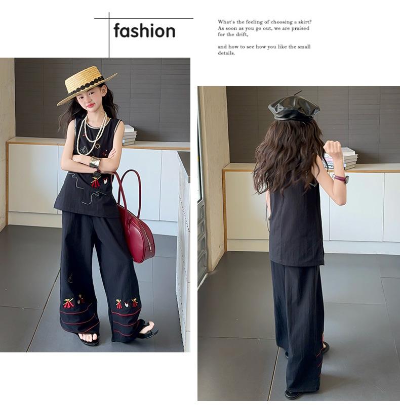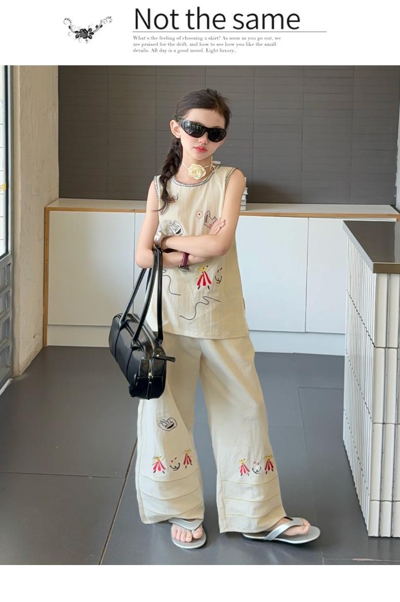 Conjunto de Top Casual sin Mangas y Pantalones de Pierna Ancha de Verano para Niñas al Estilo Coreano para Niños Mayores, Elegante Conjunto Delgado de Verano para Niñas