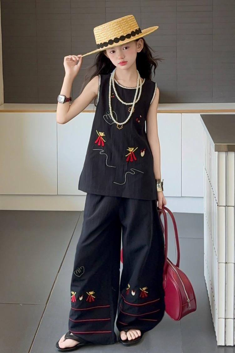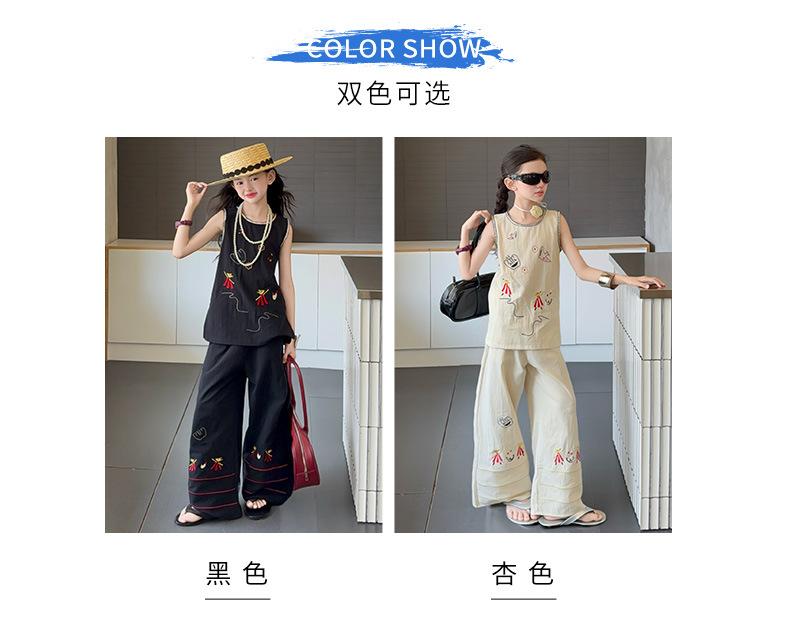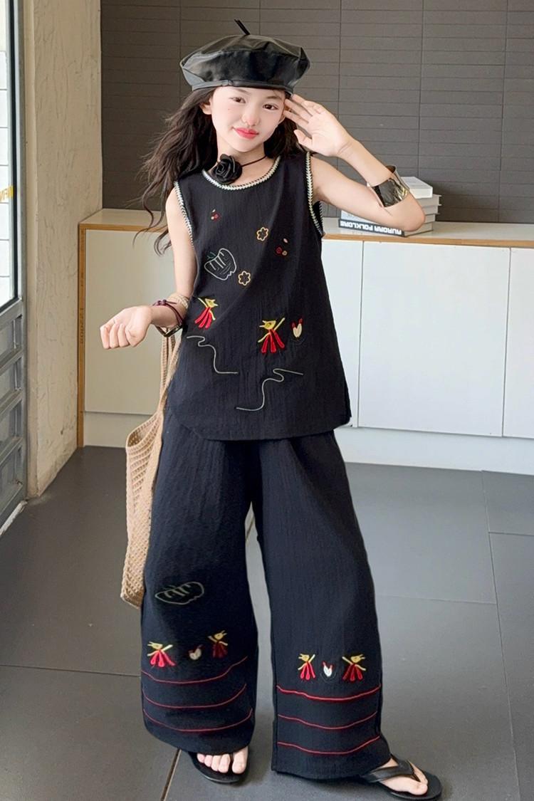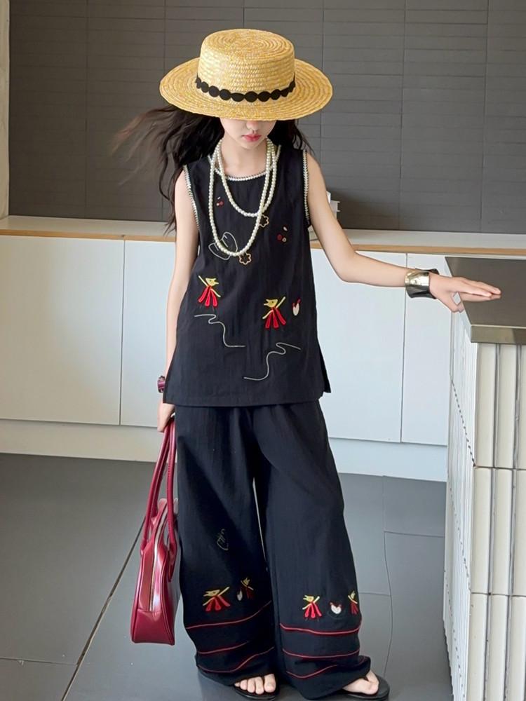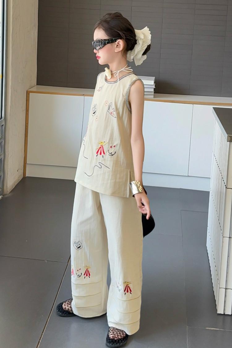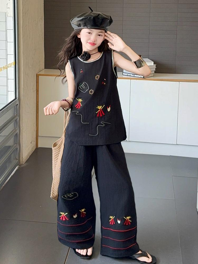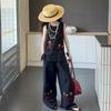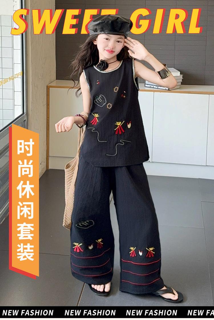 Conjunto de Top Casual sin Mangas y Pantalones de Pierna Ancha de Verano para Niñas al Estilo Coreano para Niños Mayores, Elegante Conjunto Delgado de Verano para Niñas