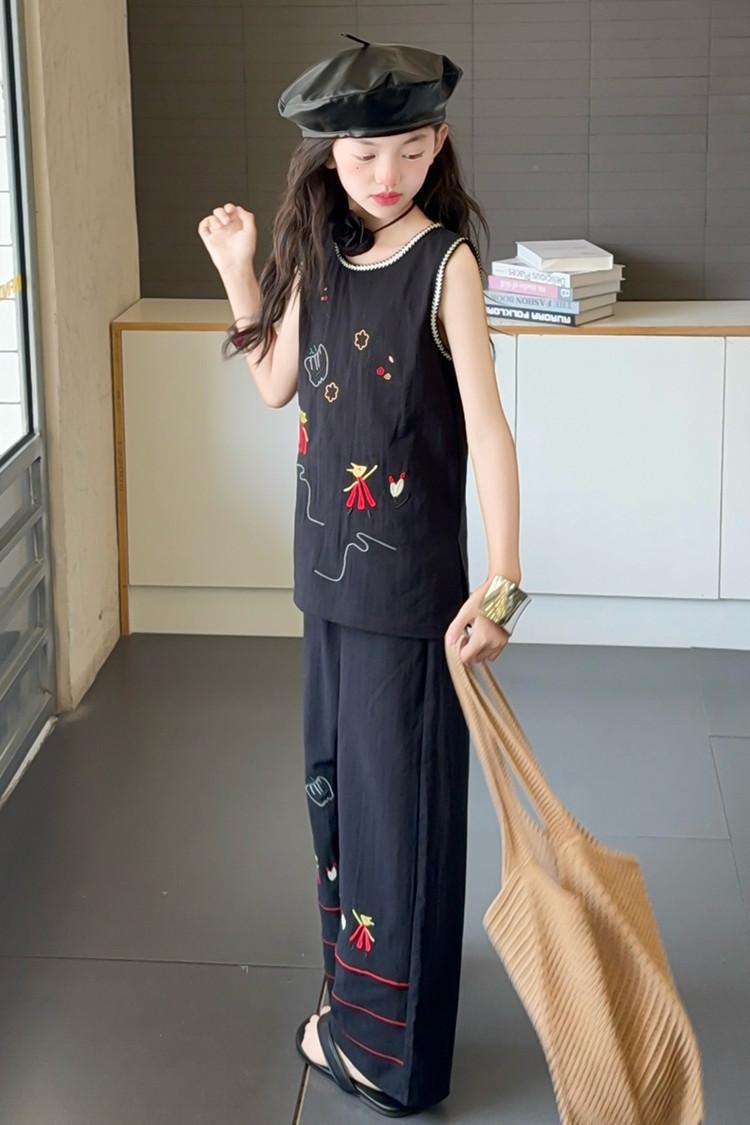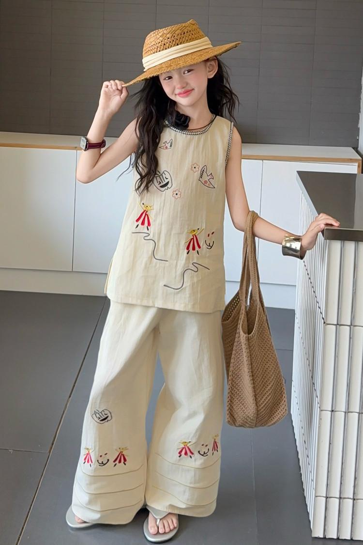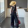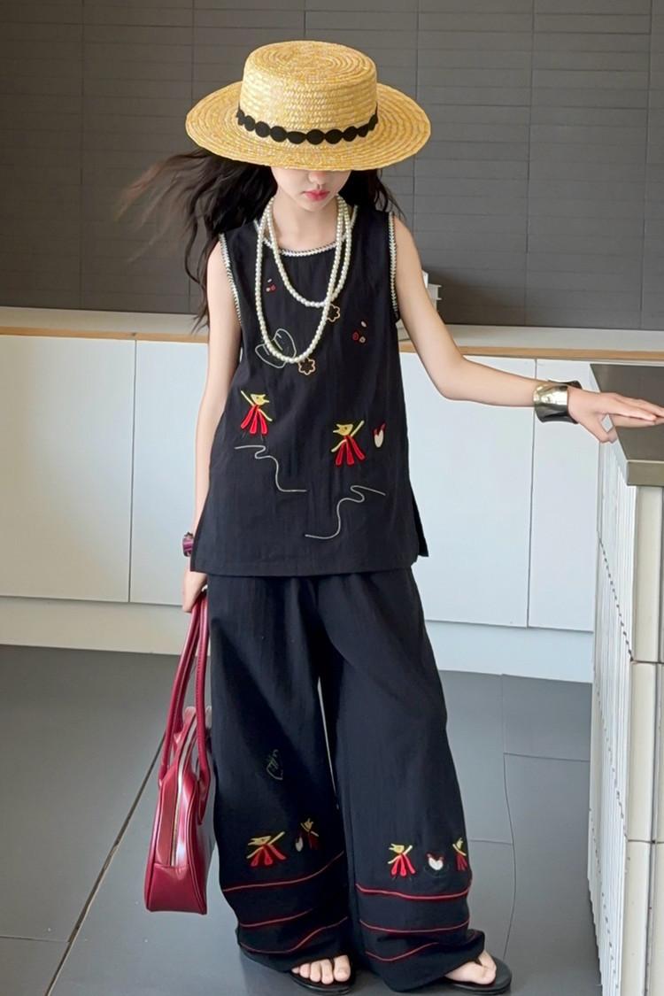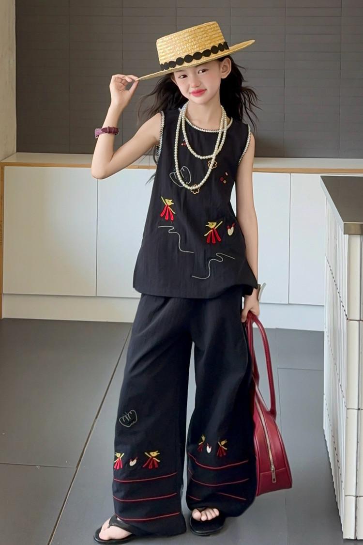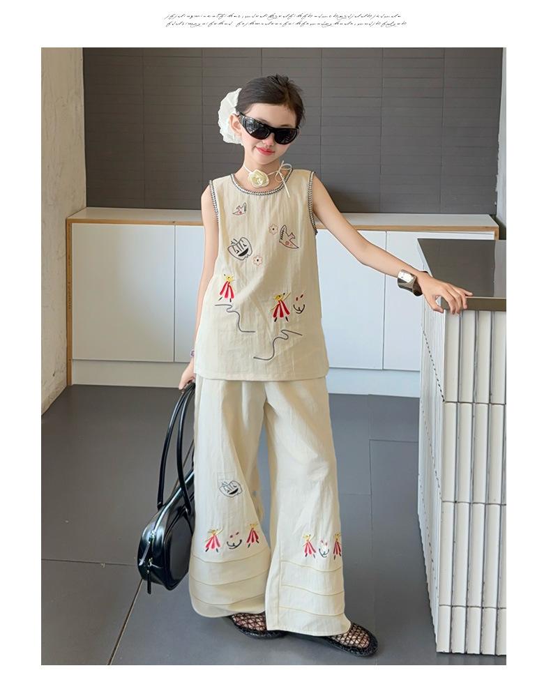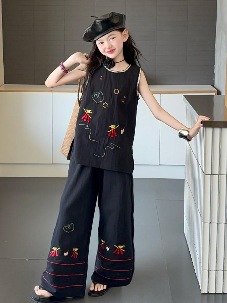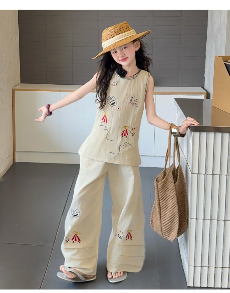 Conjunto de Top Casual sin Mangas y Pantalones de Pierna Ancha de Verano para Niñas al Estilo Coreano para Niños Mayores, Elegante Conjunto Delgado de Verano para Niñas