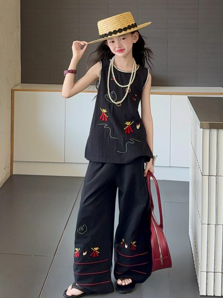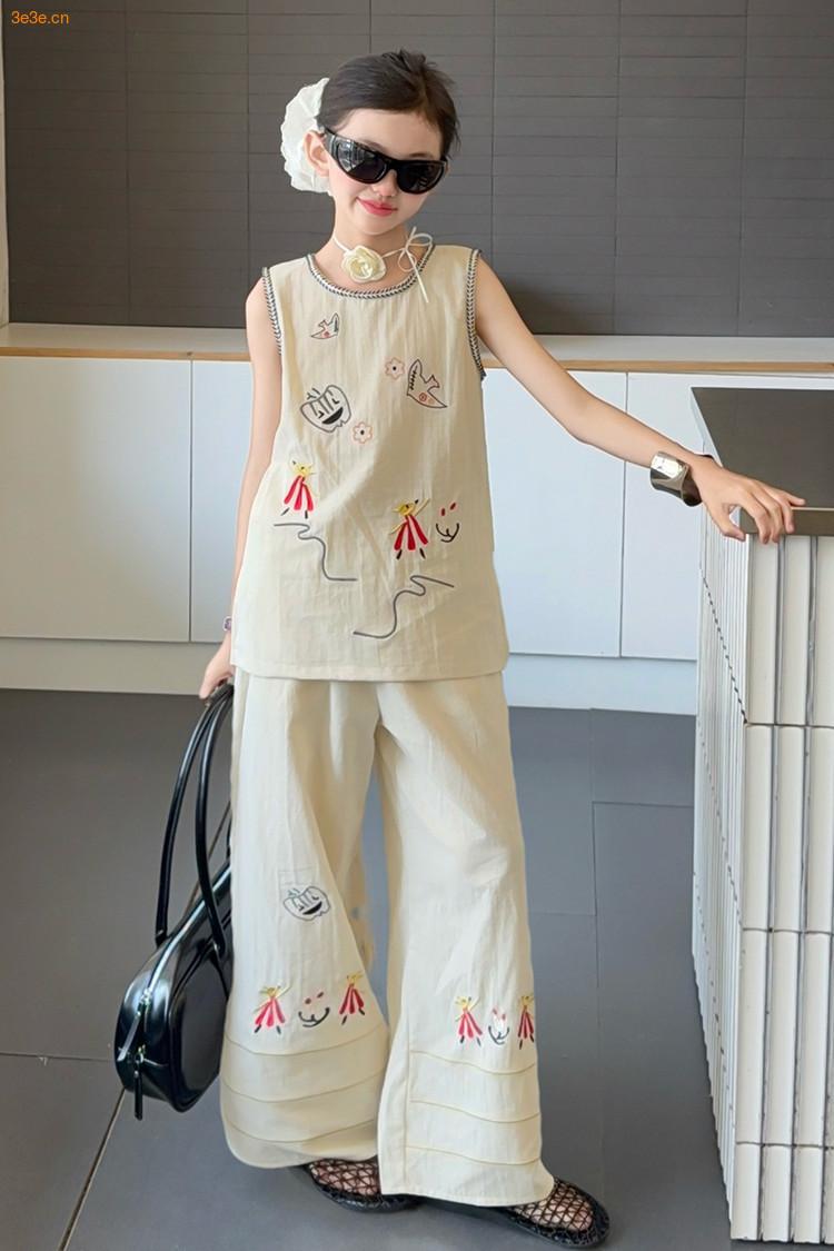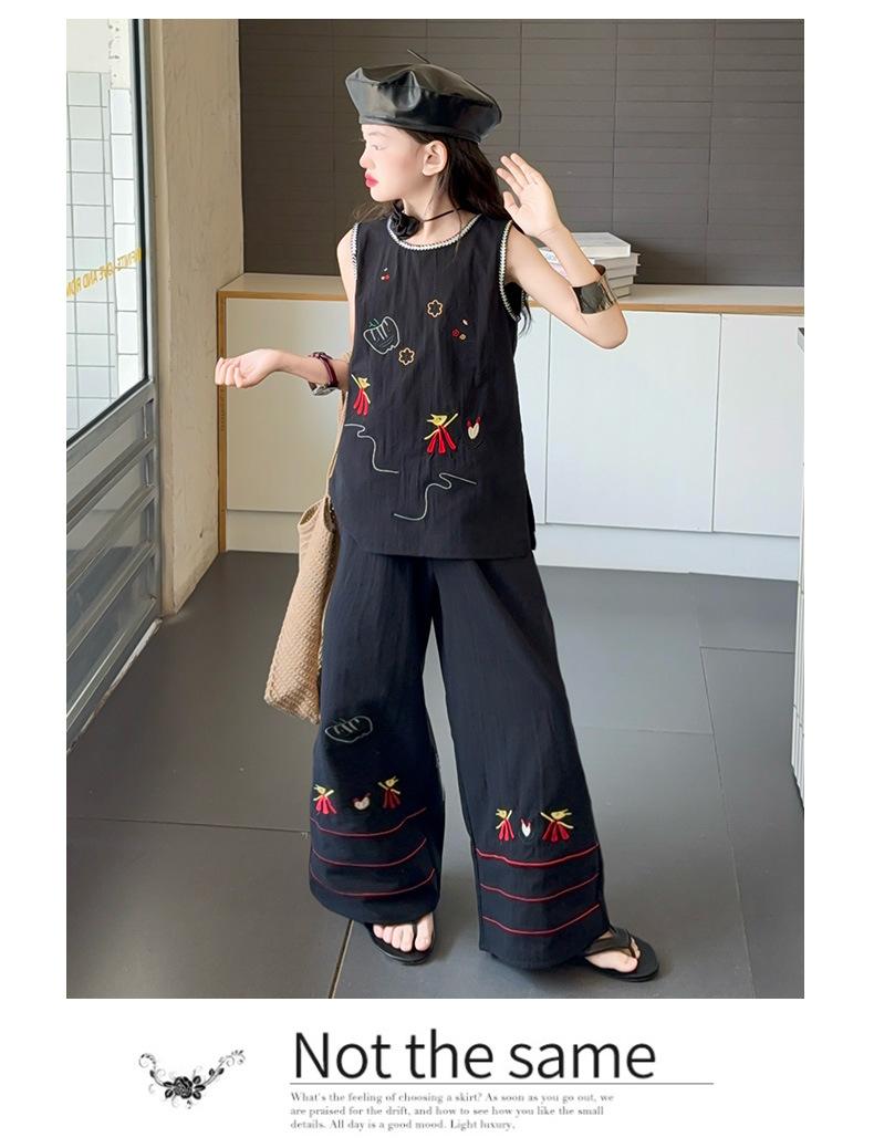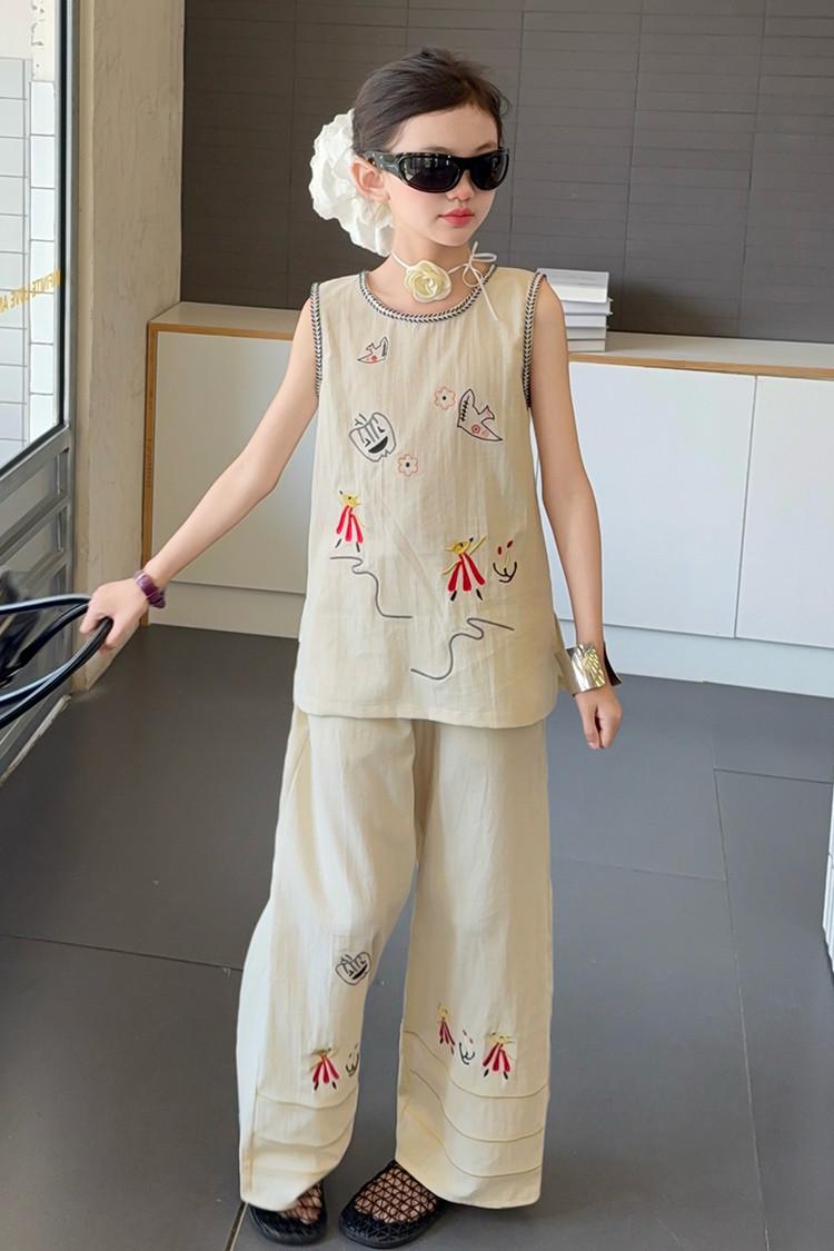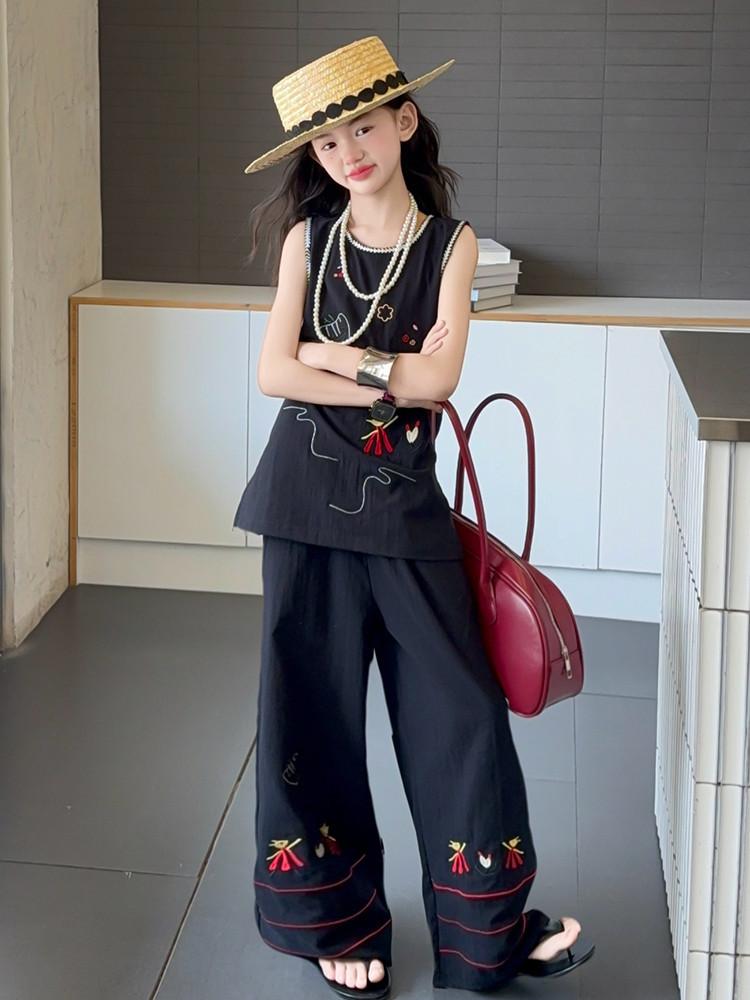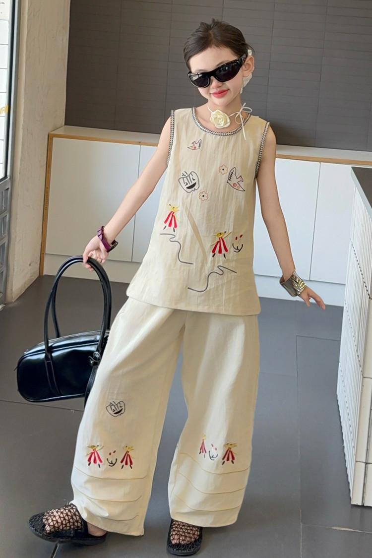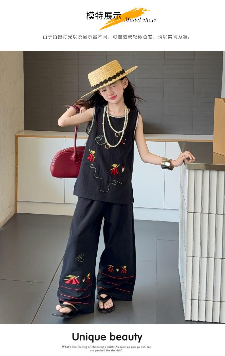 Conjunto de Top Casual sin Mangas y Pantalones de Pierna Ancha de Verano para Niñas al Estilo Coreano para Niños Mayores, Elegante Conjunto Delgado de Verano para Niñas