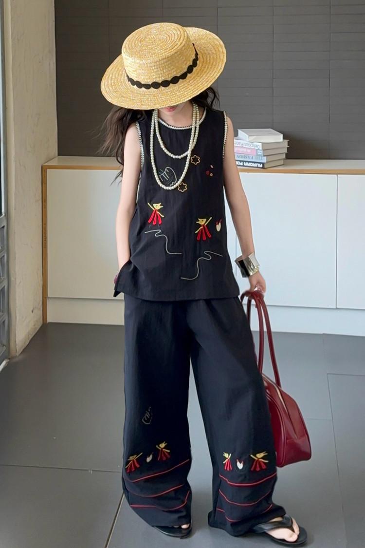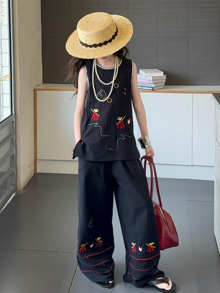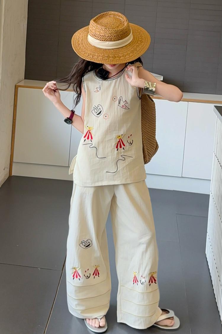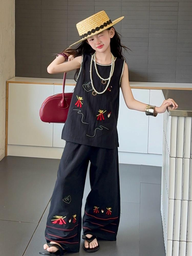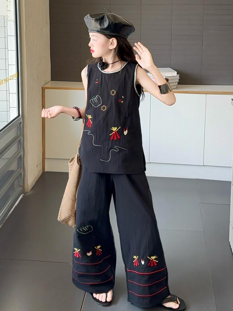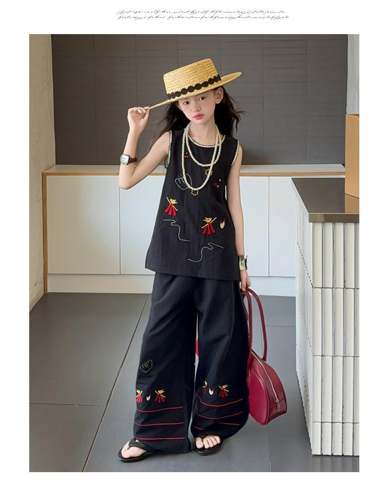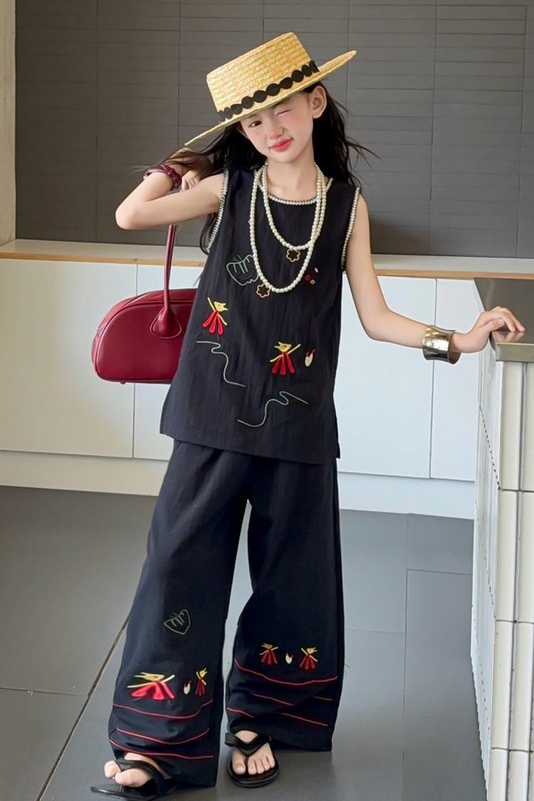 Conjunto de Top Casual sin Mangas y Pantalones de Pierna Ancha de Verano para Niñas al Estilo Coreano para Niños Mayores, Elegante Conjunto Delgado de Verano para Niñas