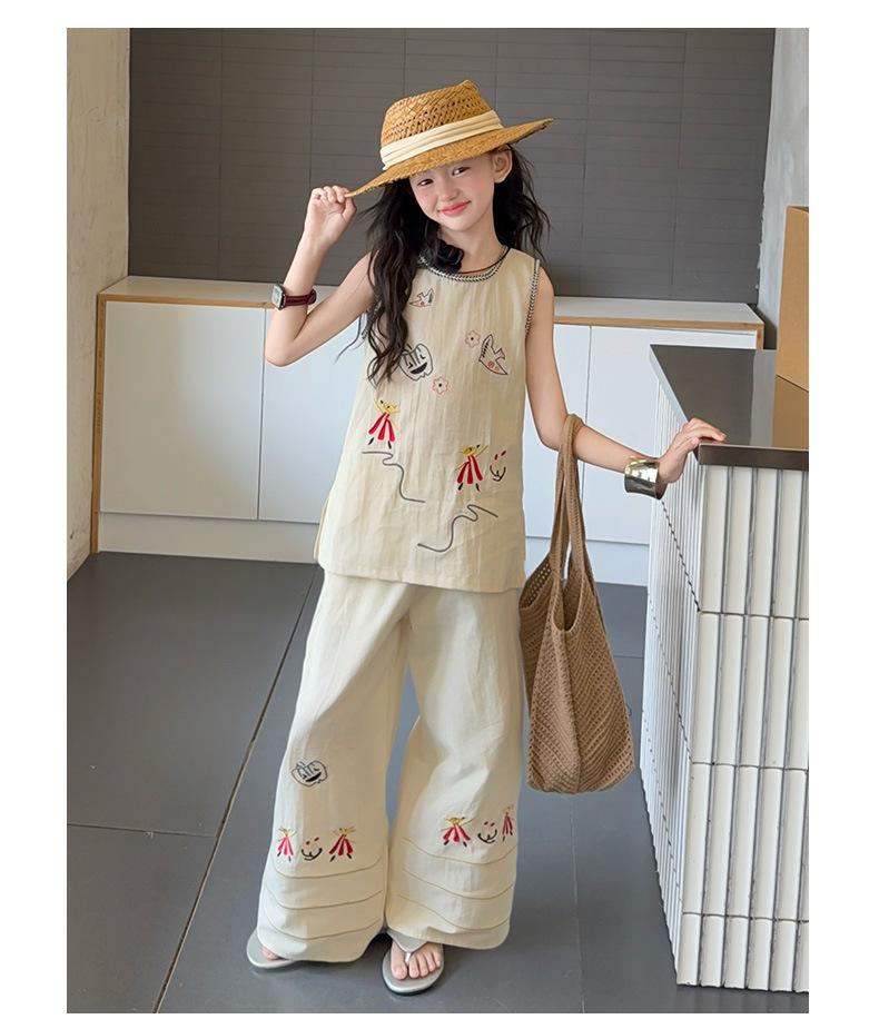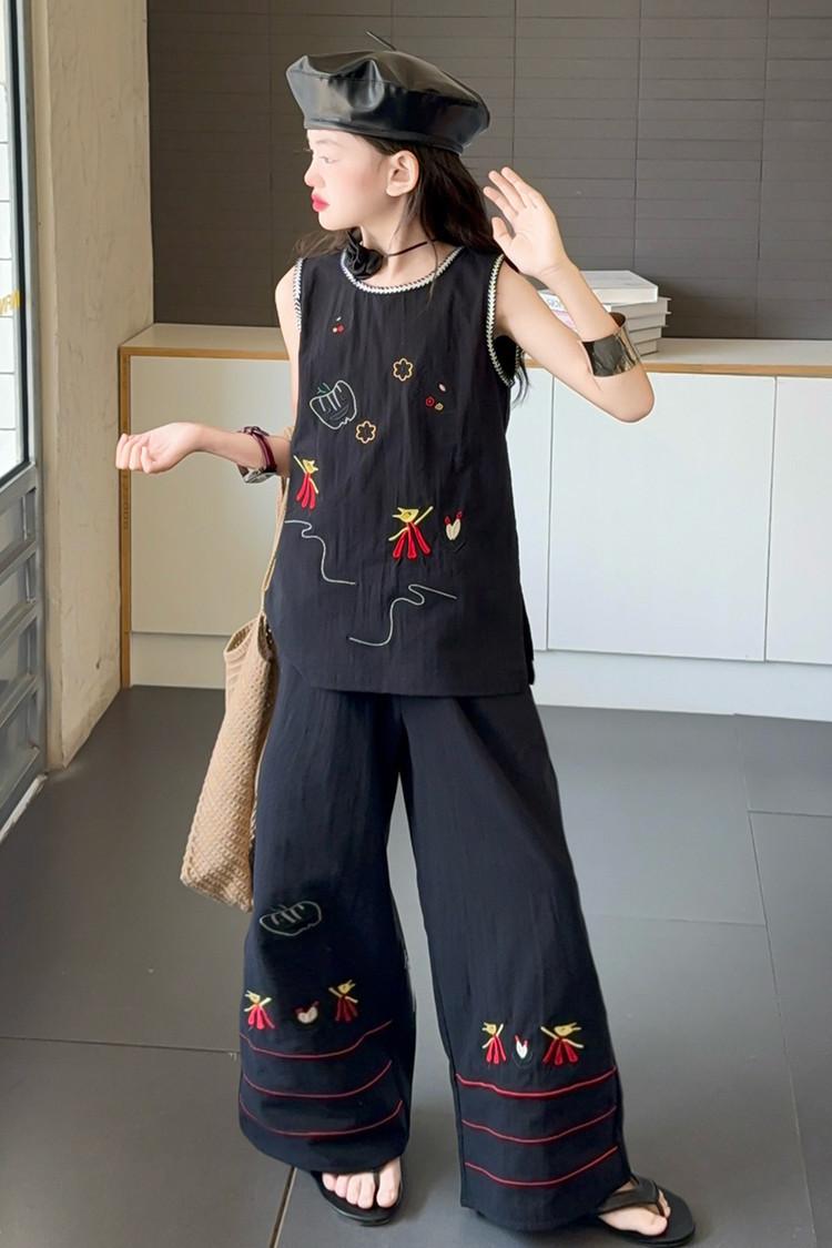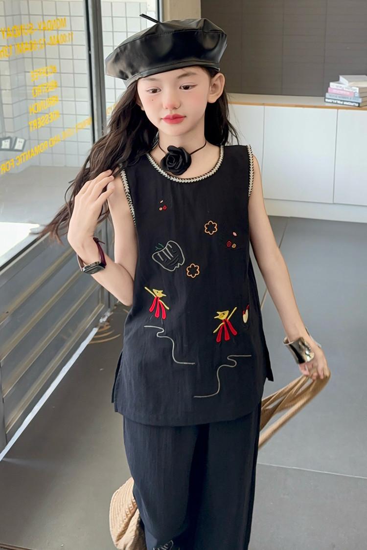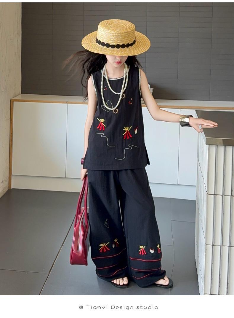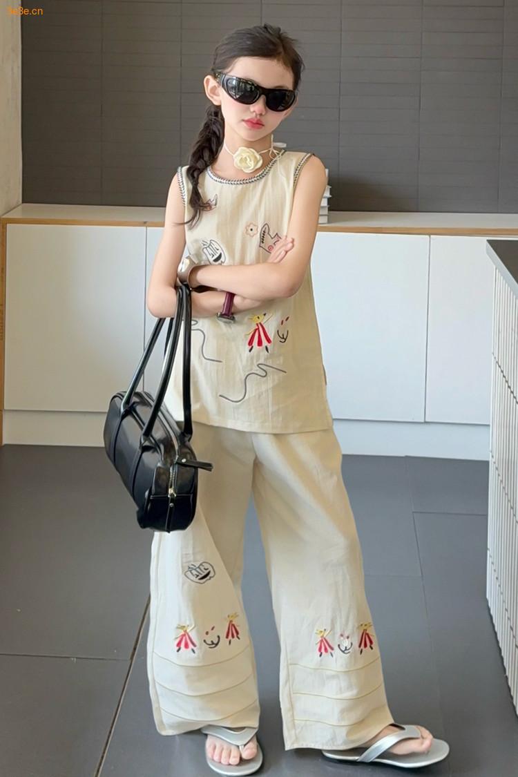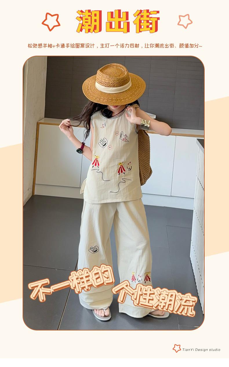 Conjunto de Top Casual sin Mangas y Pantalones de Pierna Ancha de Verano para Niñas al Estilo Coreano para Niños Mayores, Elegante Conjunto Delgado de Verano para Niñas