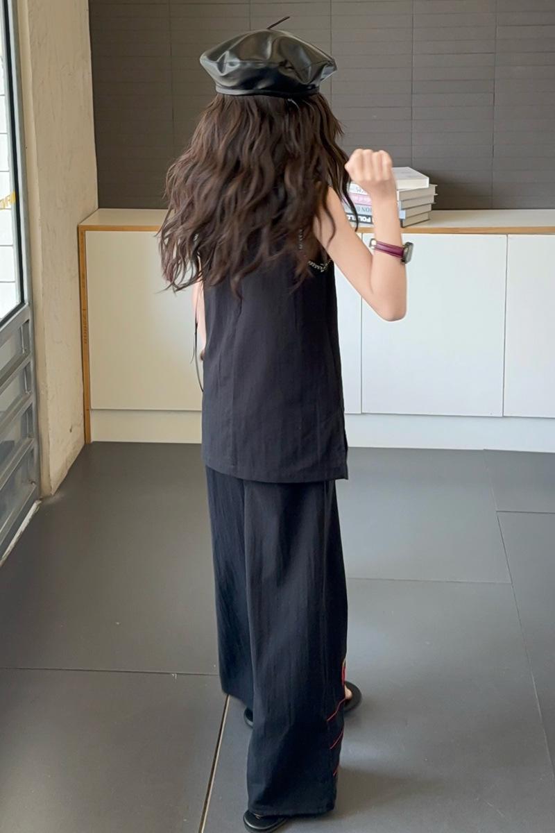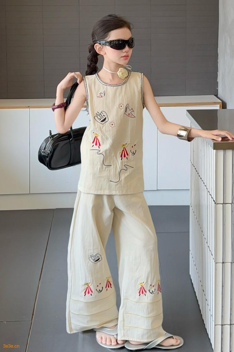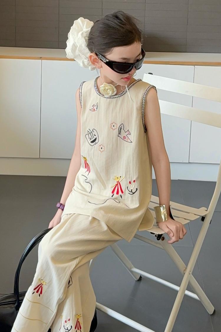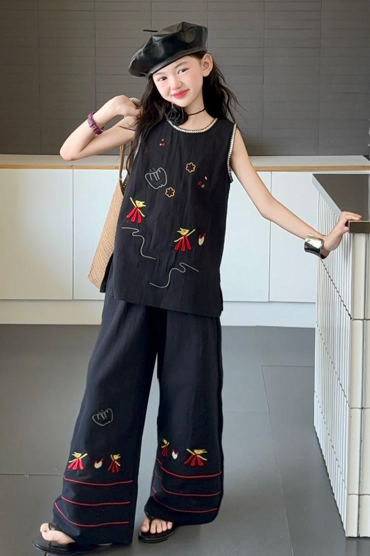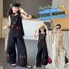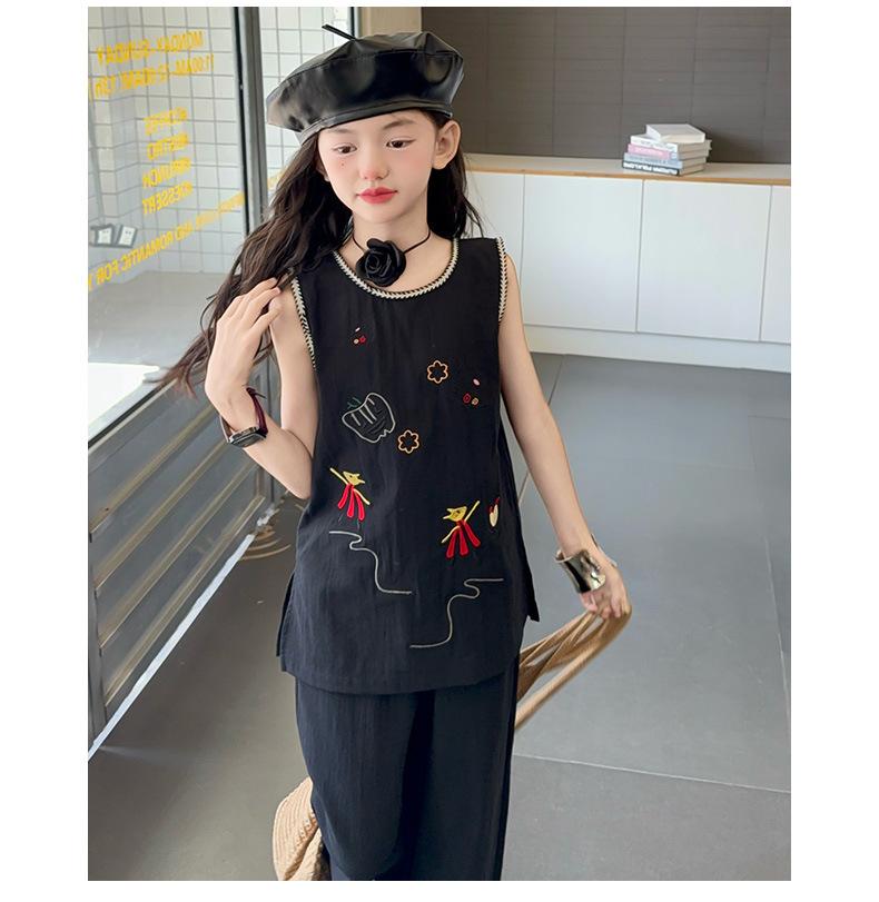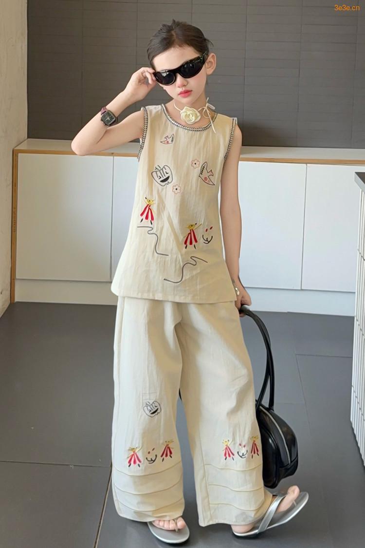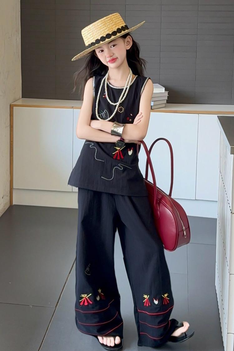 Conjunto de Top Casual sin Mangas y Pantalones de Pierna Ancha de Verano para Niñas al Estilo Coreano para Niños Mayores, Elegante Conjunto Delgado de Verano para Niñas