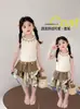 Traje Irregular de Manga Corta para Niñas Traje de Verano 2025 Nueva Moda Falda de Verano para Niños Traje de Tres Piezas para Niñas