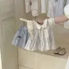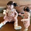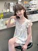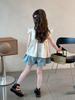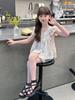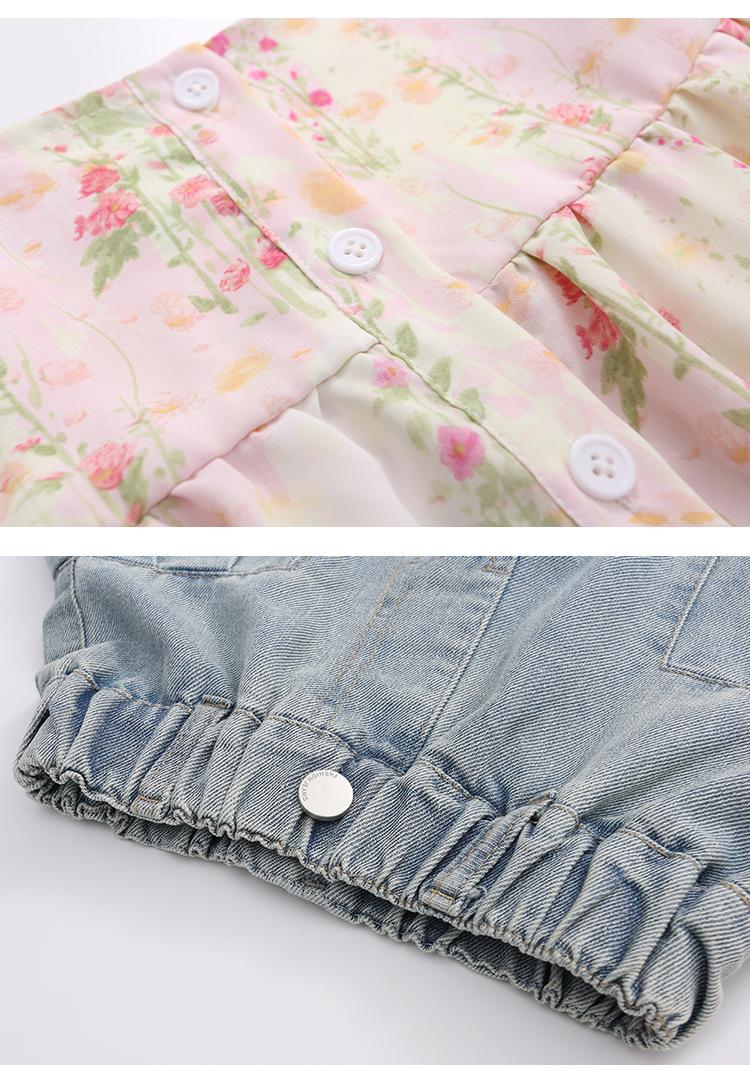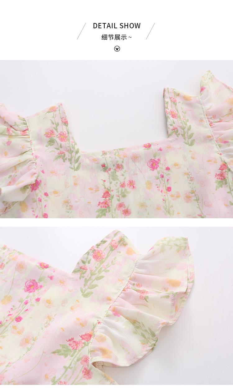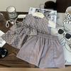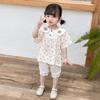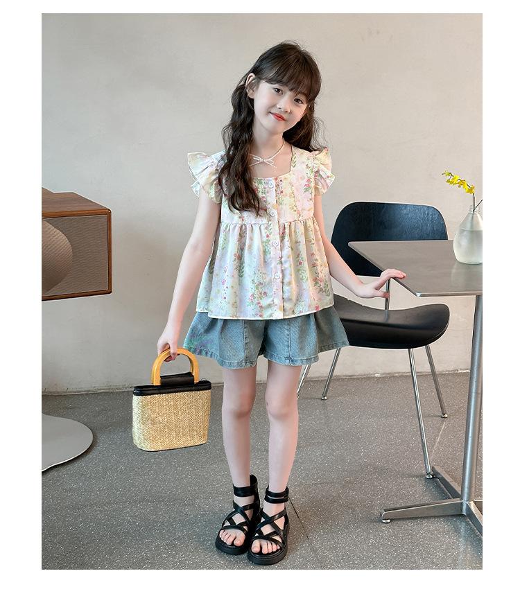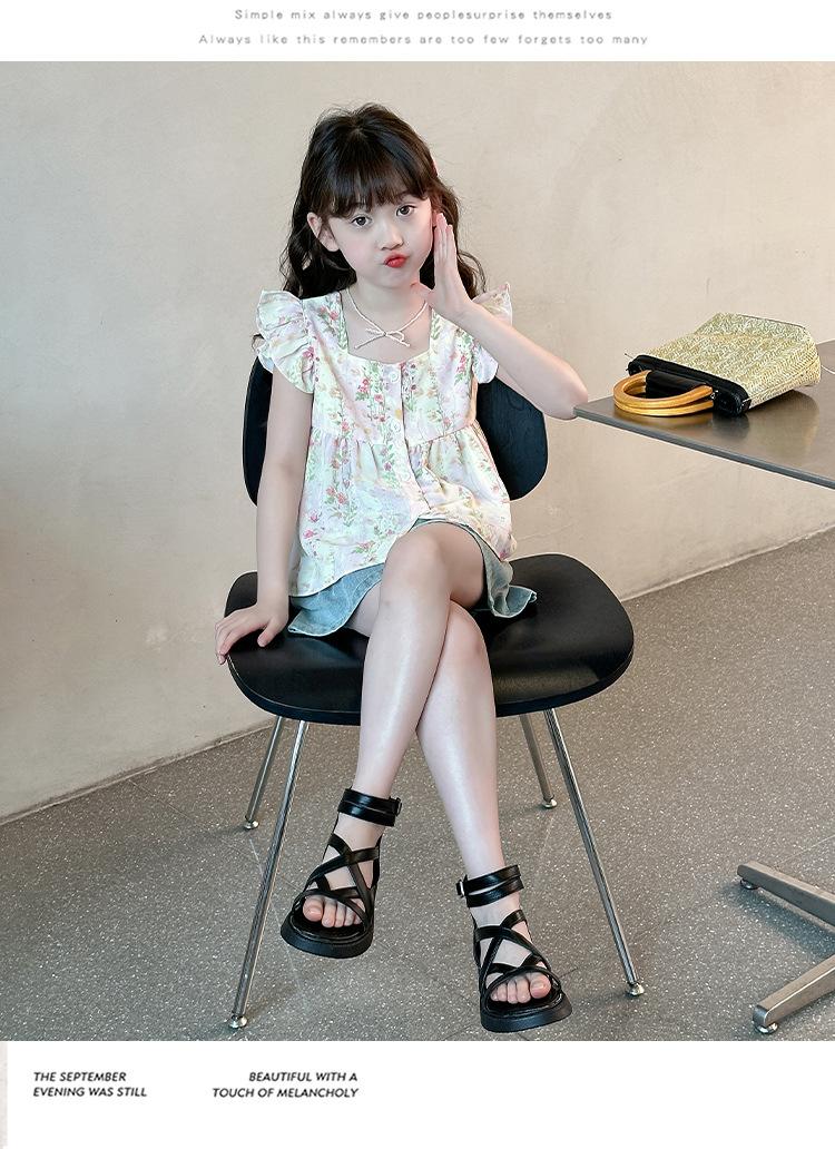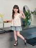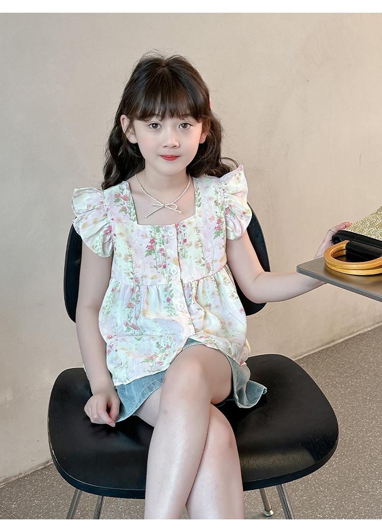 Traje Dulce de Verano para Niñas 2025 Nuevo Estilo Niña Pequeña Muñeca Francesa Camisa Floral Shorts Conjunto de Dos Piezas