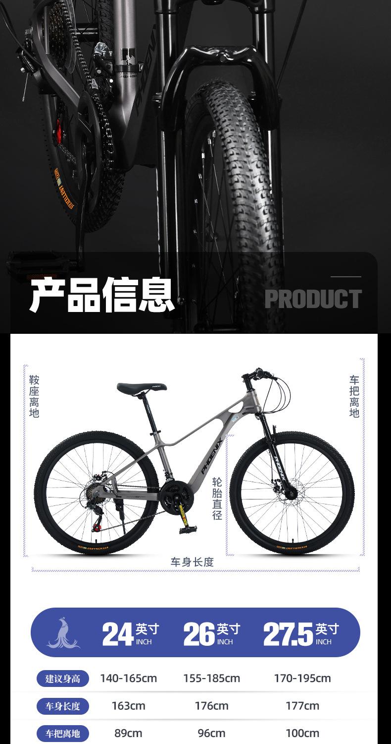 Bicicleta de Montaña de Aleación de Magnesio Phoenix para Adultos Hombres y Mujeres Bicicleta para Estudiantes Jóvenes con Velocidades Variables y Amortiguación Bicicleta de Carreras para Hombres