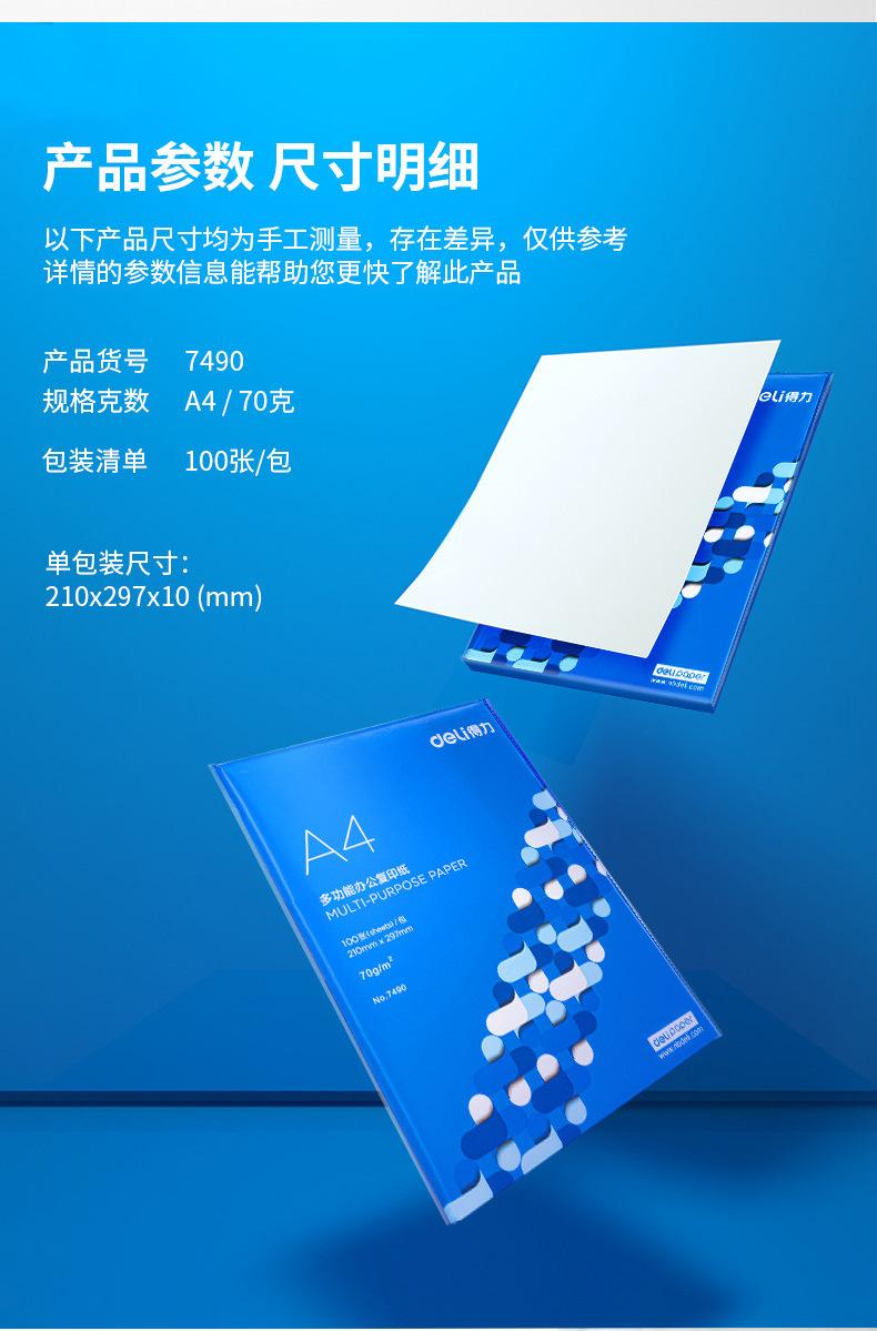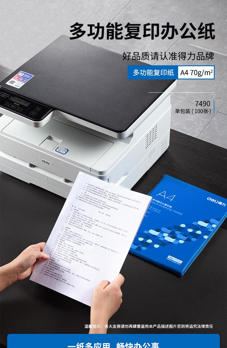 Deli A4 papel de impresión papel de copia paquete individual 100 suministros de oficina 70g papel borrador engrosado papel de copia A3 estudiantes