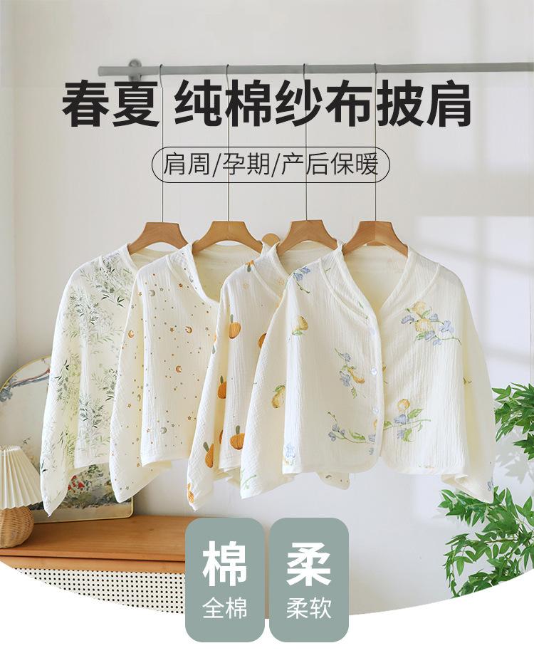 Feliz Luna 2025 Camiseta sin mangas de gasa de algodón puro Capa de maternidad Verano Estilo delgado Protección de hombros posparto Lactancia Sala con aire acondicionado Chal cálido