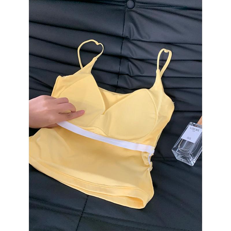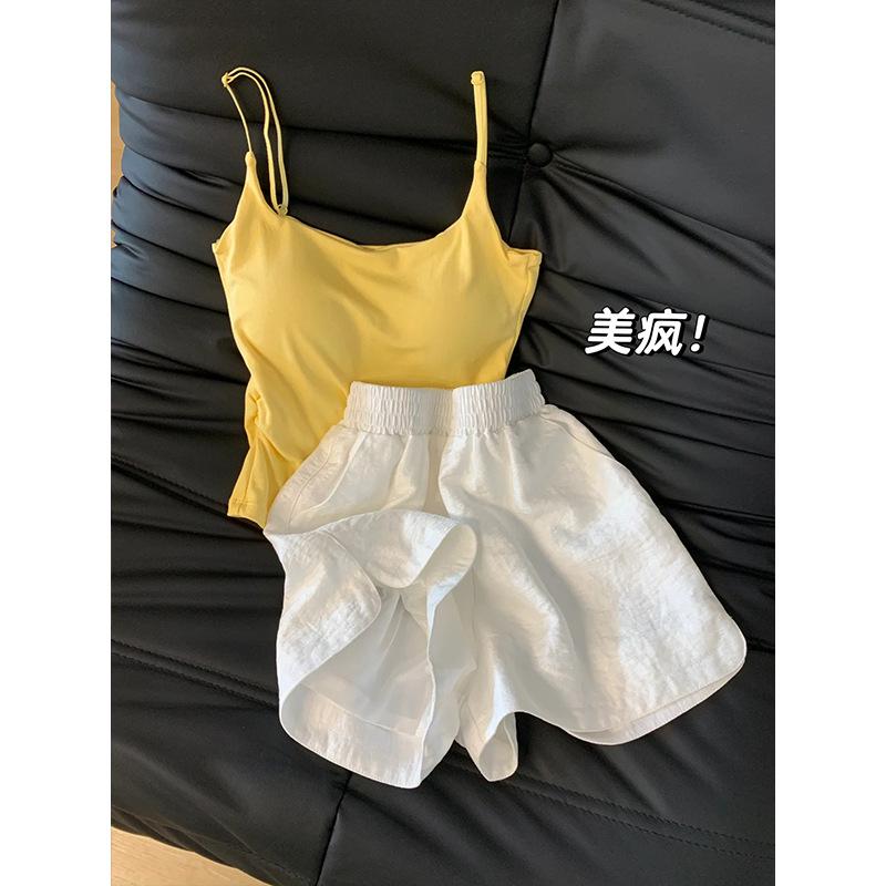 Pijama Simple de Algodón Puro para Mujer 2024 Verano Nuevo Estilo Tirantes con Almohadilla en el Pecho Cómodo Conjunto Puro Ropa de Casa