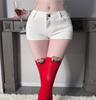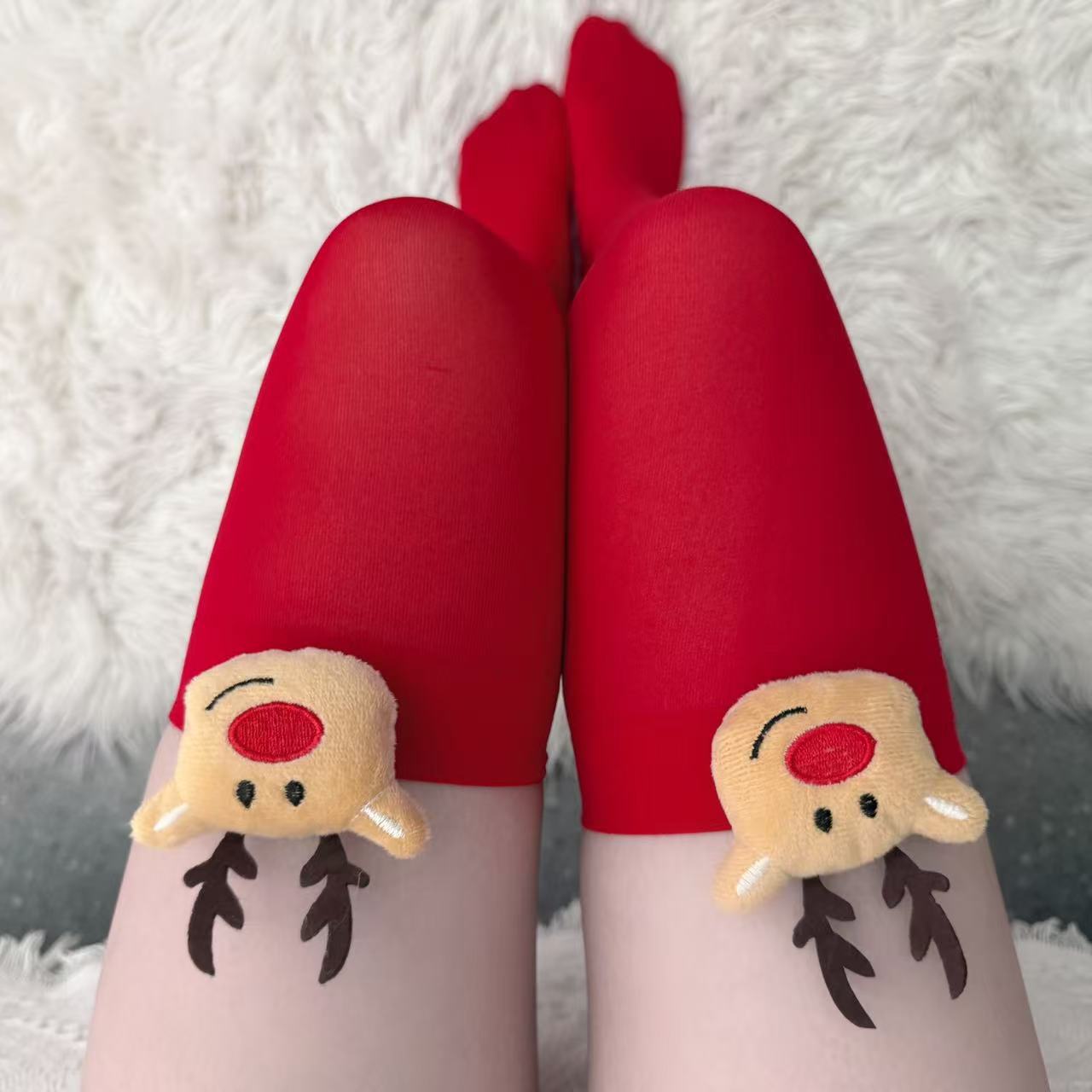 Calcetines navideños nuevos transfronterizos calcetines rojos transfronterizos hasta la rodilla para mujer calcetines verdes amarillos hasta la rodilla Halloween europeo y americano morado