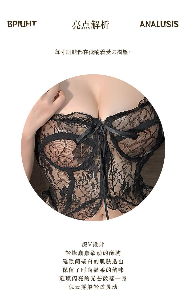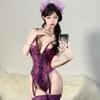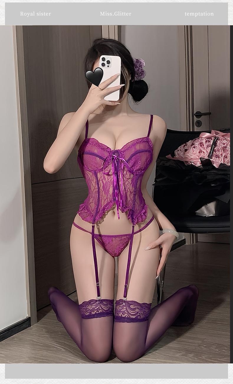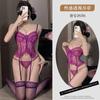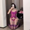 Lencería Sexy Encaje Sexy Deseo Puro Traje de Tirantes con Aberturas Femenino Pijama Morado Tentación Cintura Body Uniforme