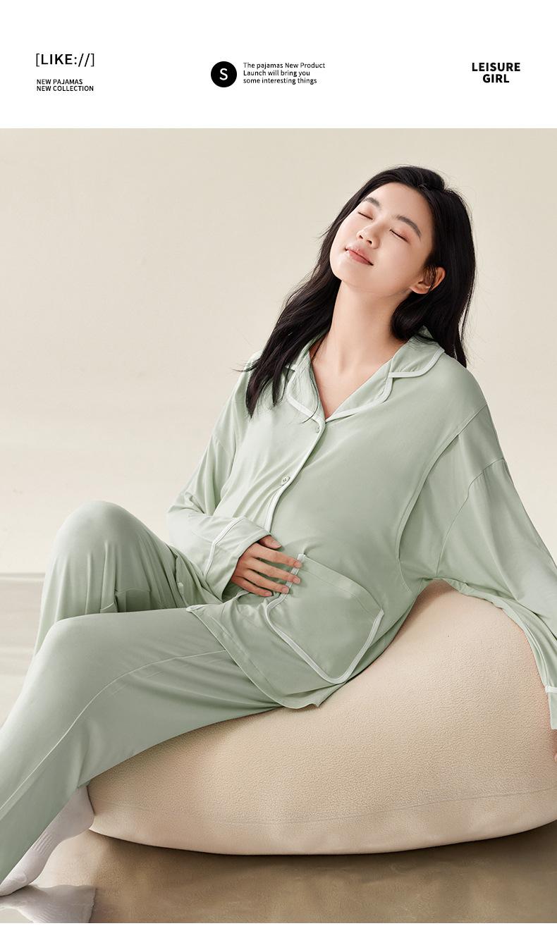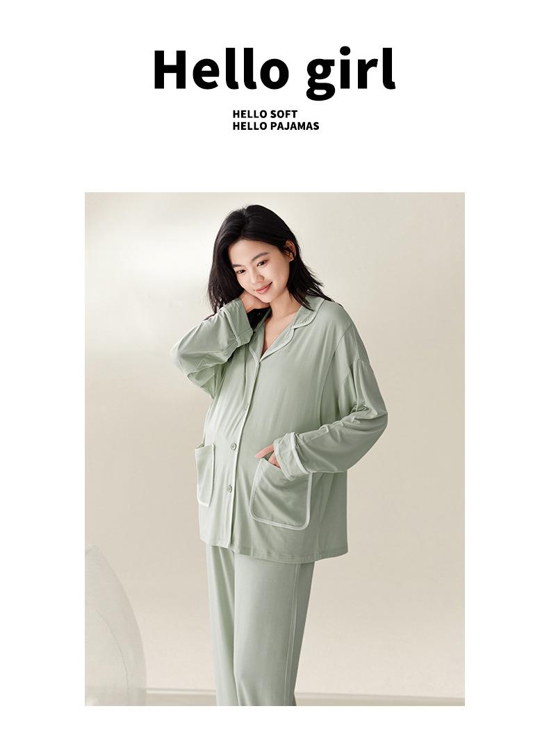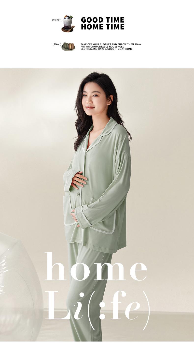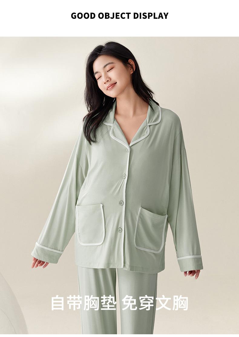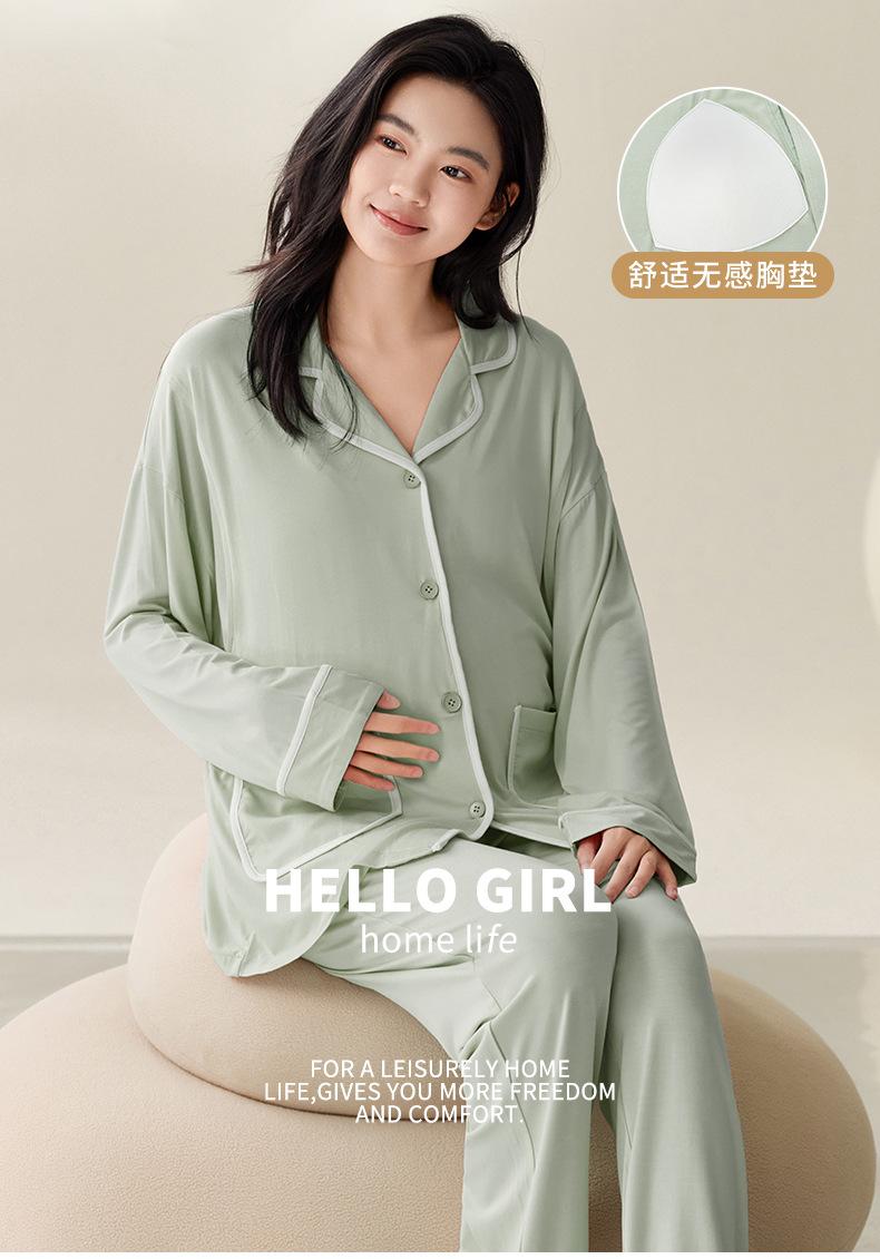 Pijama de Maternidad de Modal de Manga Larga para Primavera y Otoño de Xi Yue, Lactancia Postparto con Almohadillas en el Pecho, Ropa de Confinamiento, Conjunto de Dos Piezas
