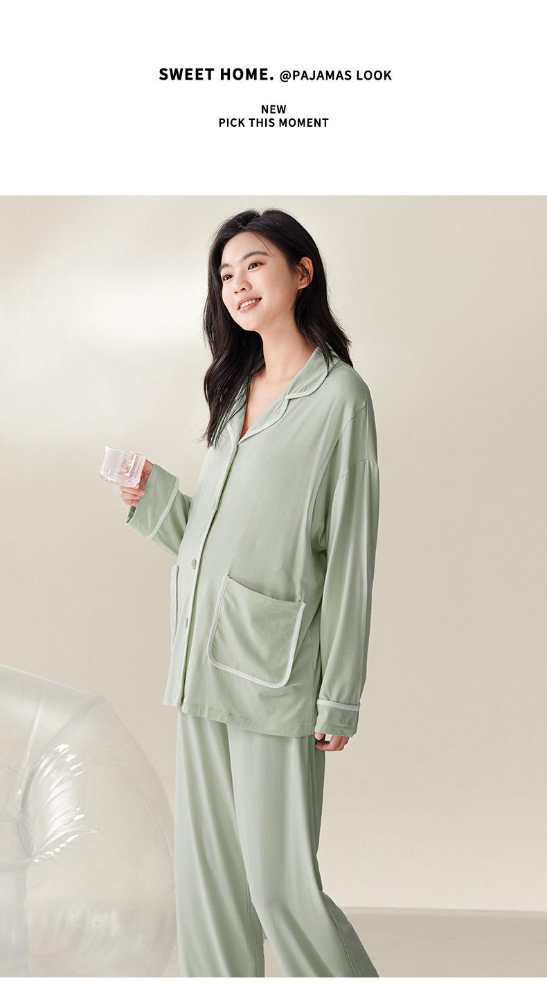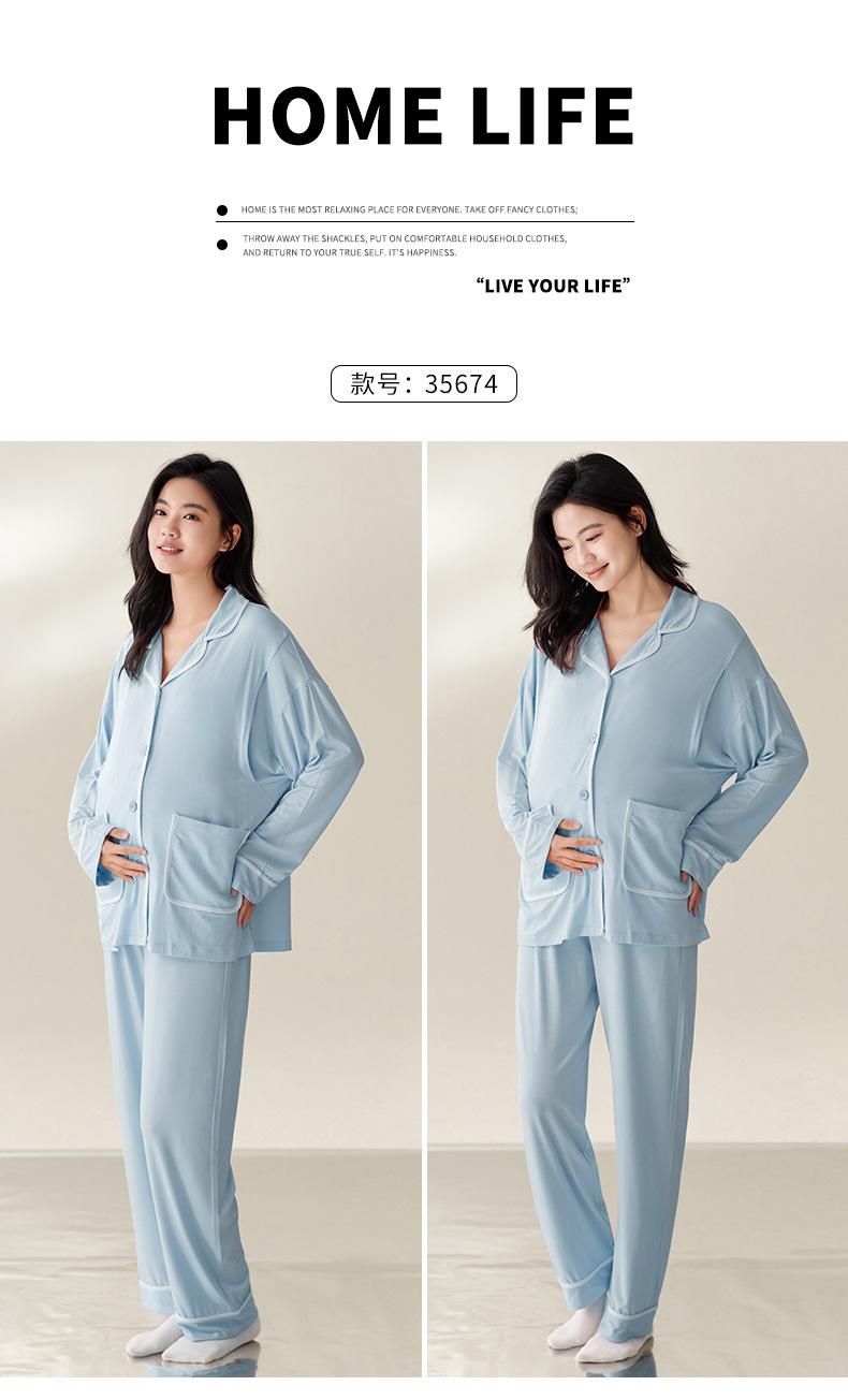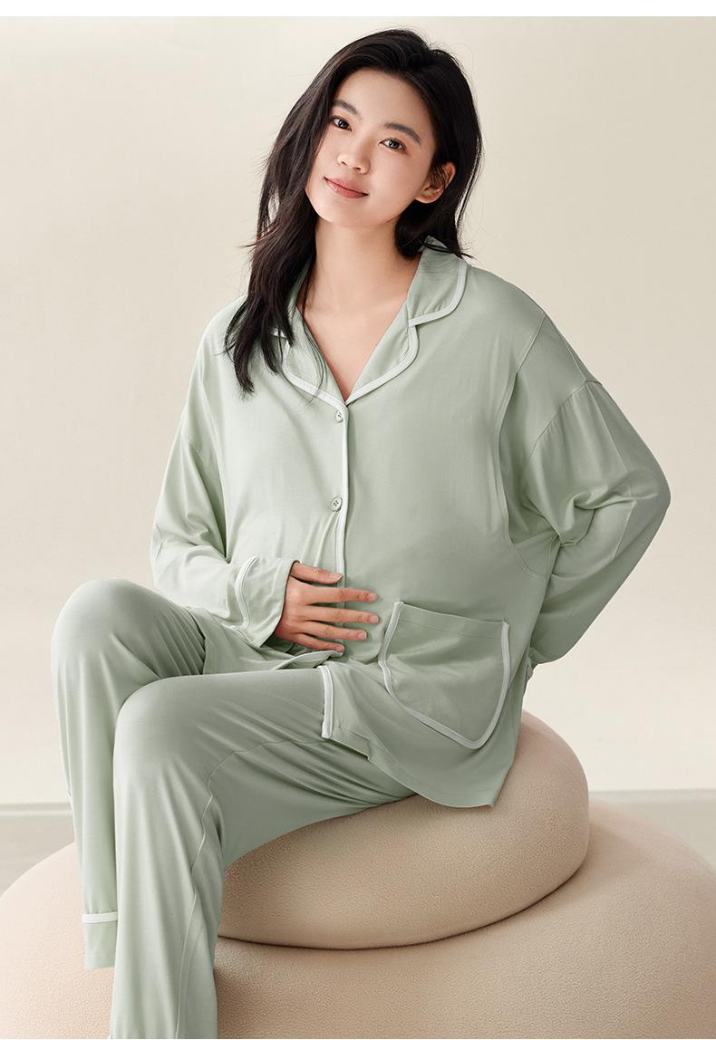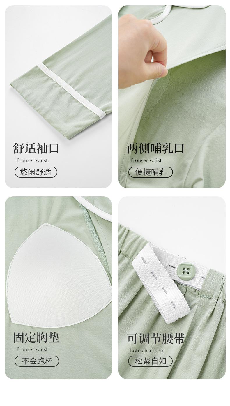 Pijama de Maternidad de Modal de Manga Larga para Primavera y Otoño de Xi Yue, Lactancia Postparto con Almohadillas en el Pecho, Ropa de Confinamiento, Conjunto de Dos Piezas