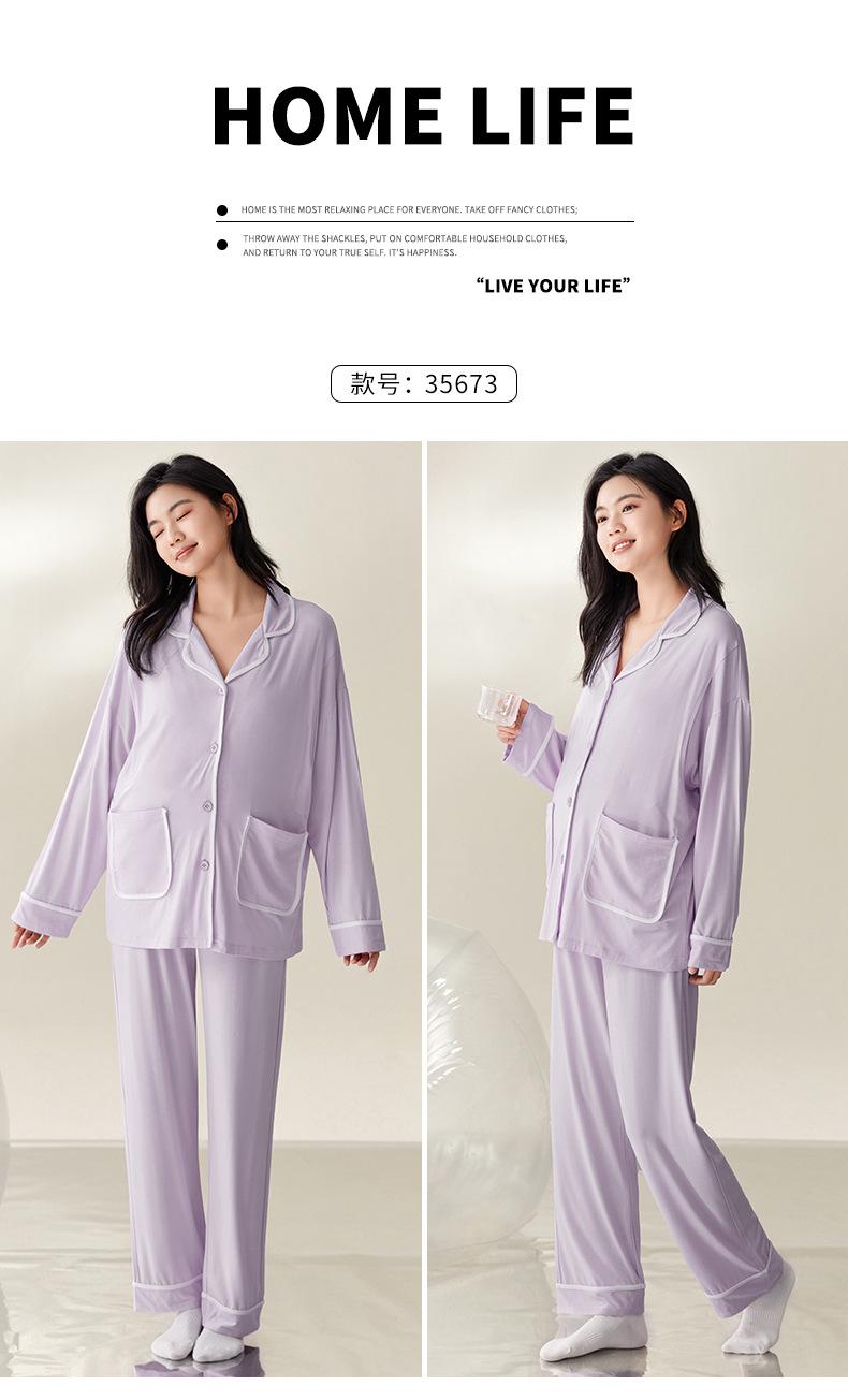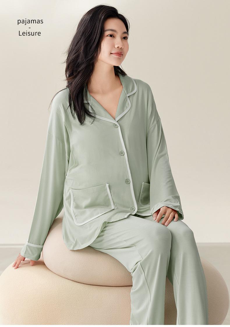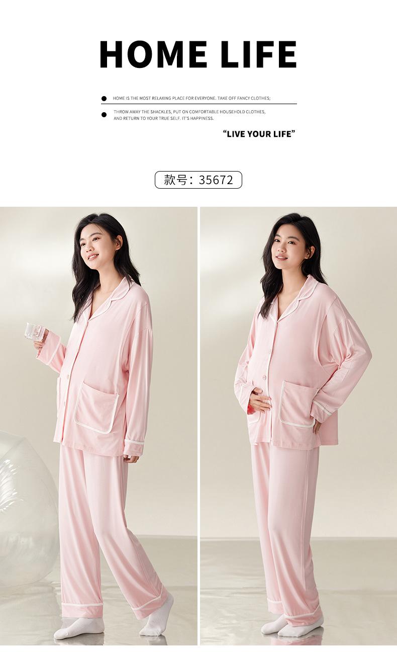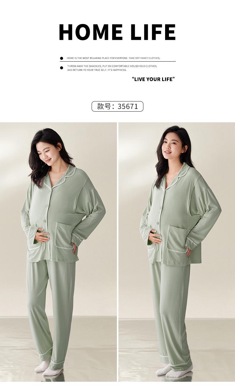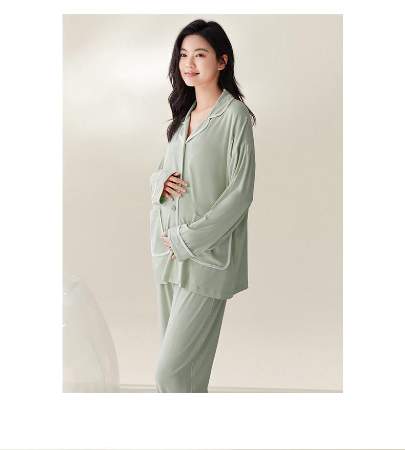 Pijama de Maternidad de Modal de Manga Larga para Primavera y Otoño de Xi Yue, Lactancia Postparto con Almohadillas en el Pecho, Ropa de Confinamiento, Conjunto de Dos Piezas
