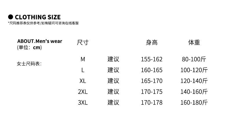 M size (80-100 catties), L size (100-120 catties), XL (120-140 catties), XXL (140-160 catties)