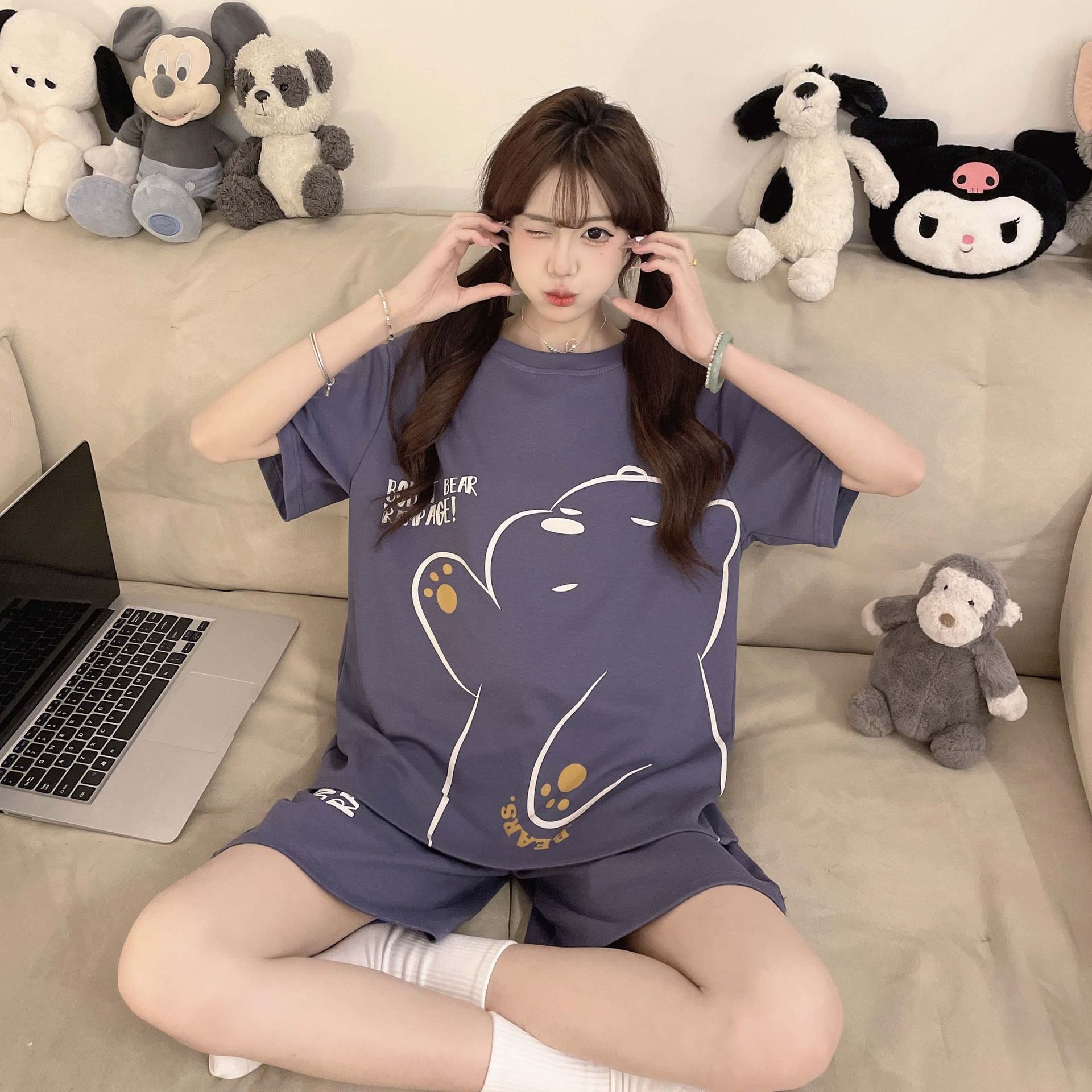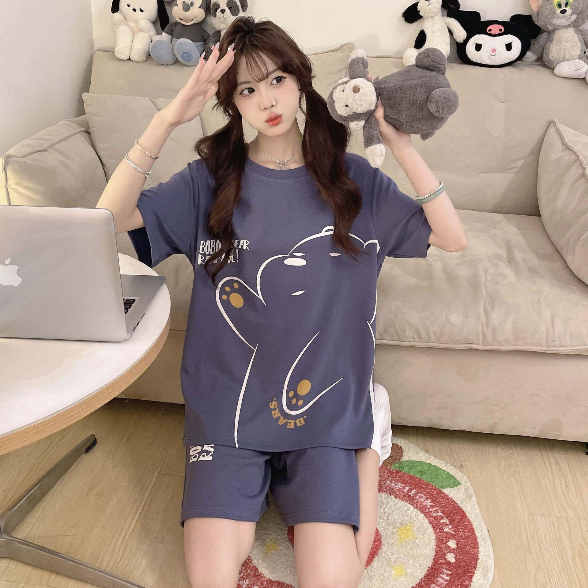 2025 Pijama Casual Nuevo para Mujer Verano Manga Corta Shorts Dulce y Lindo Dibujo Animado Set de Ropa para el Hogar de Mujer