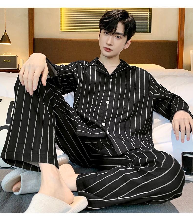 Pijama Universal Cuatro Estaciones para Hombre 2025 Nuevo Primavera y Otoño Algodón Puro Manga Larga Conjunto Ropa de Casa para Adolescentes Moda Simple