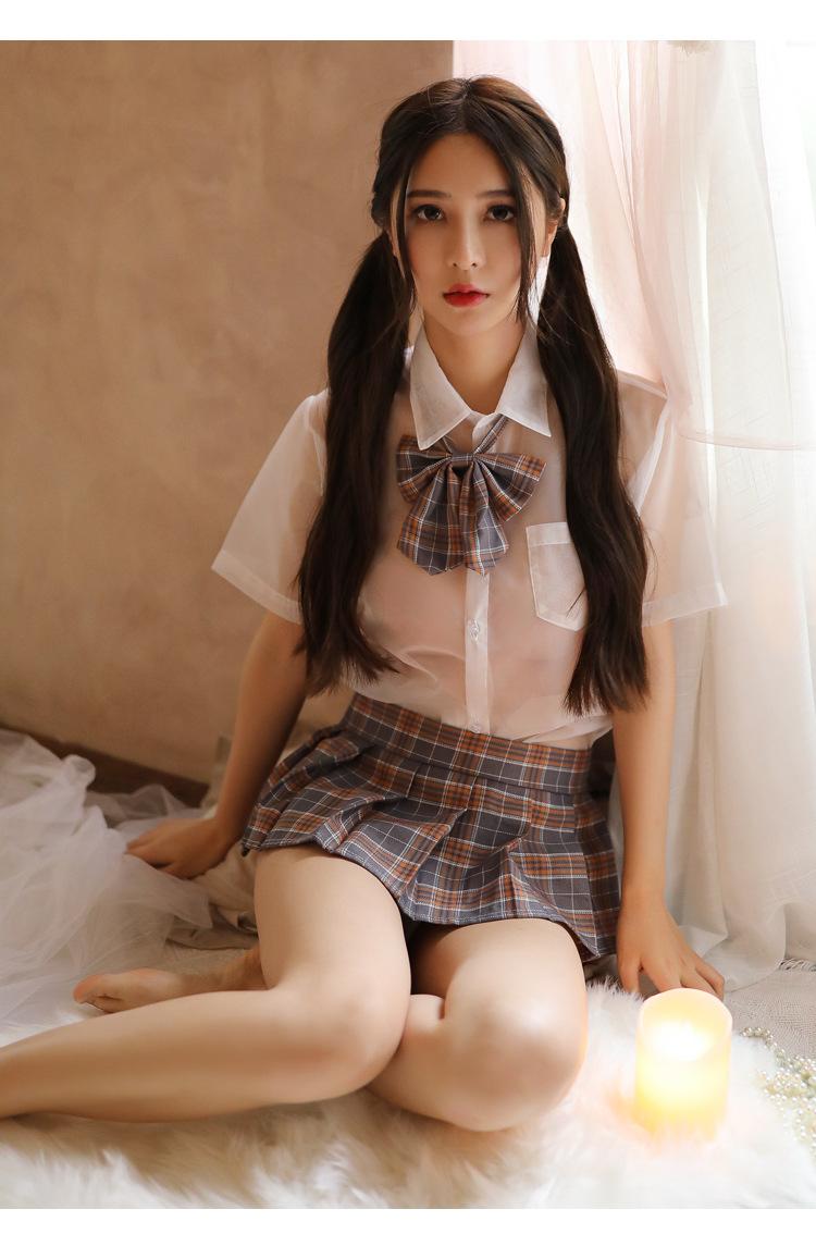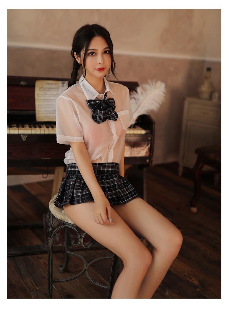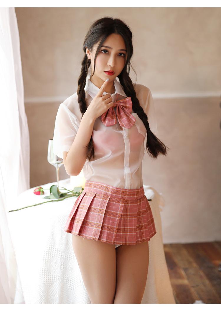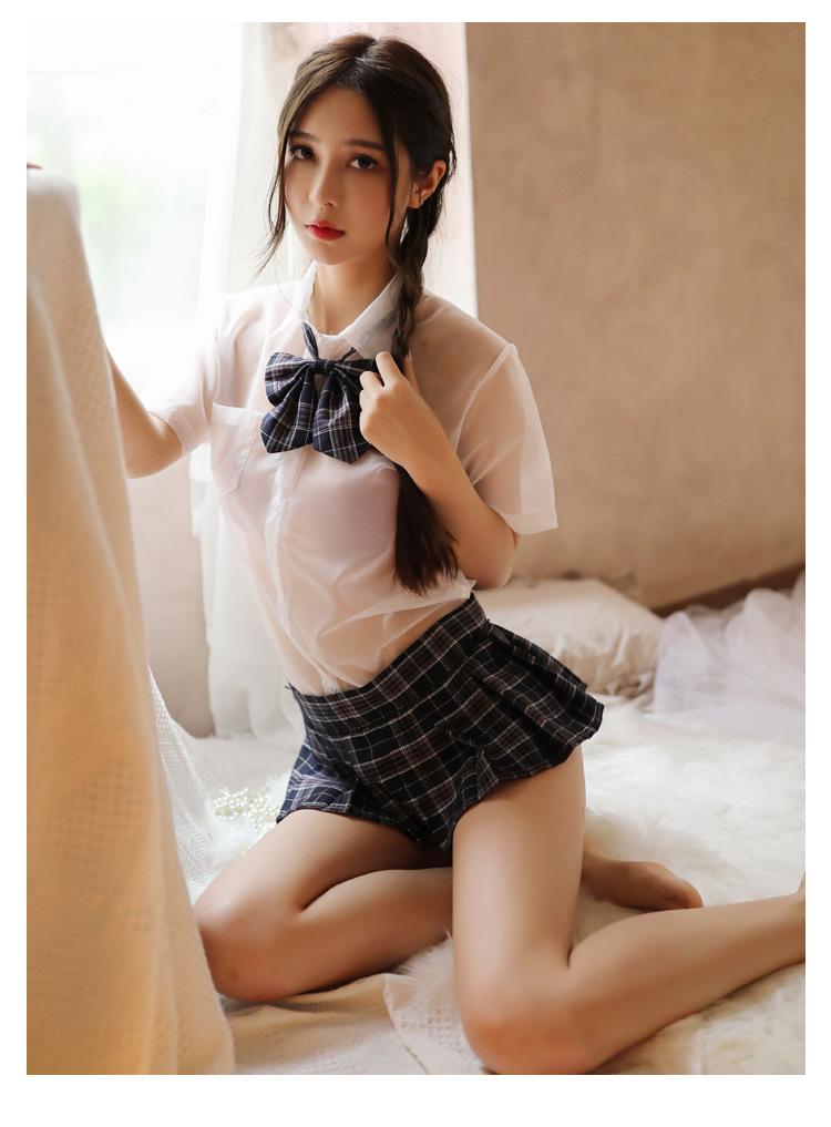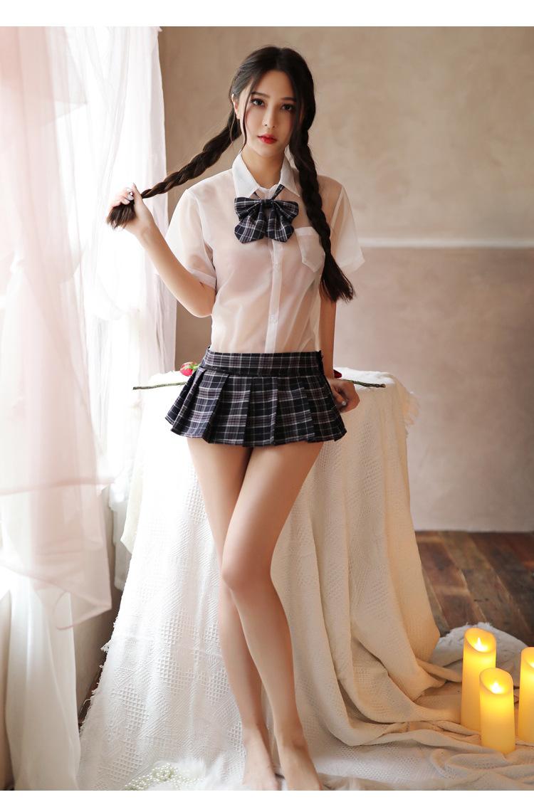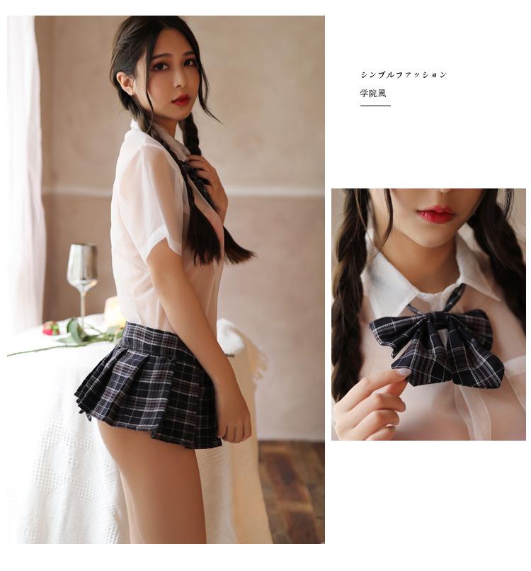 Lencería Sexy Camisa de Mujer con Lazo Estilo Británico Marinero Falda Plisada Lencería Sexy 1725