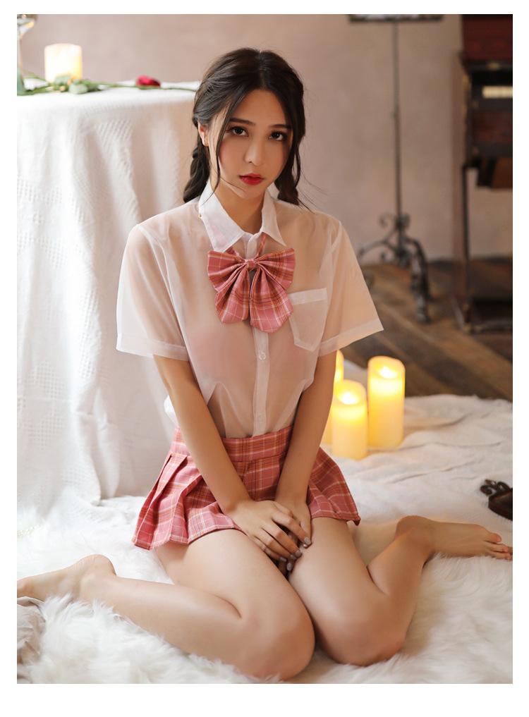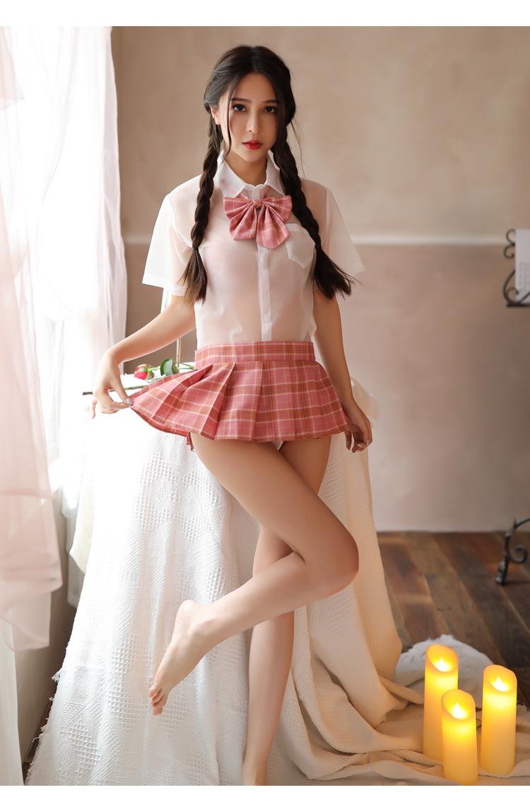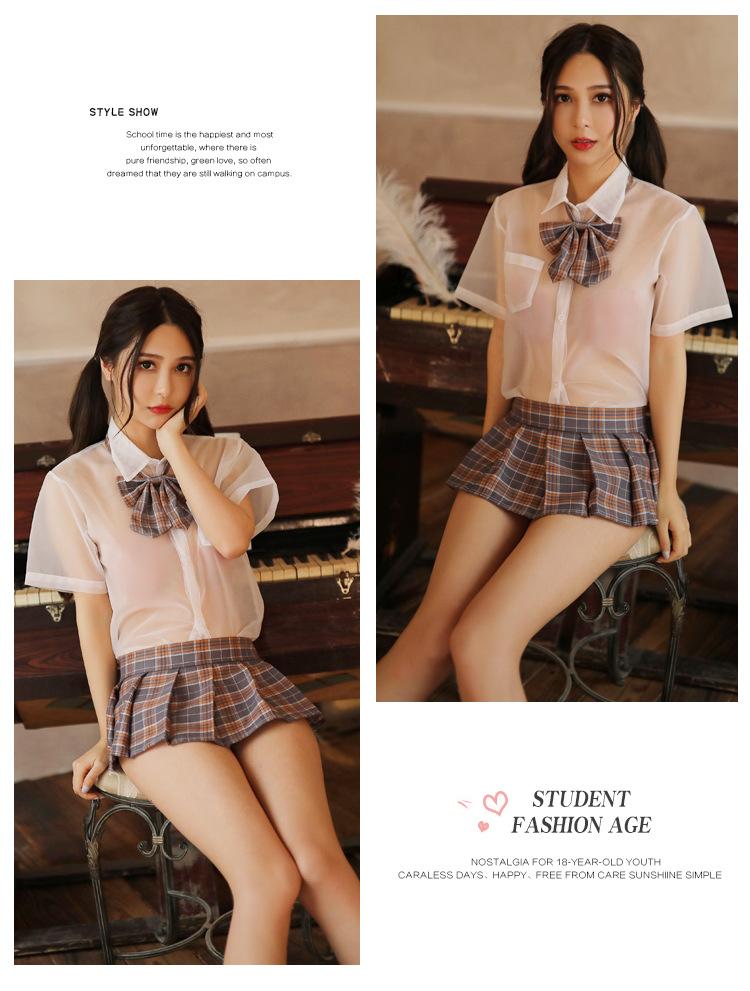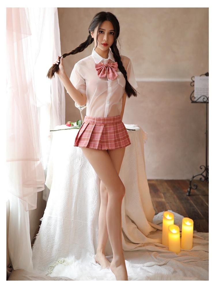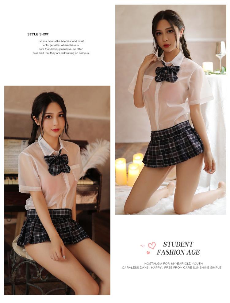 Lencería Sexy Camisa de Mujer con Lazo Estilo Británico Marinero Falda Plisada Lencería Sexy 1725