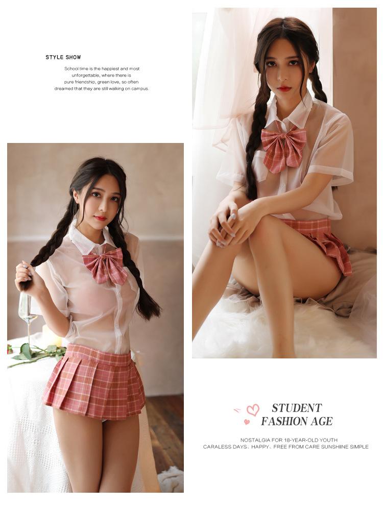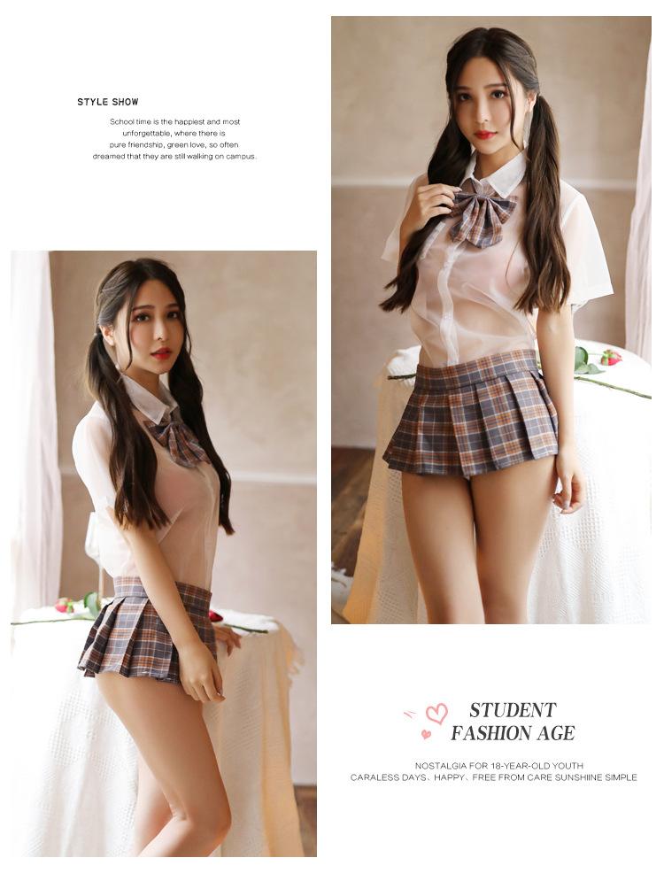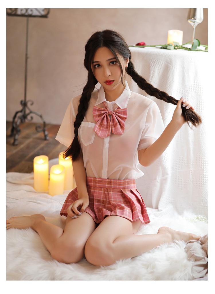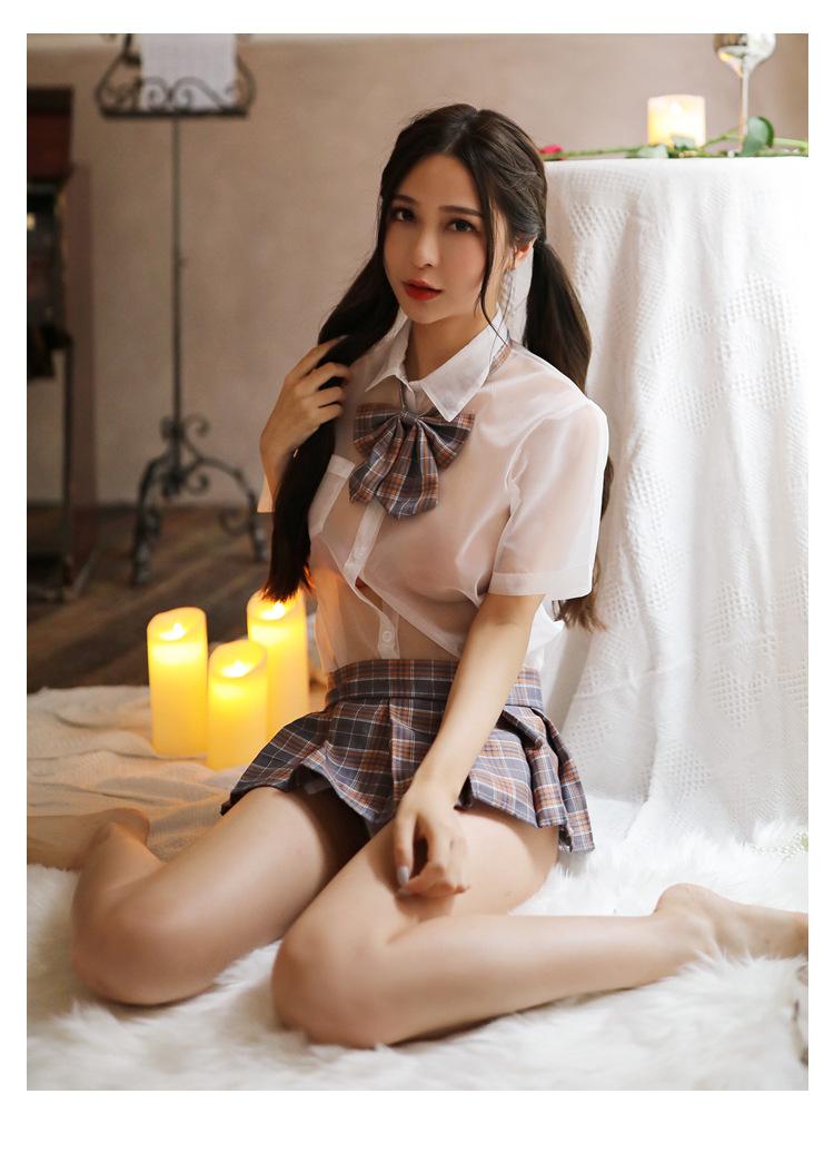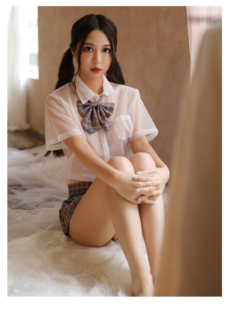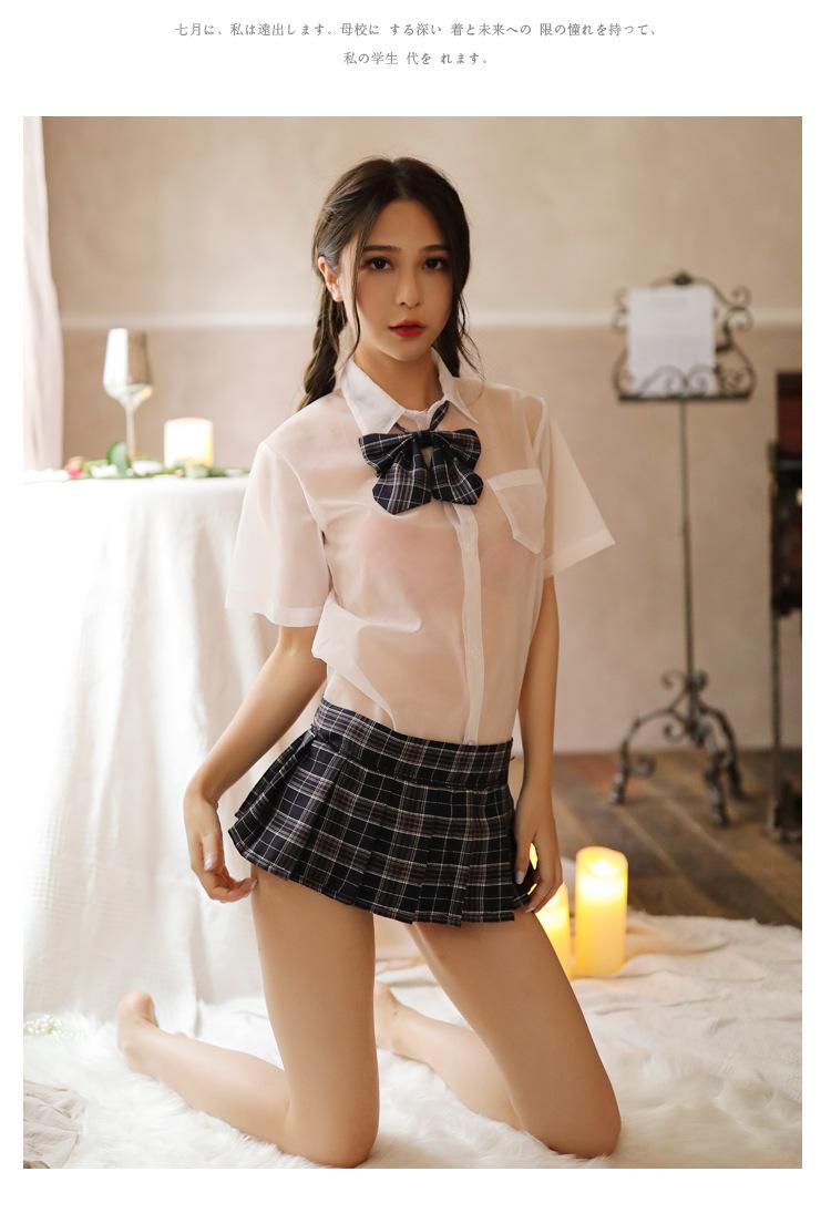 Lencería Sexy Camisa de Mujer con Lazo Estilo Británico Marinero Falda Plisada Lencería Sexy 1725