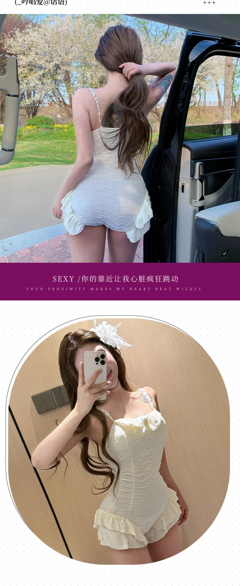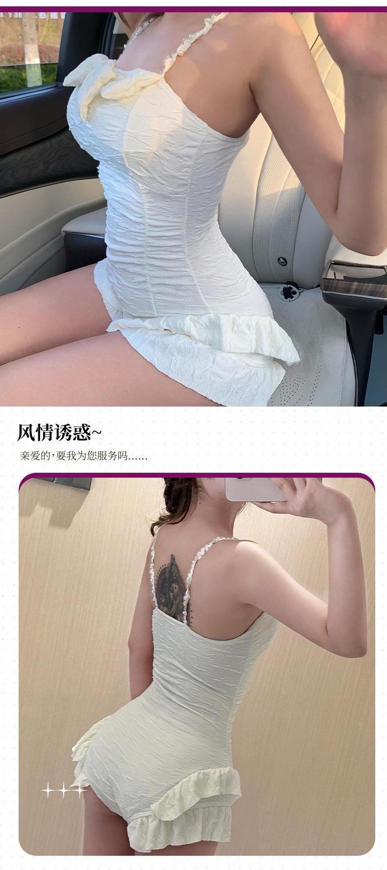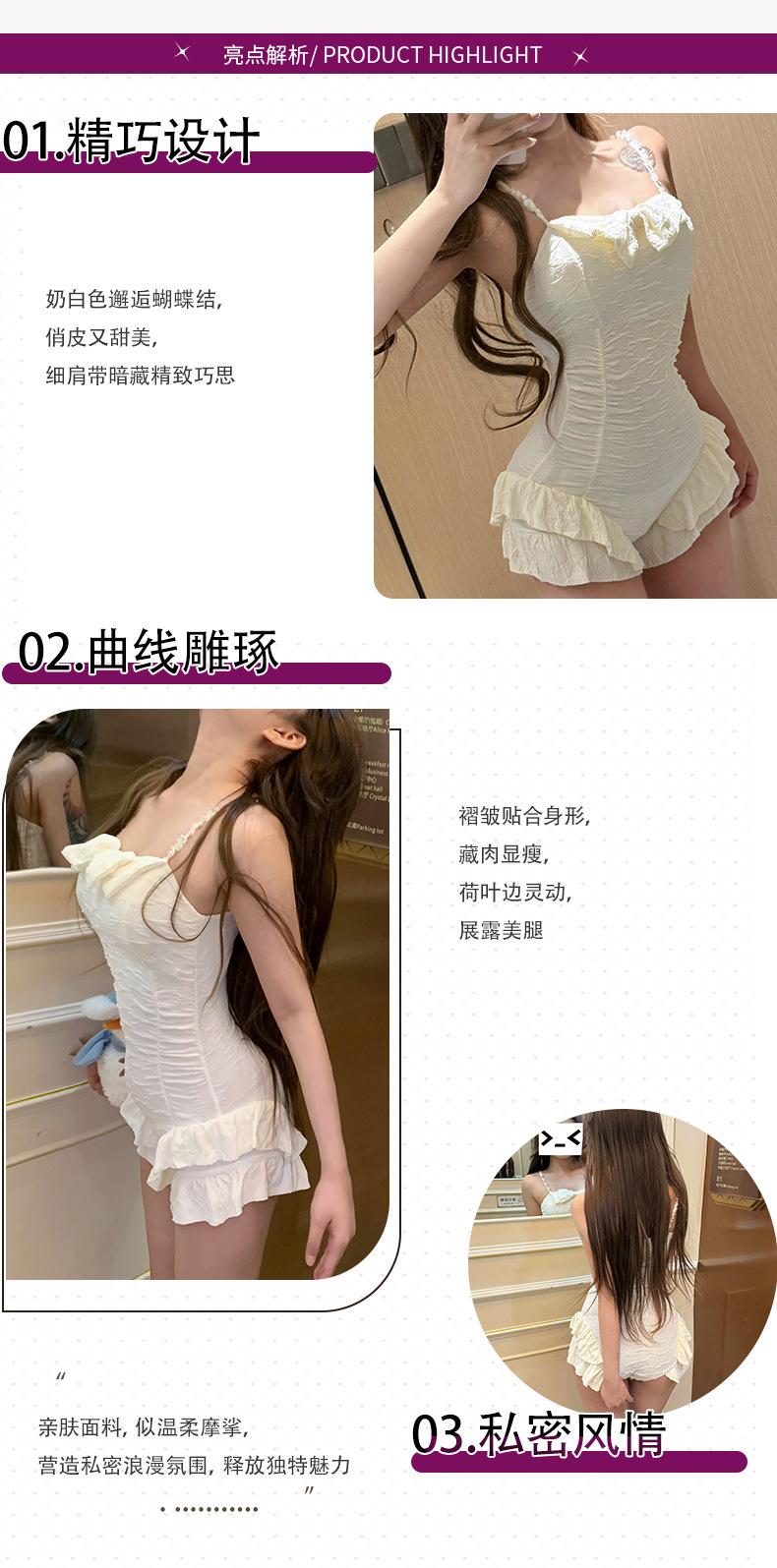 Xi Yun Lencería Sexy Tentación Traje de Baño de Una Pieza Muestra Figura Chica Caliente Borde con Volantes Set de Lazo Mujeres