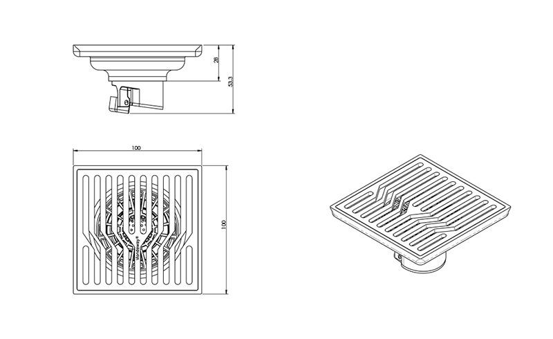Coladera de piso de acero inoxidable 304 engrosada cuadrada para baño balcón cocina ducha 10*10cm coladera de piso desodorante