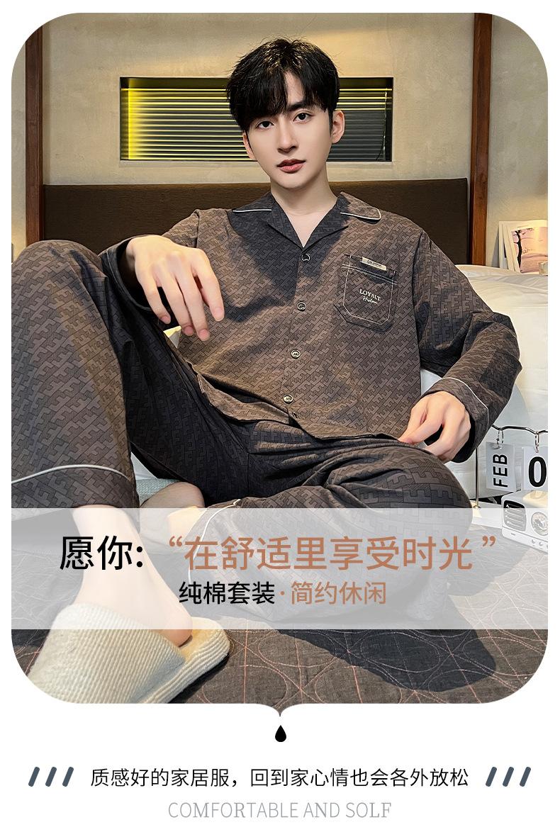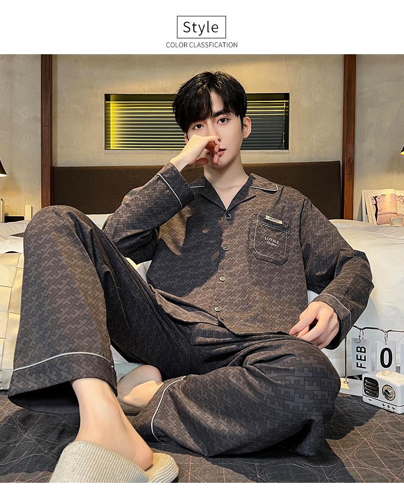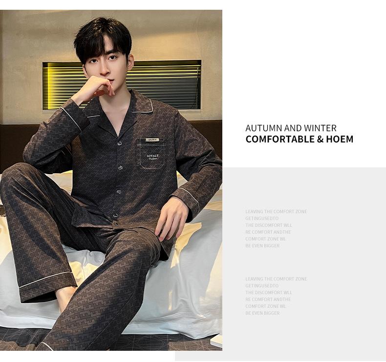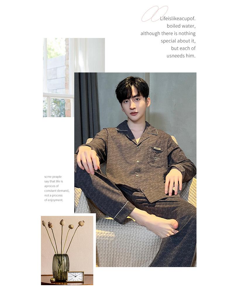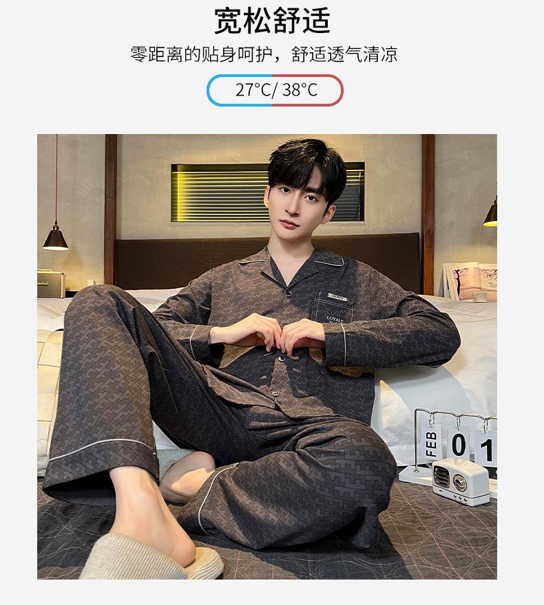 Pijamas de Moda para Hombre Ropa Exterior Algodón Puro Manga Larga Pantalones Largos Alta Gama Cómodo Transpirable Nuevo Estilo 2025 Ropa para el Hogar para Hombre