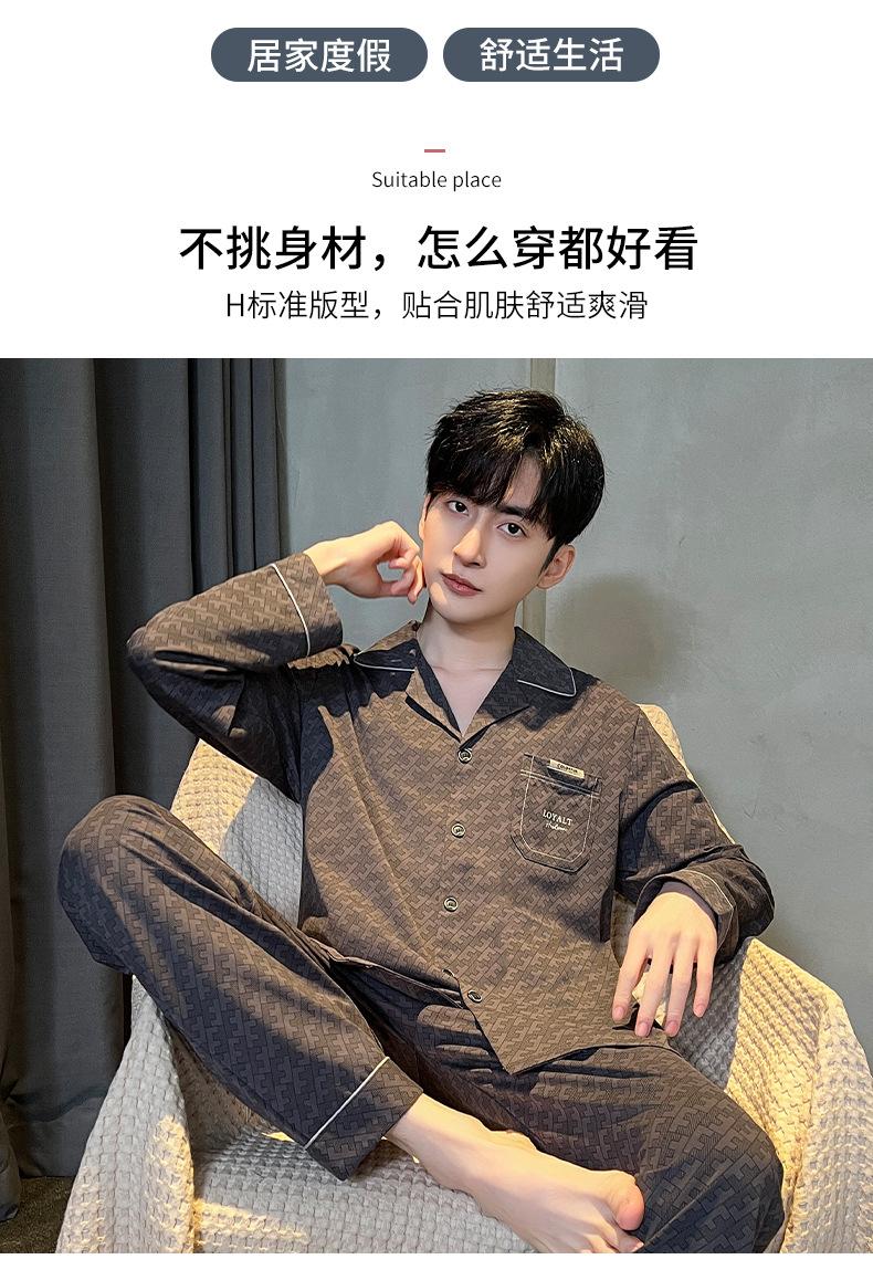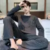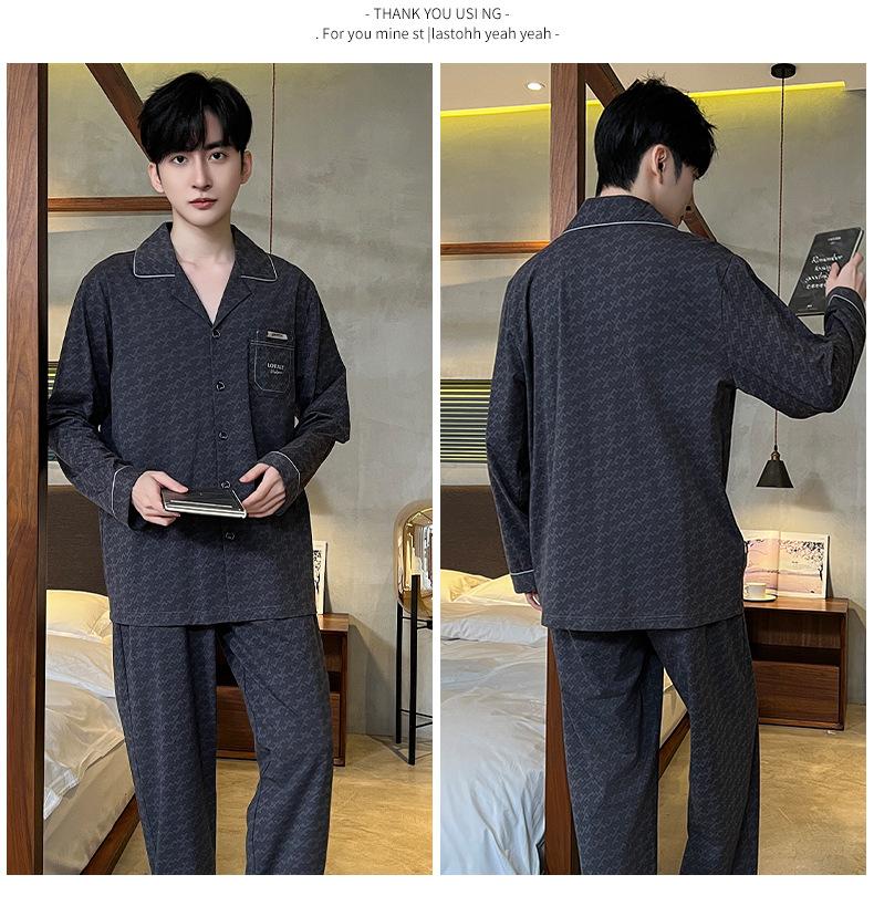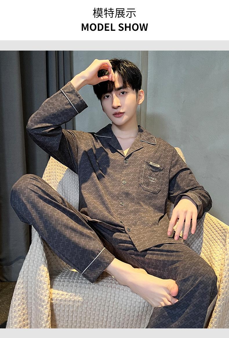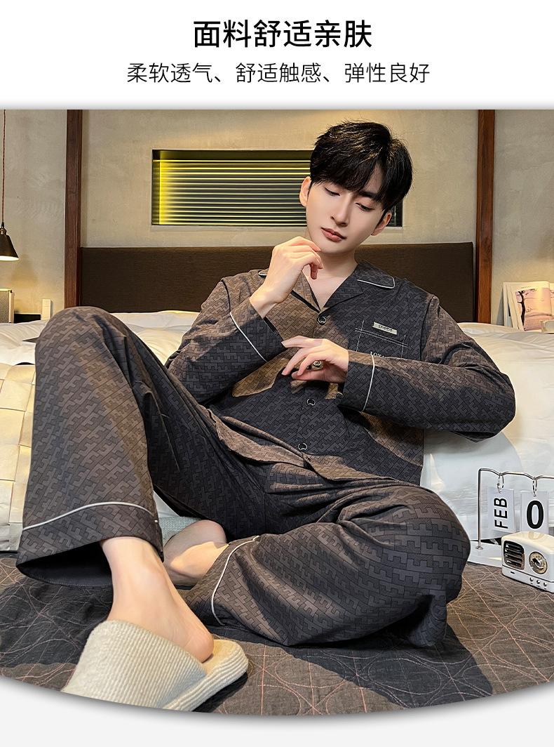 Pijamas de Moda para Hombre Ropa Exterior Algodón Puro Manga Larga Pantalones Largos Alta Gama Cómodo Transpirable Nuevo Estilo 2025 Ropa para el Hogar para Hombre