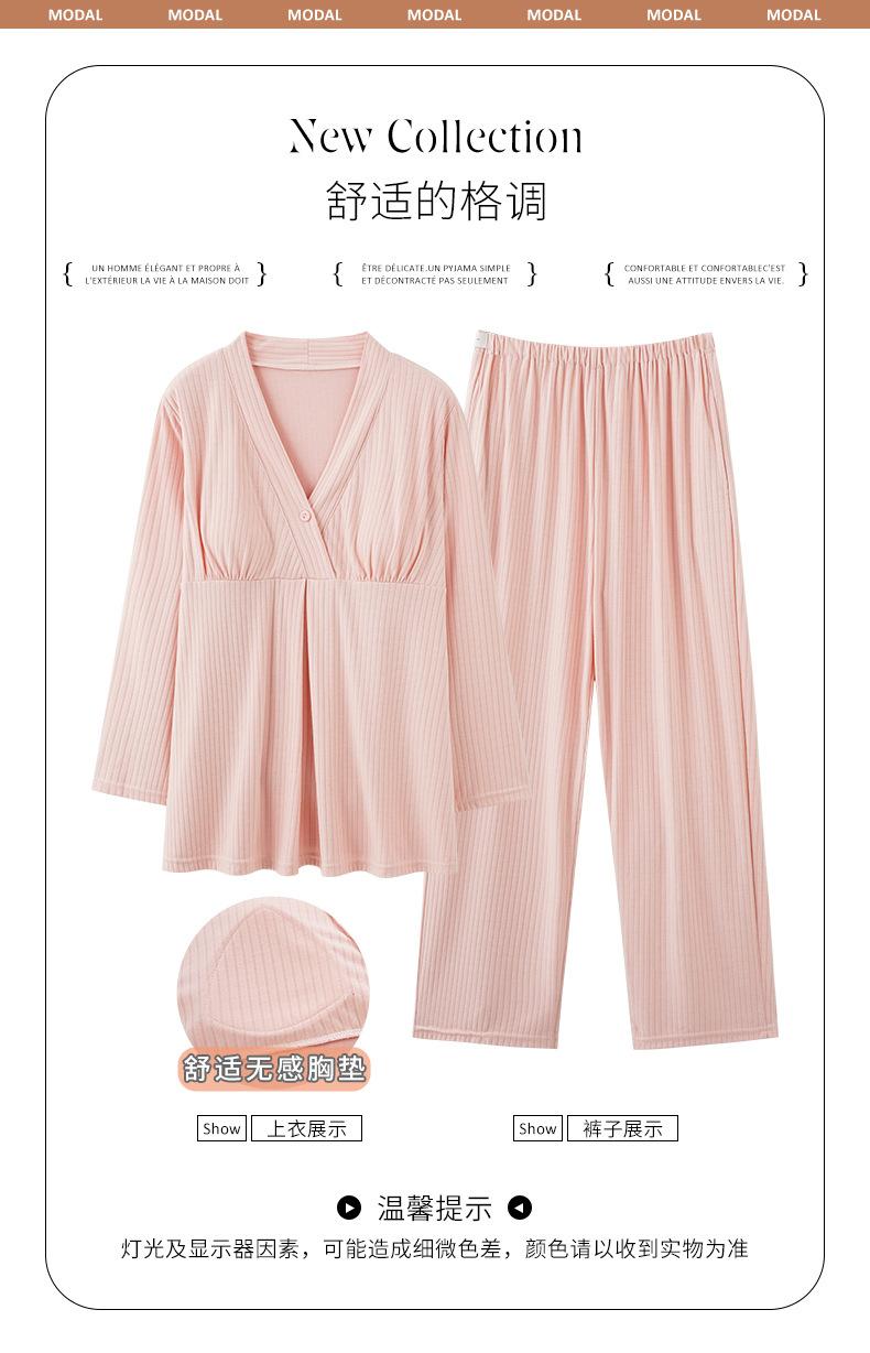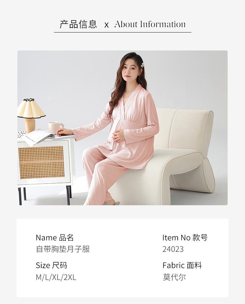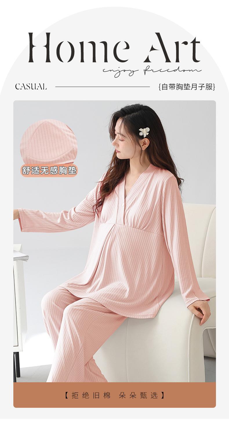 Xi Yue 2025 Nueva Ropa de Maternidad Modal Simple Otoño Mujeres Embarazadas Manga Larga con Almohadillas para el Busto Pijama Postparto Absorbente de Sudor