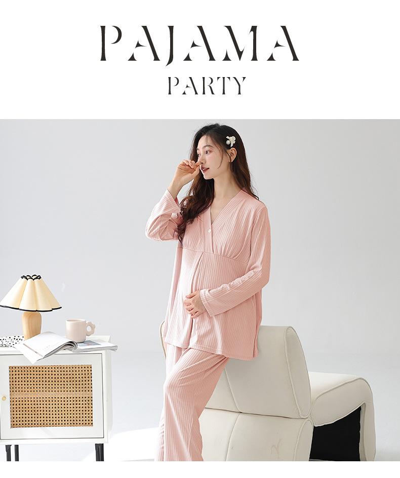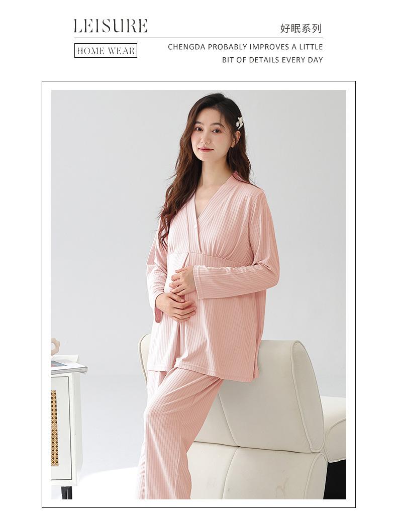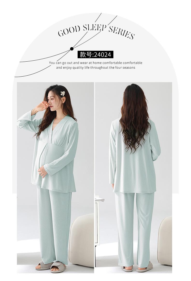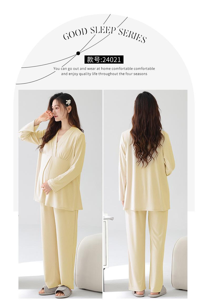 Xi Yue 2025 Nueva Ropa de Maternidad Modal Simple Otoño Mujeres Embarazadas Manga Larga con Almohadillas para el Busto Pijama Postparto Absorbente de Sudor