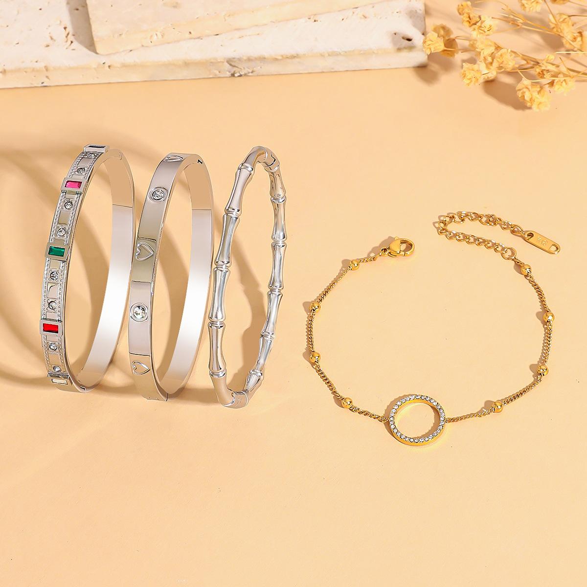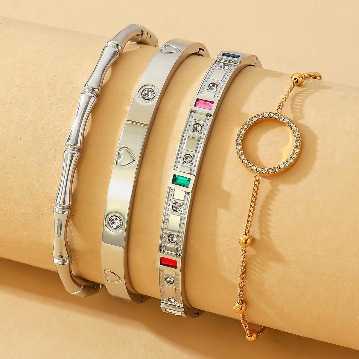 Compra Pulsera de Acero Titanio para Mujer, Diamante Transfronterizo Cuadrado Diamante de Color con Incrustaciones Flores, Pulsera de Diseño de Nicho de Moda Estilo Europeo y Americano al por mayor en Joom.pro