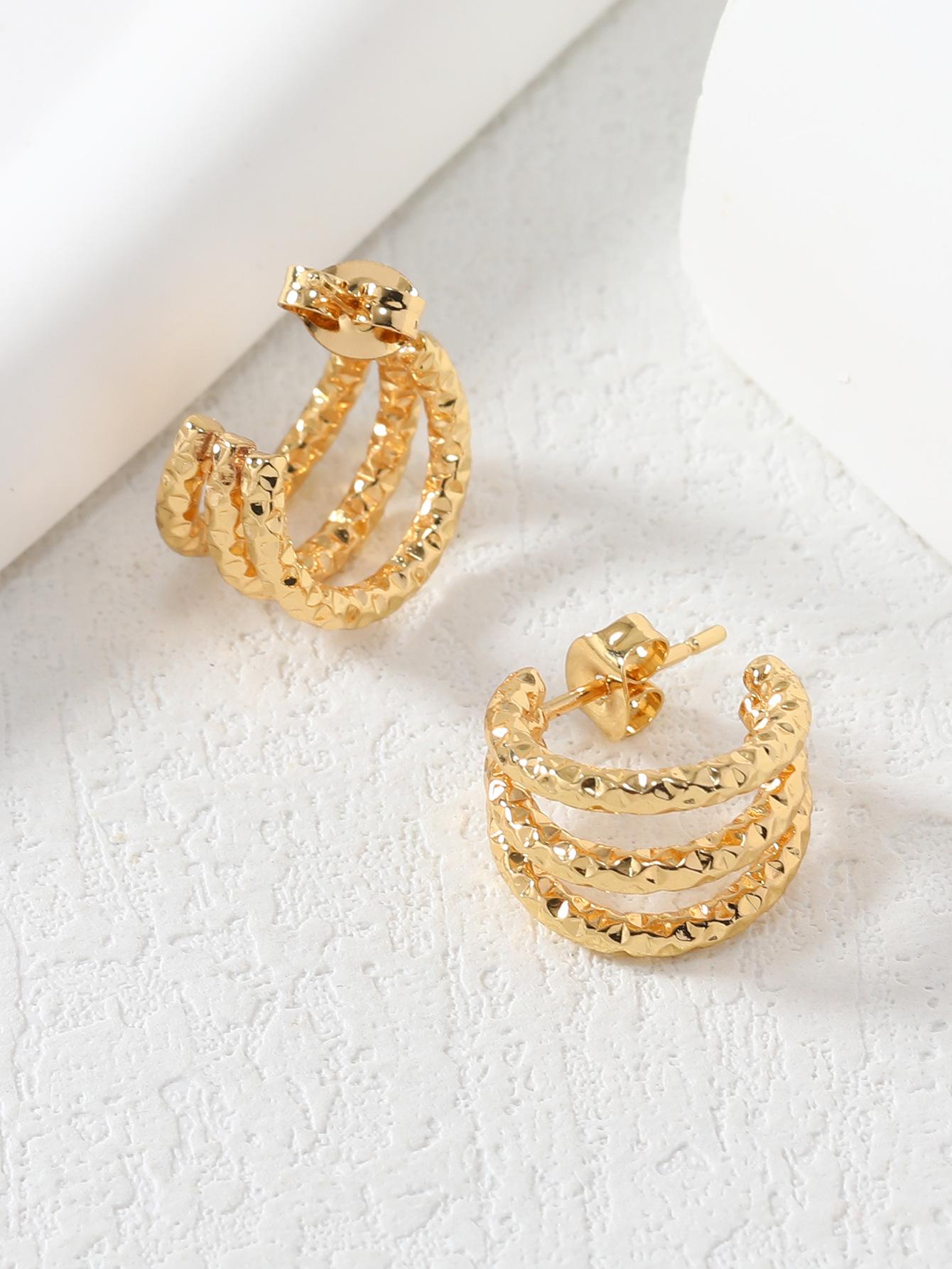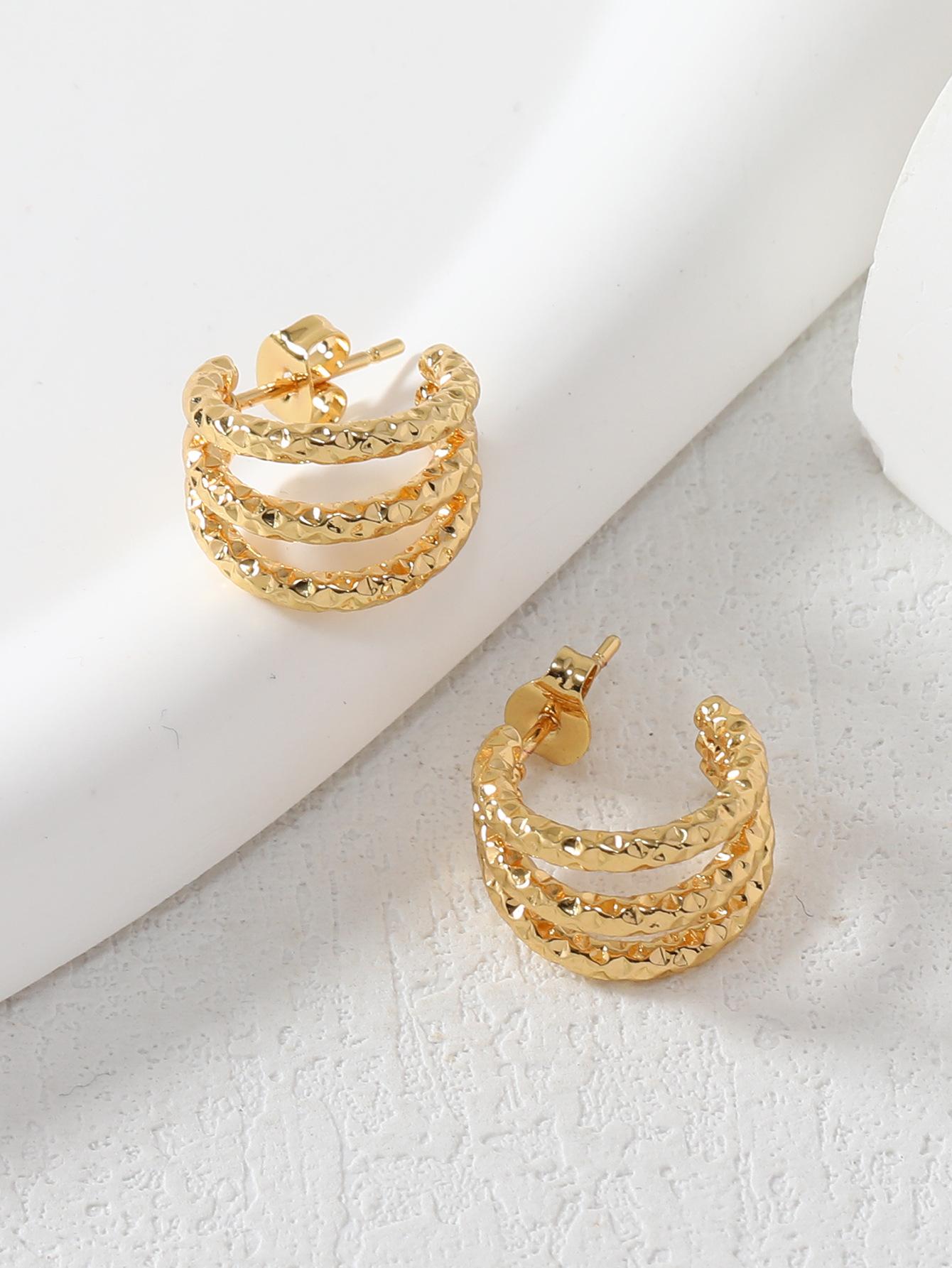Compra Moda Nuevo Estilo Europeo y Americano Transfronterizo Diseño en Forma de C Sentido de la Textura Aretes de Acero de Titanio Aretes de Acero Inoxidable de Tres Capas Modernos Personalizados al por mayor en Joom.pro