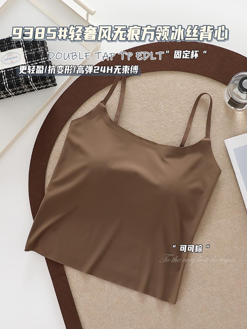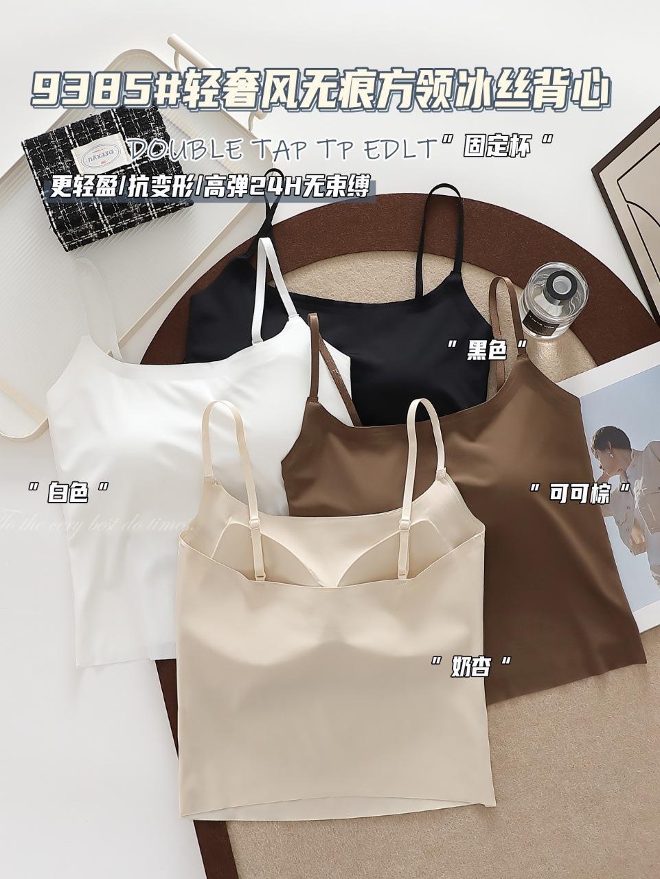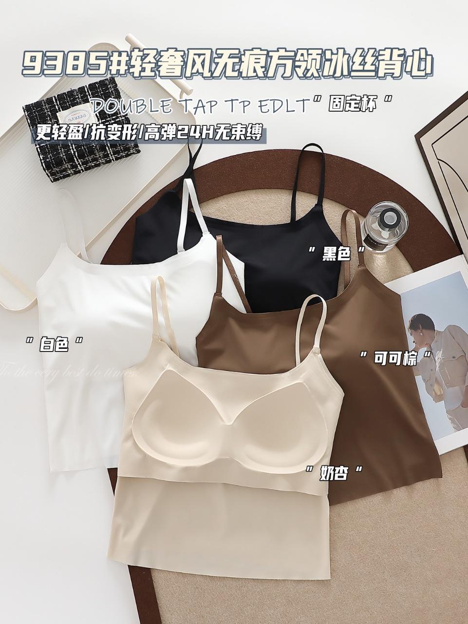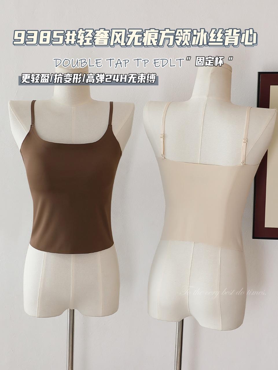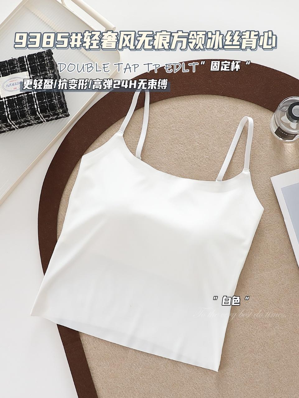 9385#Estilo Lujo Ligero Sin Costuras Cuello Cuadrado Espalda Ice Beauty Copa Fija Almohadilla Versátil Cómodo Estilo Alta Calidad Espalda Hermosa