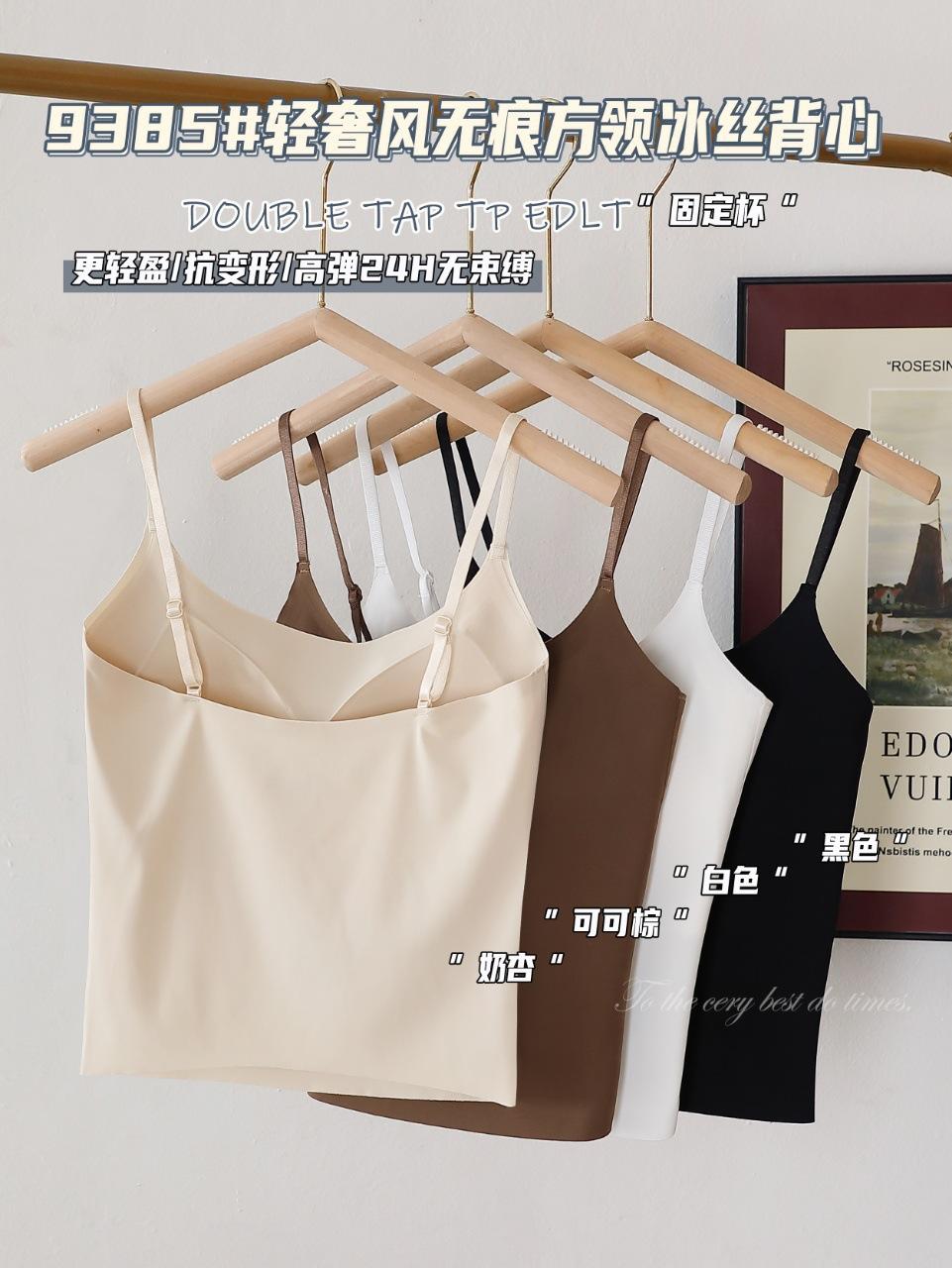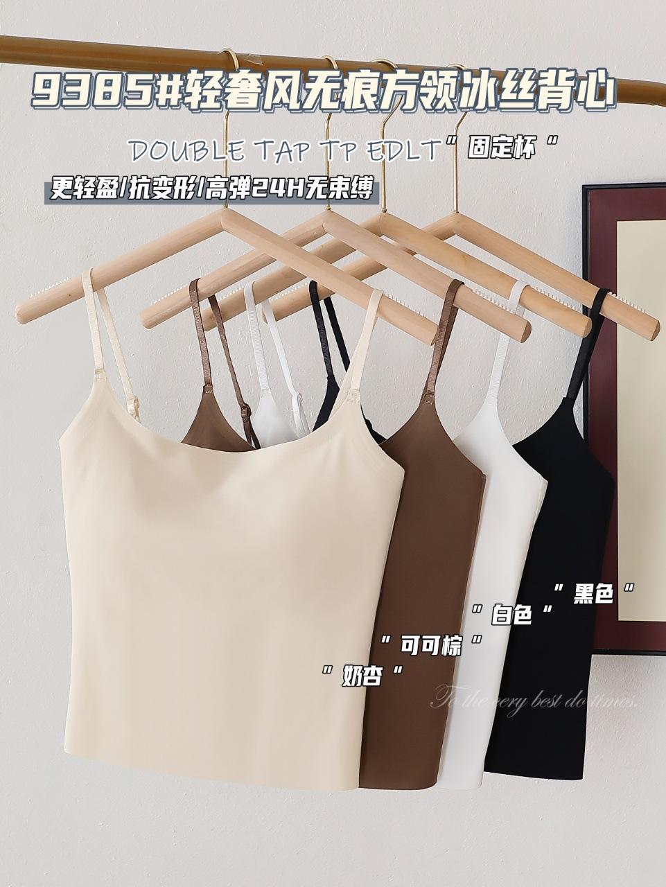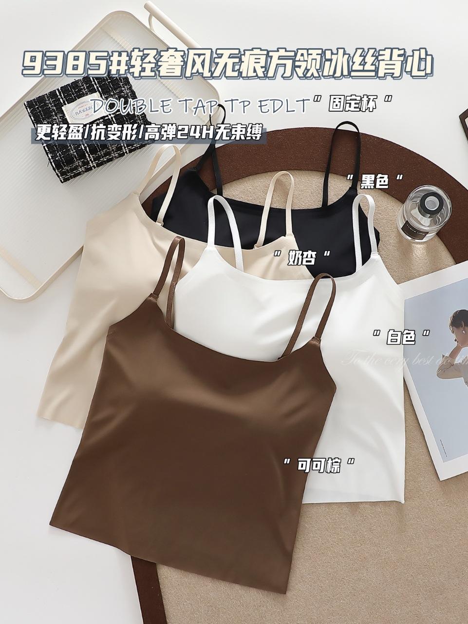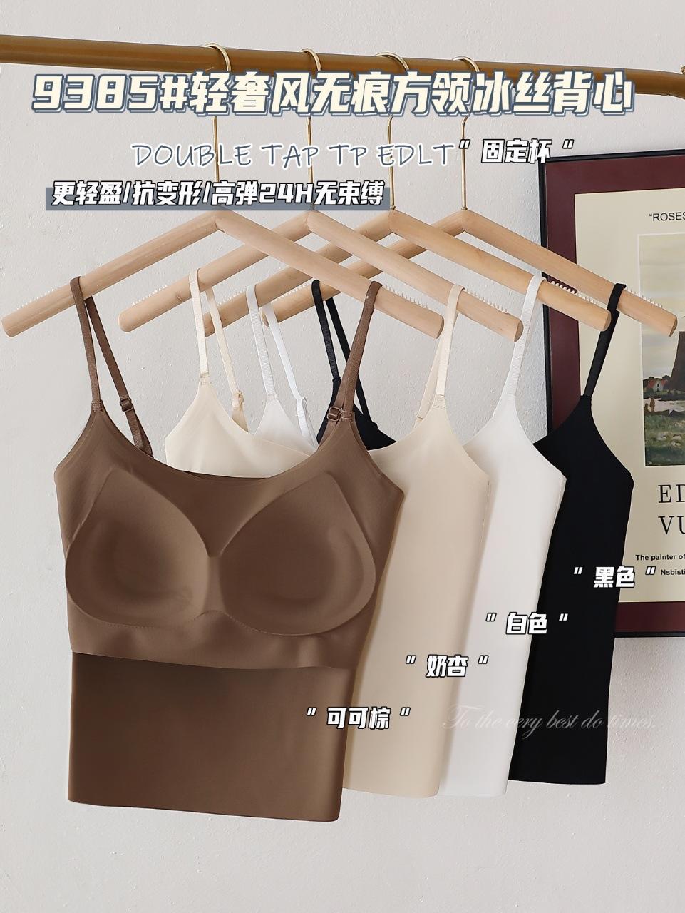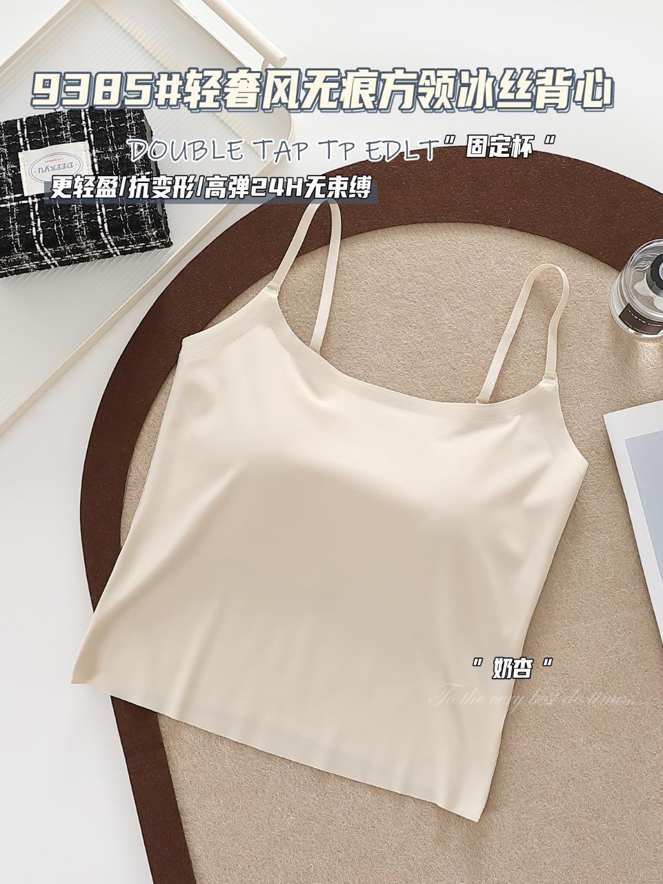 9385#Estilo Lujo Ligero Sin Costuras Cuello Cuadrado Espalda Ice Beauty Copa Fija Almohadilla Versátil Cómodo Estilo Alta Calidad Espalda Hermosa