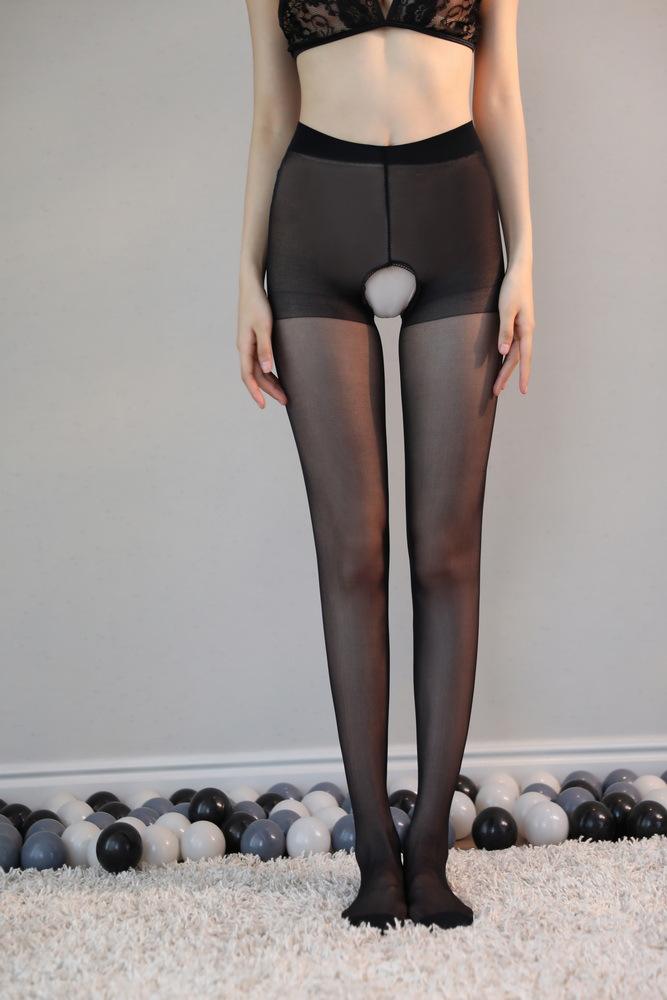 Medias Negras Sexy e Interesantes con Entrepierna Abierta Lencería Sexy para Mujer Sexy Desprendible con Entrepierna Abierta Medias de Una Pieza