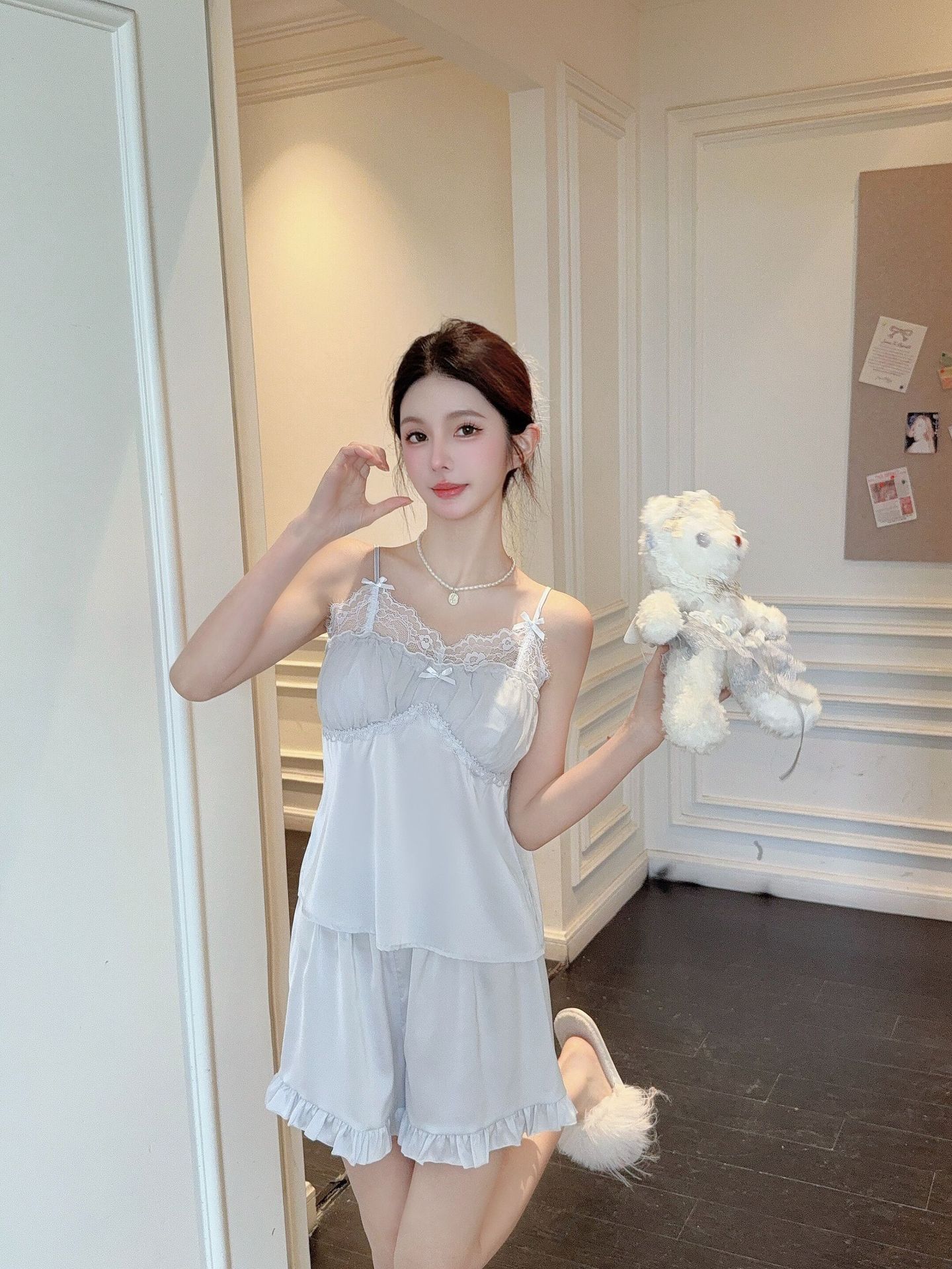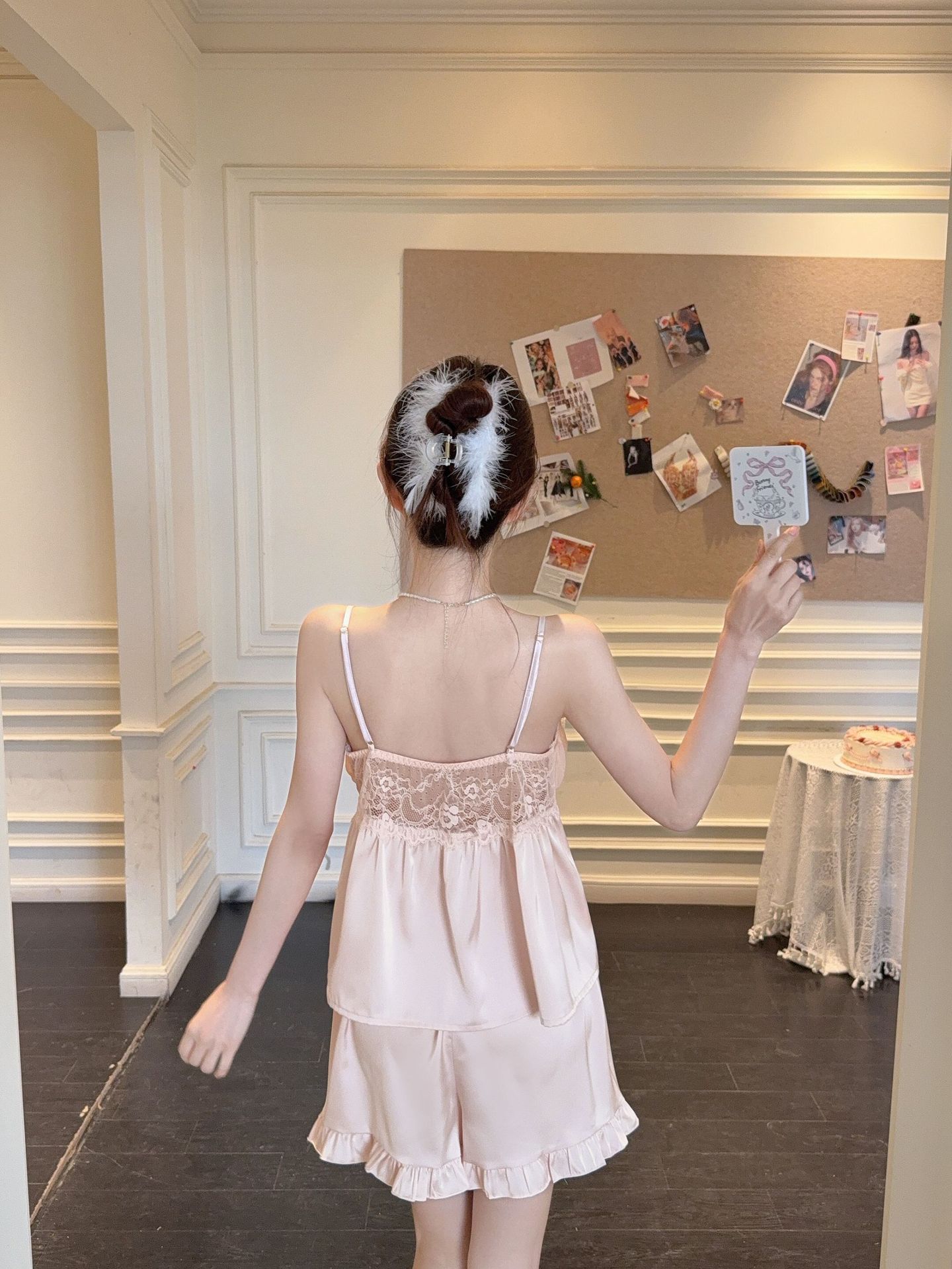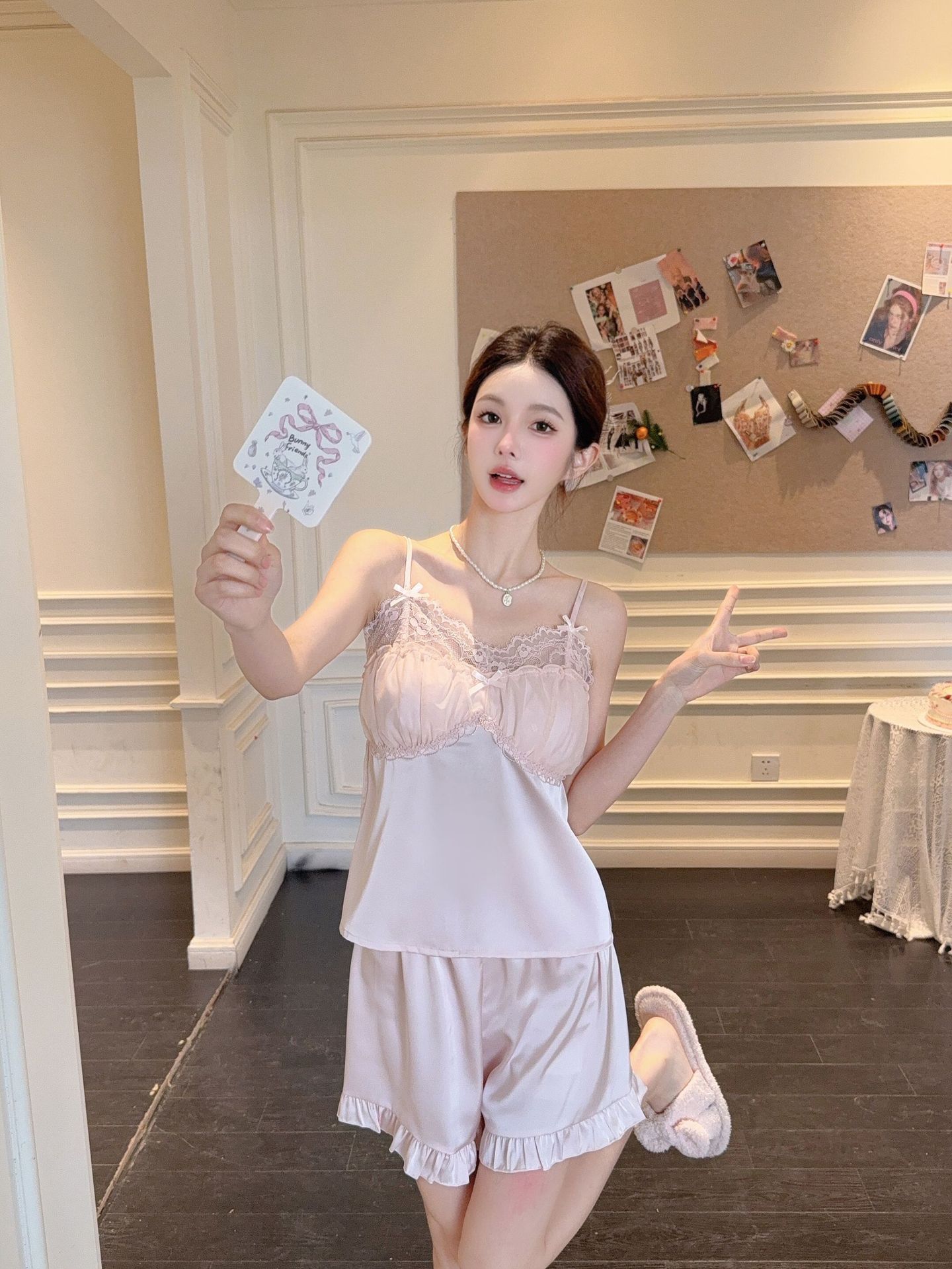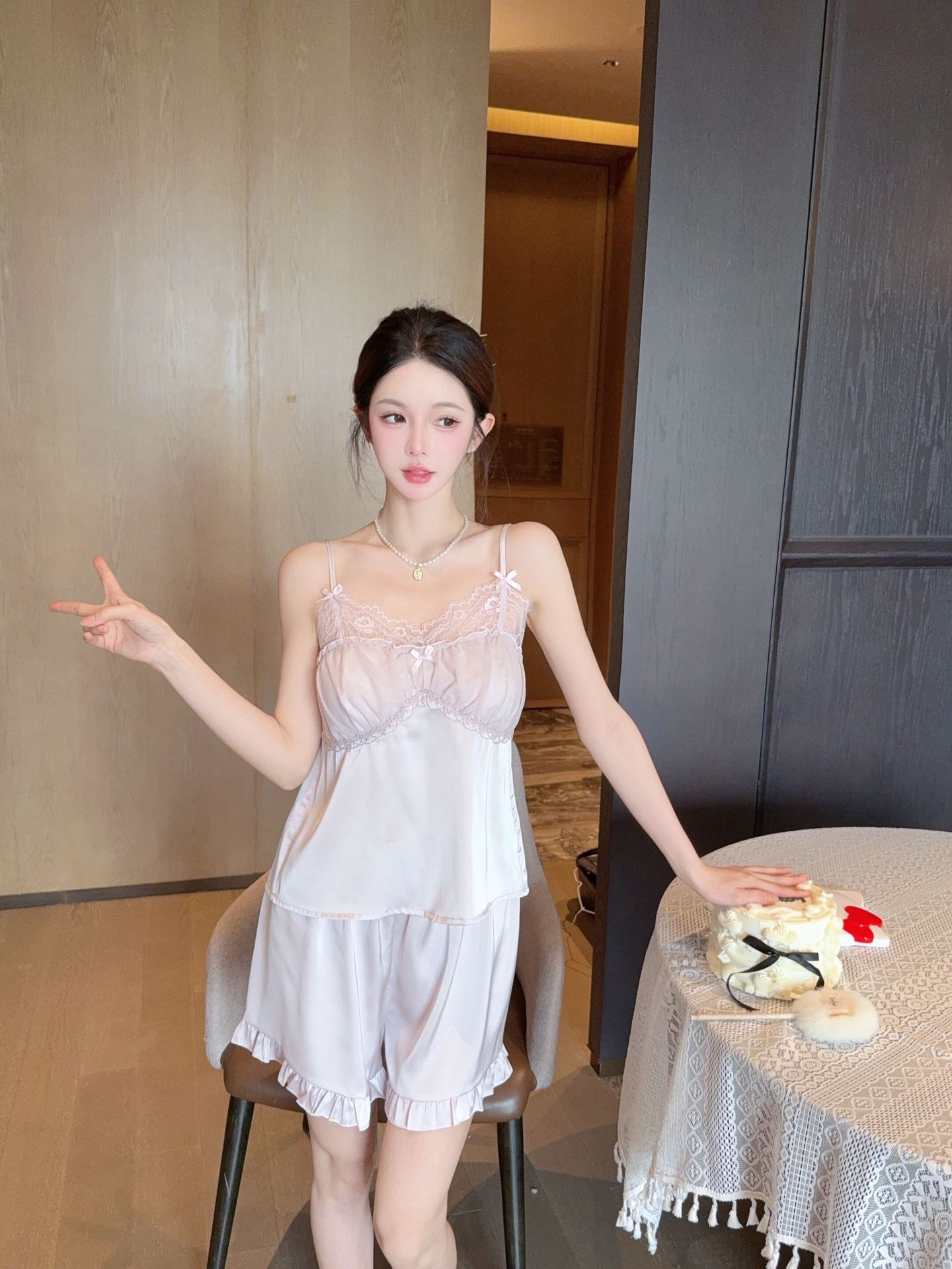 Pijamas de seda de hielo para mujer, verano, niñas, Pure Desire, pantalones cortos con tirantes, ropa para el hogar, traje, pijamas para mujer, rosa, sexy, Pure Desire