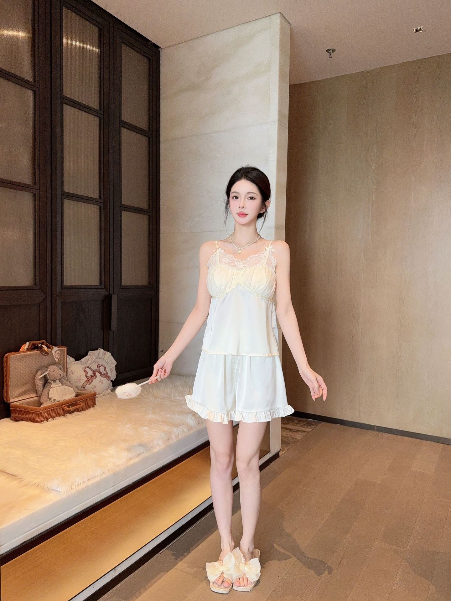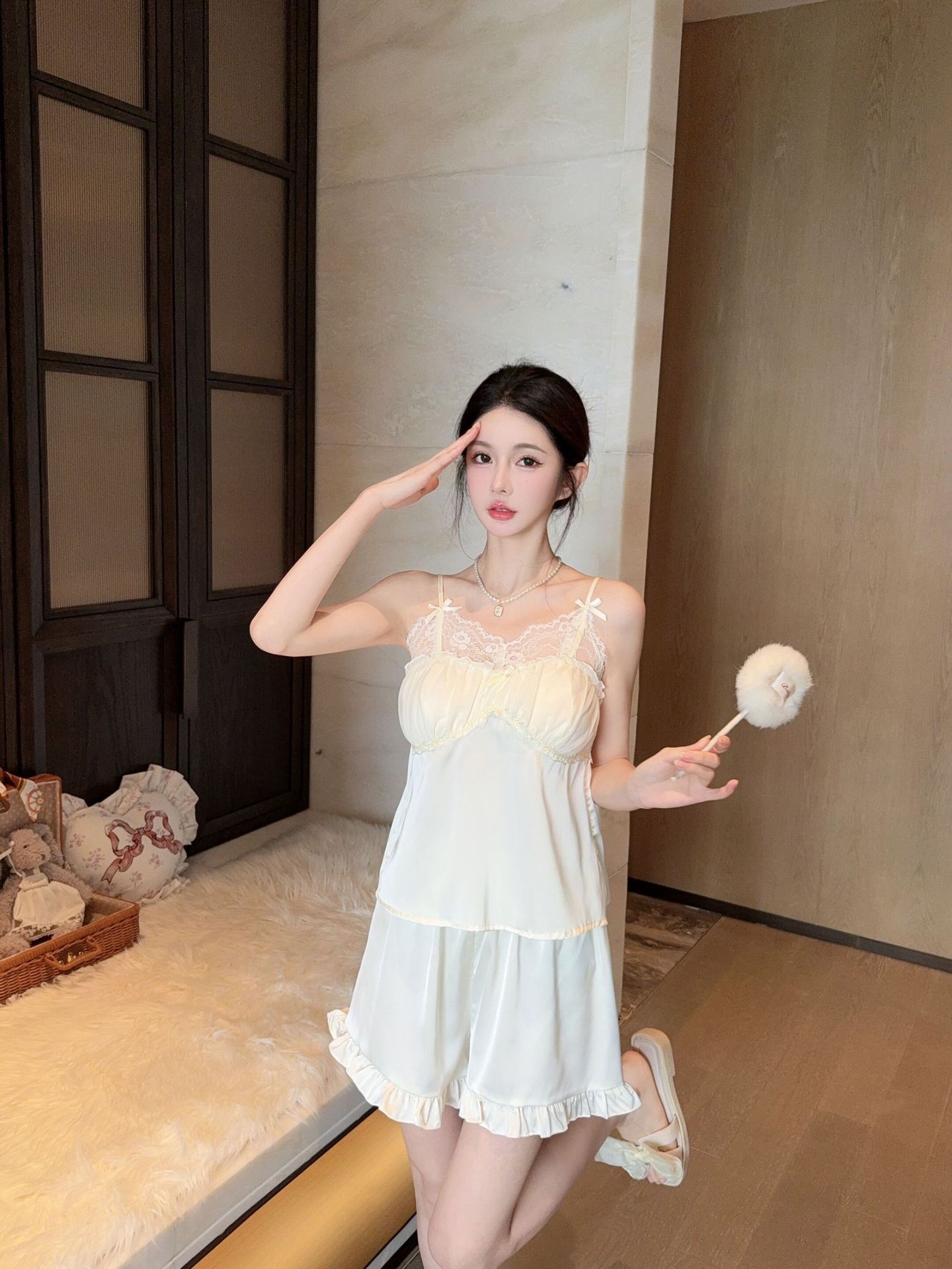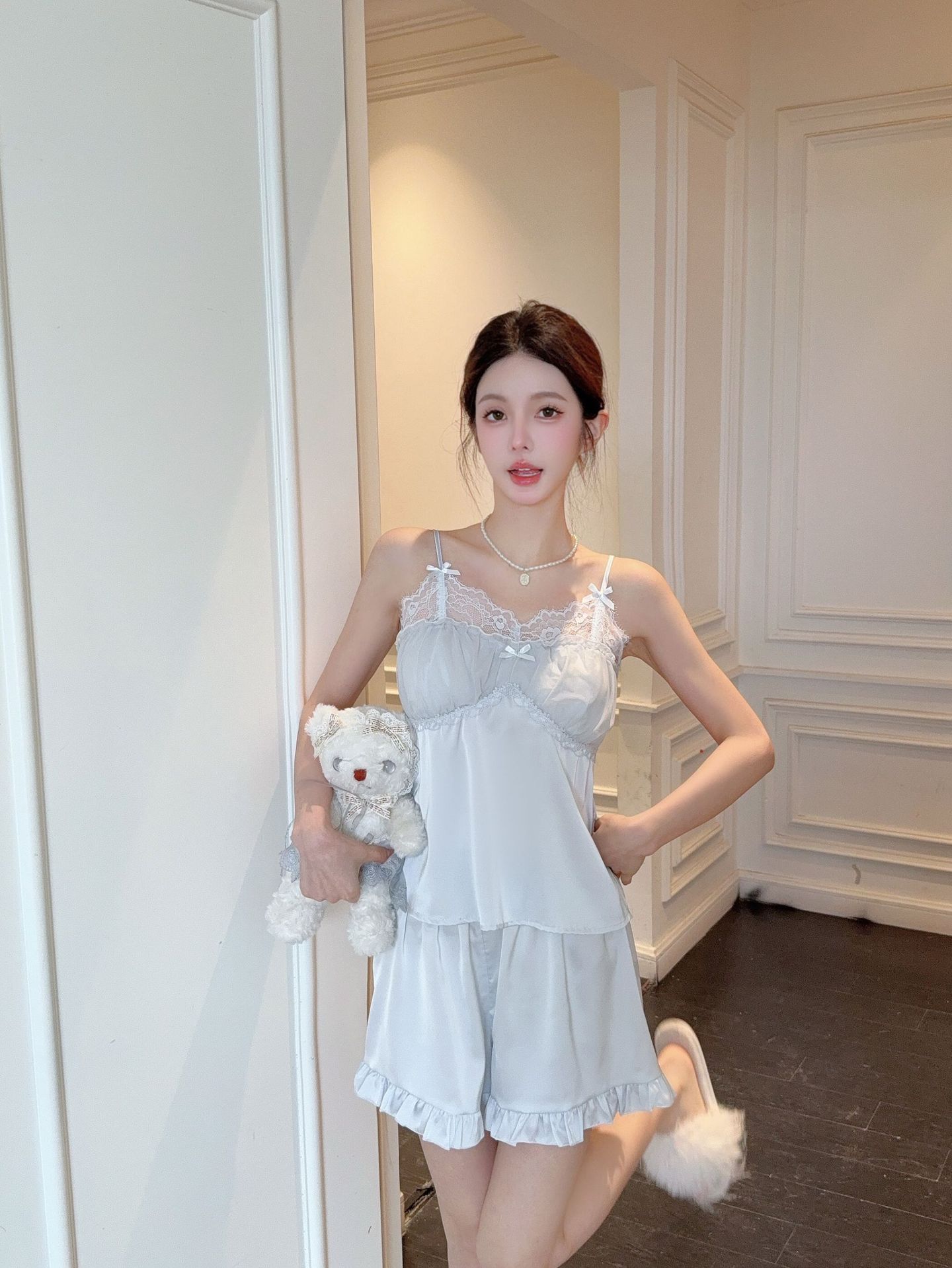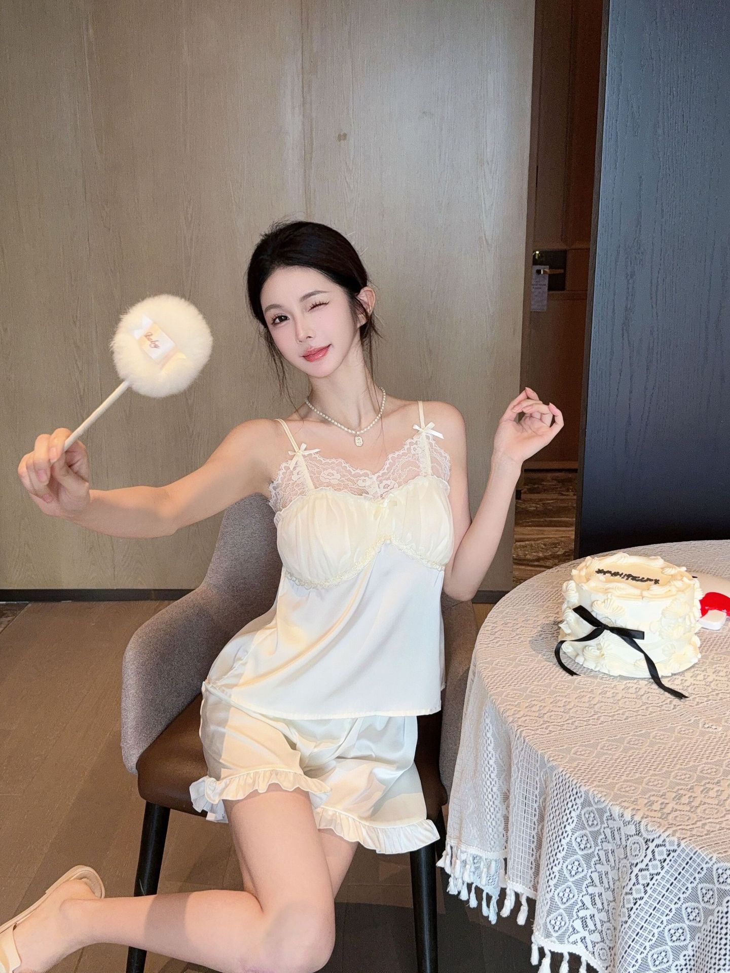 Pijamas de seda de hielo para mujer, verano, niñas, Pure Desire, pantalones cortos con tirantes, ropa para el hogar, traje, pijamas para mujer, rosa, sexy, Pure Desire