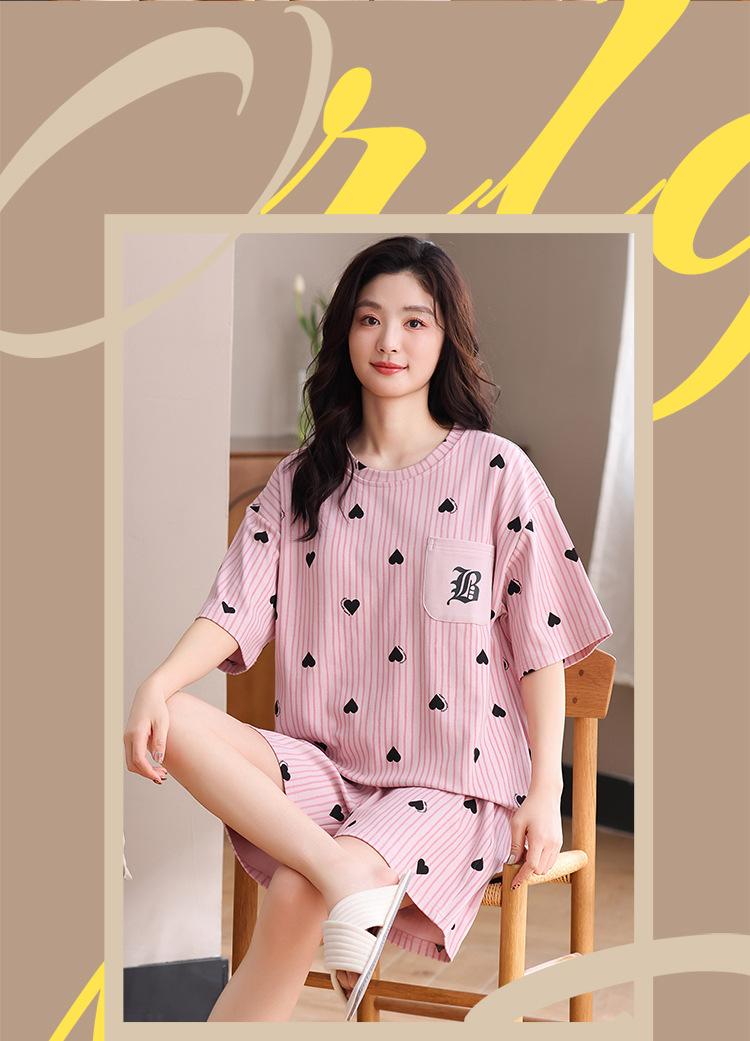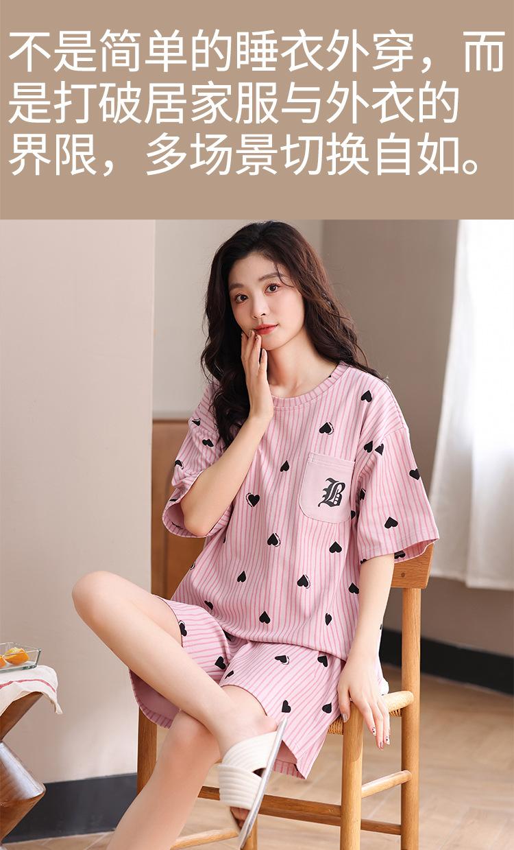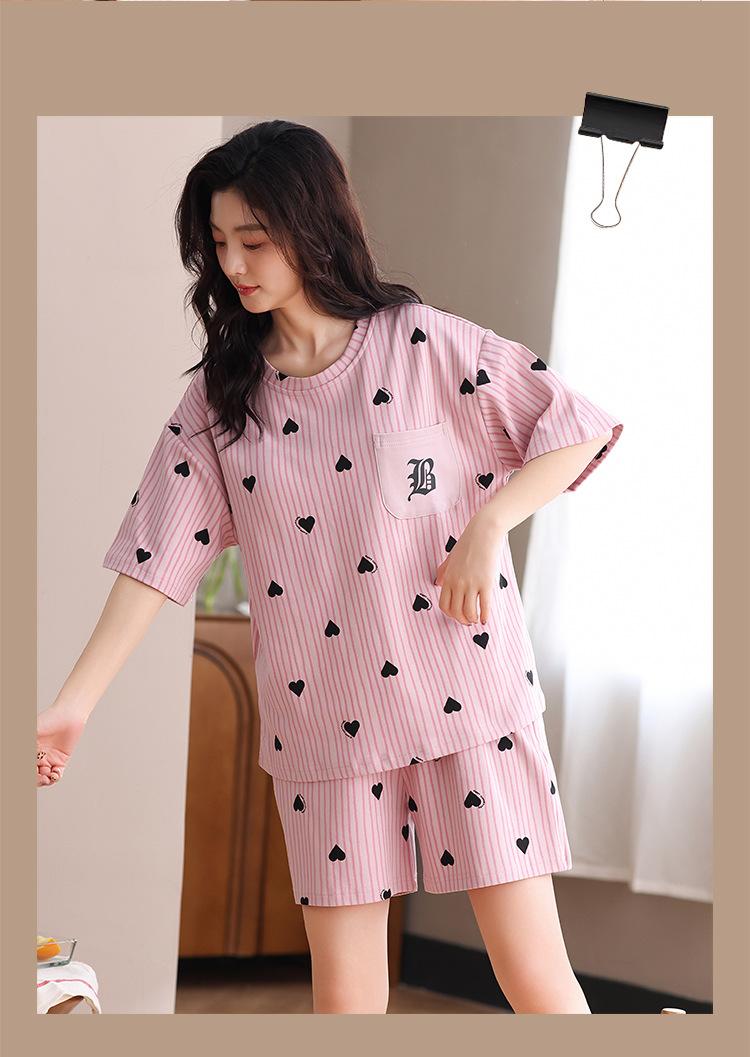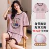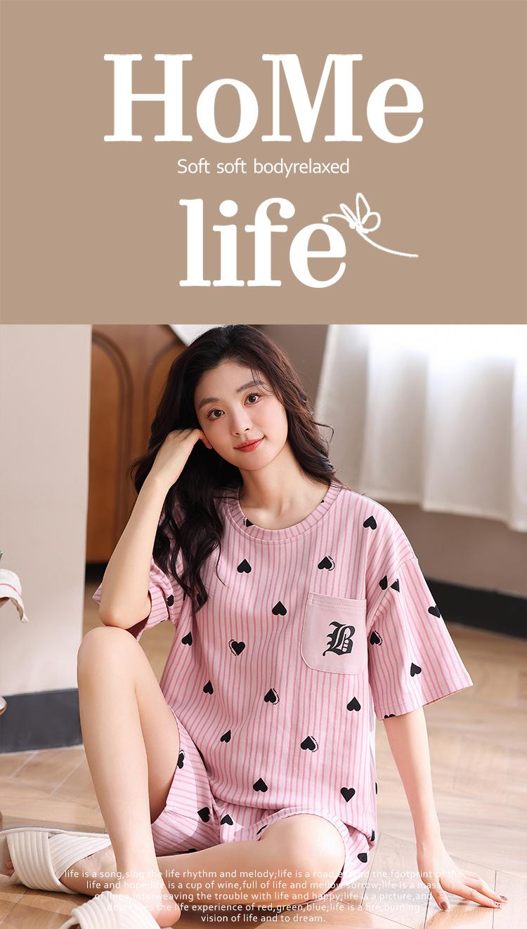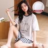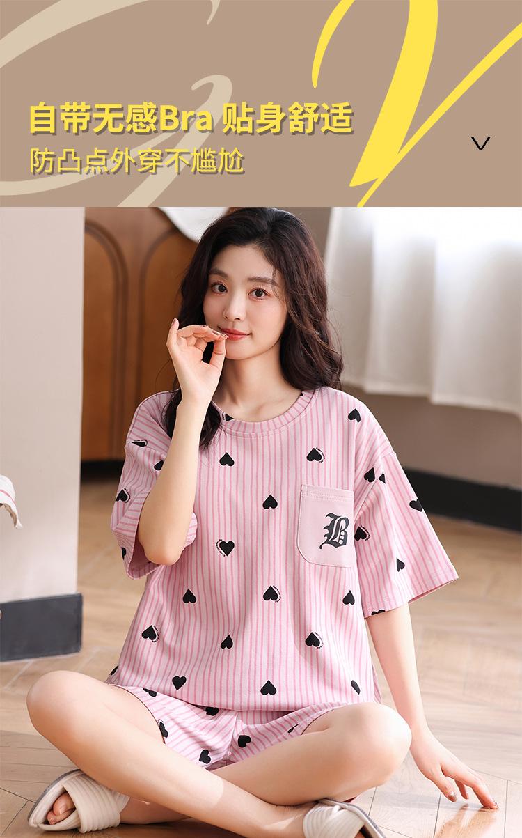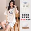 Pijama Nuevo de Mujer de Manga Corta y Pantalones Cortos Algodón Puro con Almohadilla en el Pecho Verano Algodón Cuello Redondo Pulóver Se Puede Usar Fuera Conjunto de Ropa para el Hogar