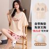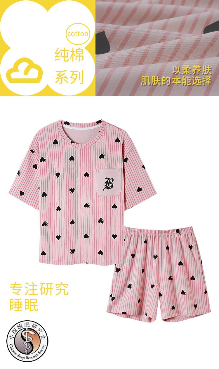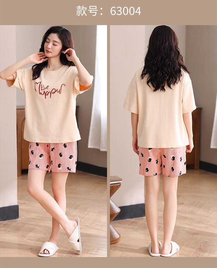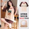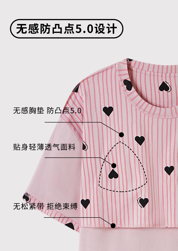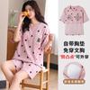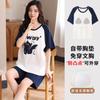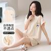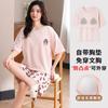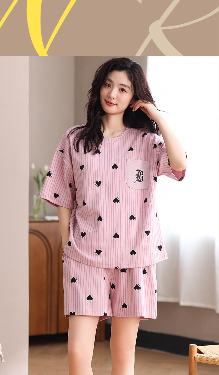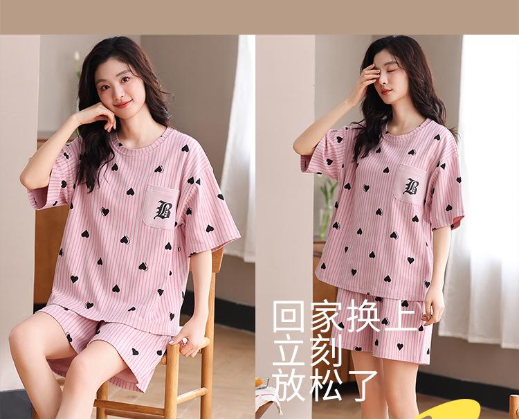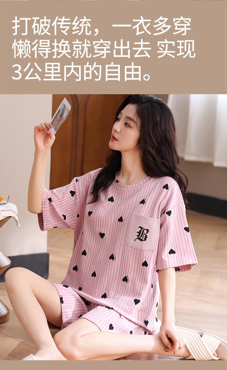 Pijama Nuevo de Mujer de Manga Corta y Pantalones Cortos Algodón Puro con Almohadilla en el Pecho Verano Algodón Cuello Redondo Pulóver Se Puede Usar Fuera Conjunto de Ropa para el Hogar