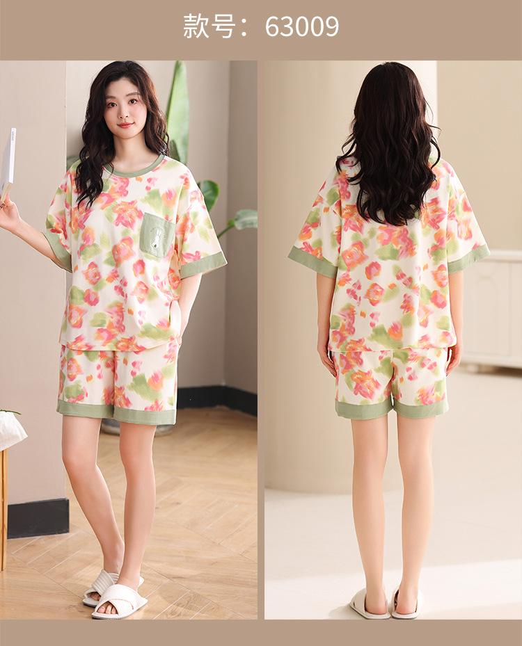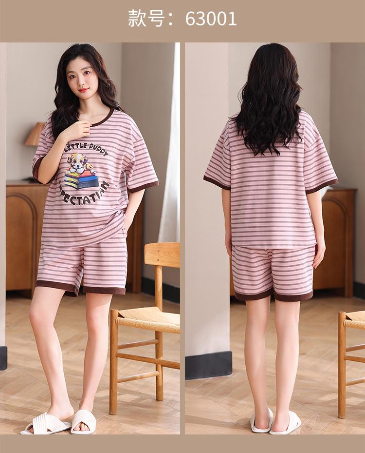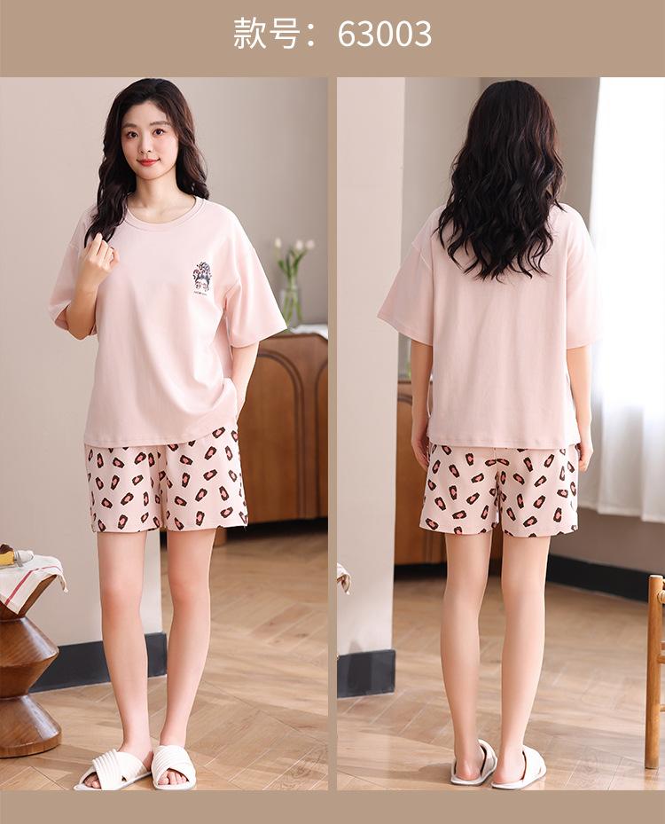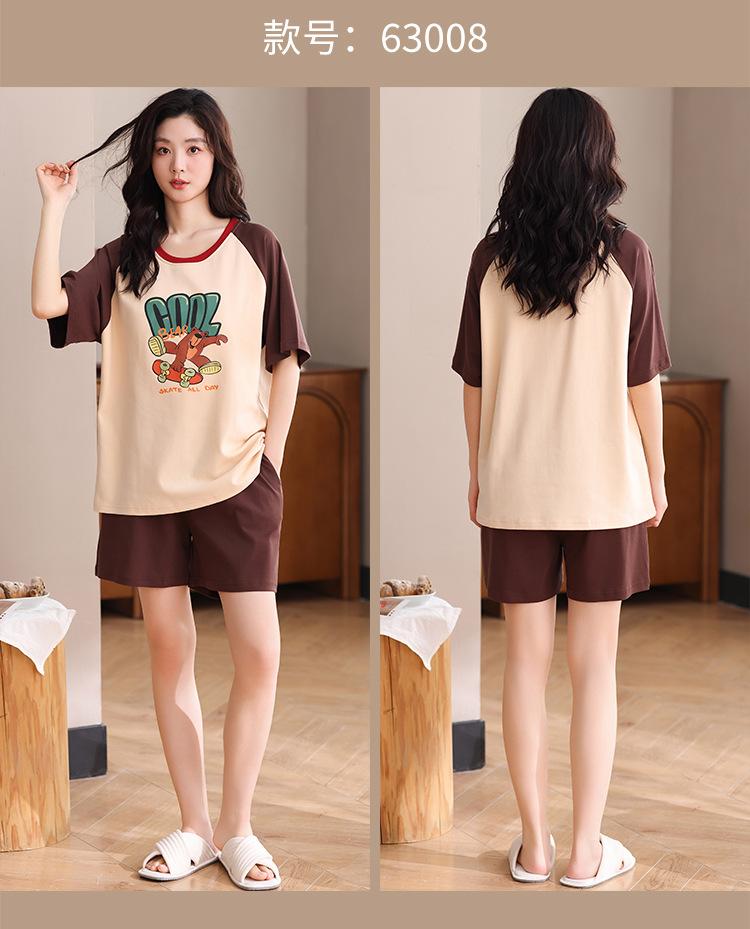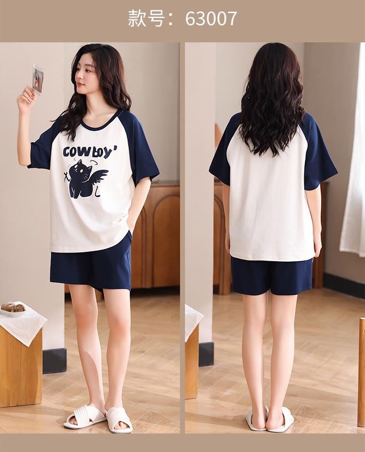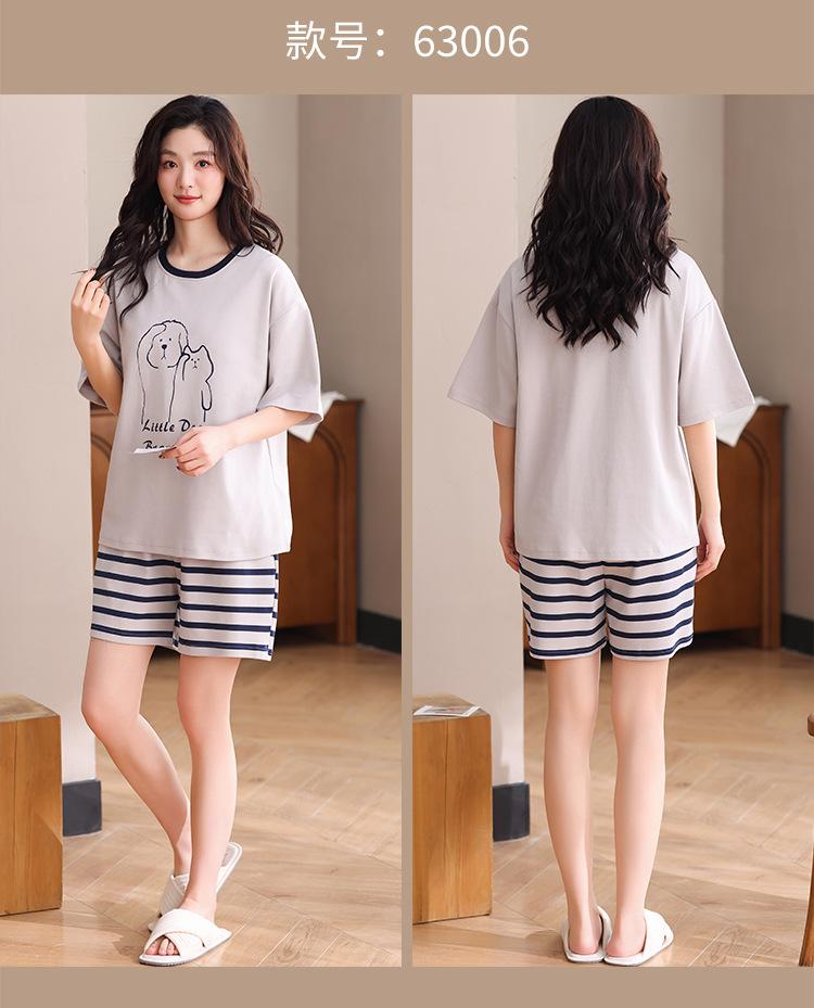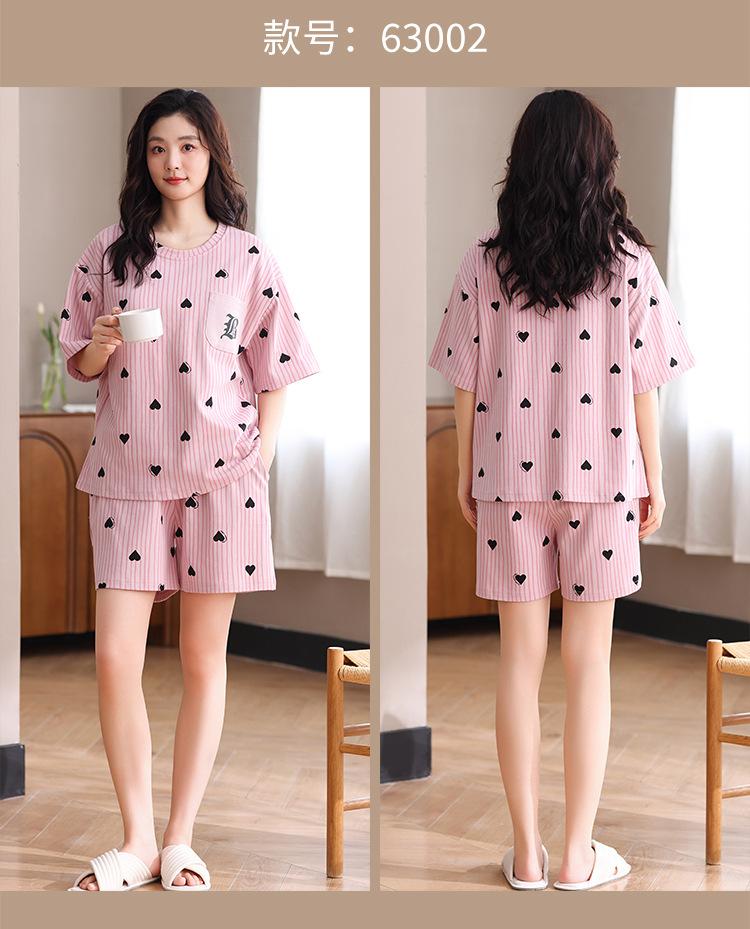 Pijama Nuevo de Mujer de Manga Corta y Pantalones Cortos Algodón Puro con Almohadilla en el Pecho Verano Algodón Cuello Redondo Pulóver Se Puede Usar Fuera Conjunto de Ropa para el Hogar