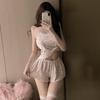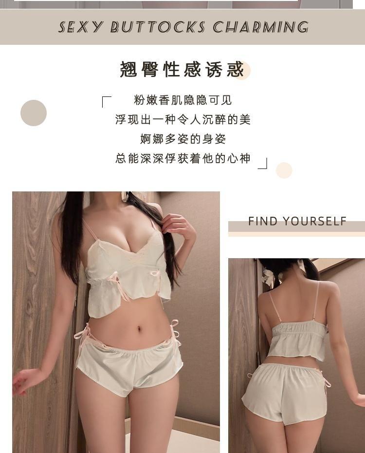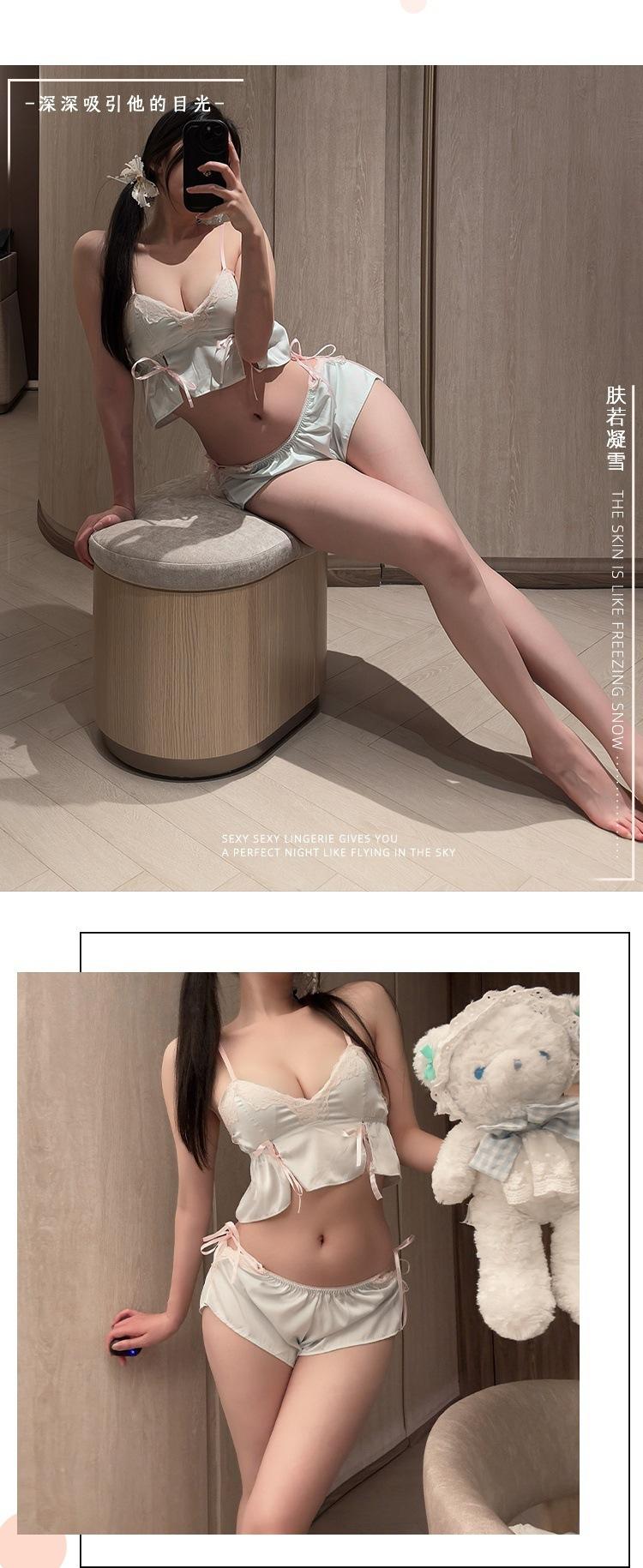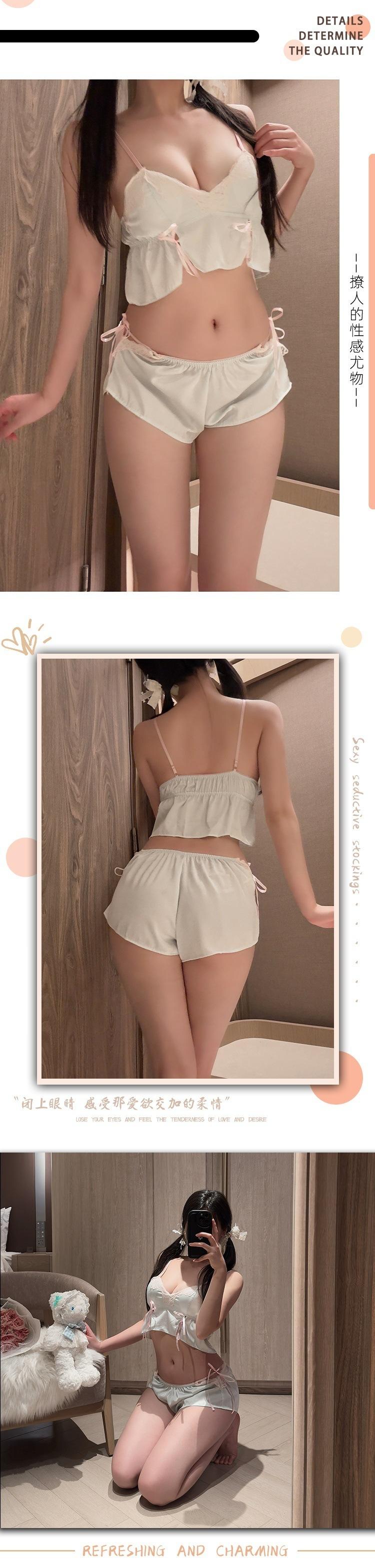 Estilo de chica pura y sexy Nuevo con almohadilla en el pecho Pijama Sexy para estar en casa Shorts con lazo Lencería Conjunto de dos piezas para mujer