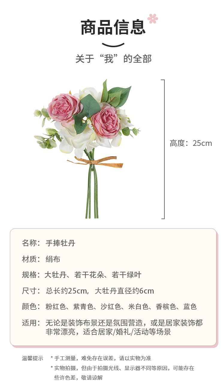 Boda coreana novia sosteniendo ramo de flores sosteniendo peonía decoración del hogar flor artificial flor artificial accesorios para sesión de fotos