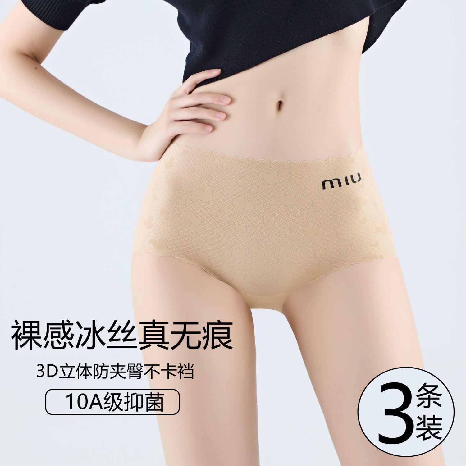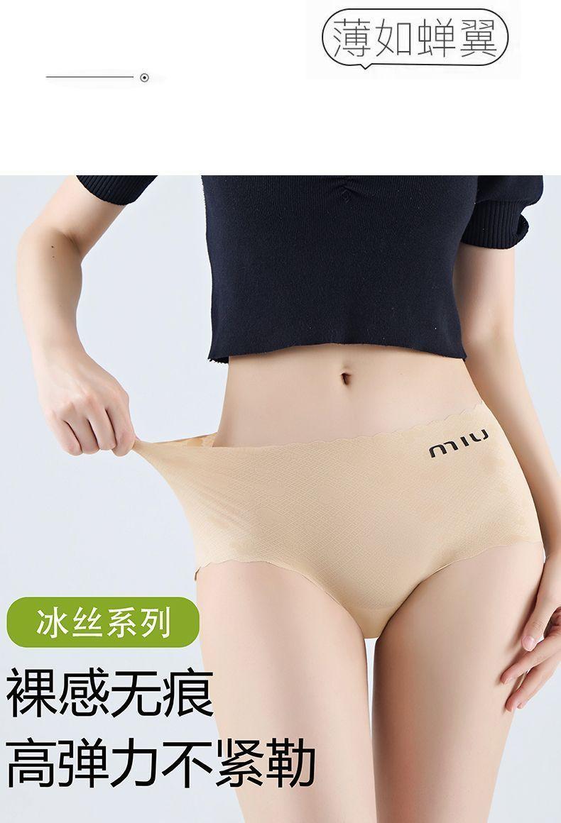 Calzones de Cintura Media de Seda de Hielo de Una Pieza para Niña Sin Costuras Antibacterianos Entrepierna de Algodón Delgados Transpirables Levanta Glúteos Ropa Interior Cómoda para Mujer