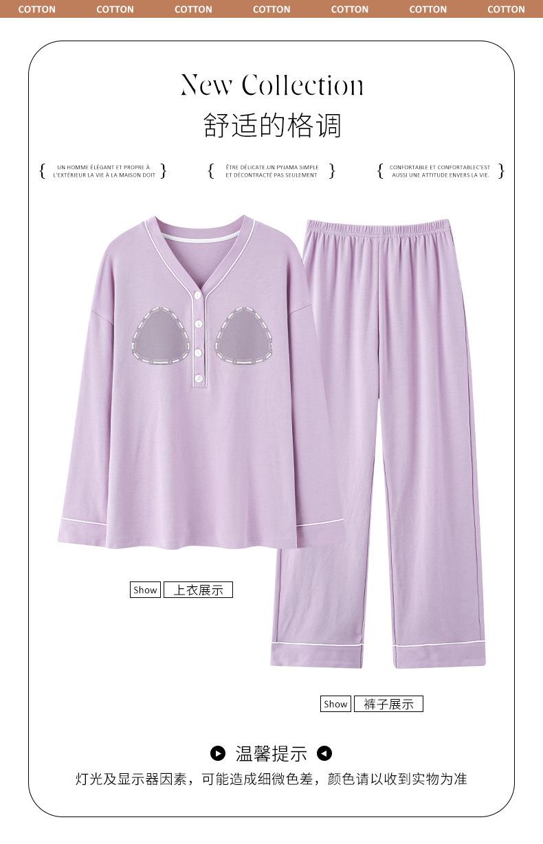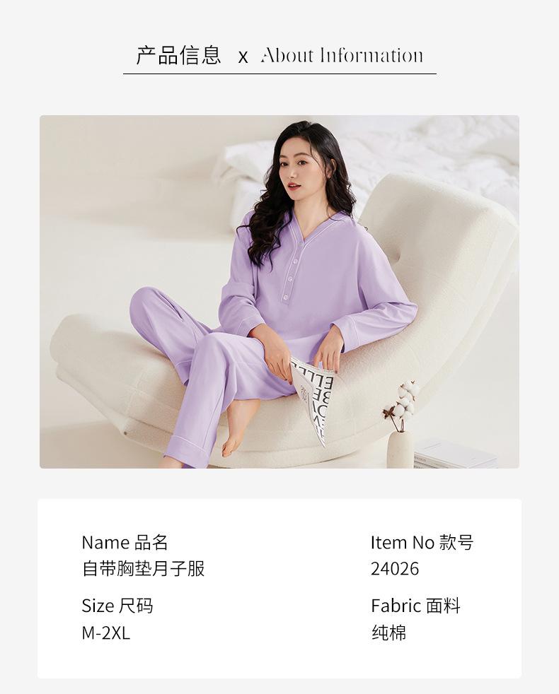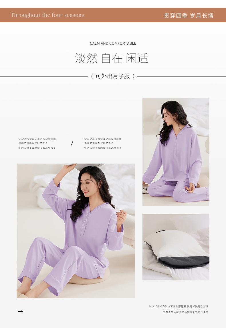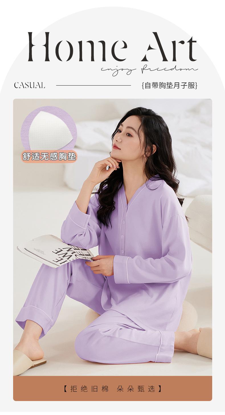 Ropa de Maternidad de Algodón Estilo Nuevo Xi Yue con Almohadilla en el Pecho y Cierre a Presión Temporada Primavera y Otoño Mujeres Embarazadas Pijama de Color Sólido Preparto y Postparto