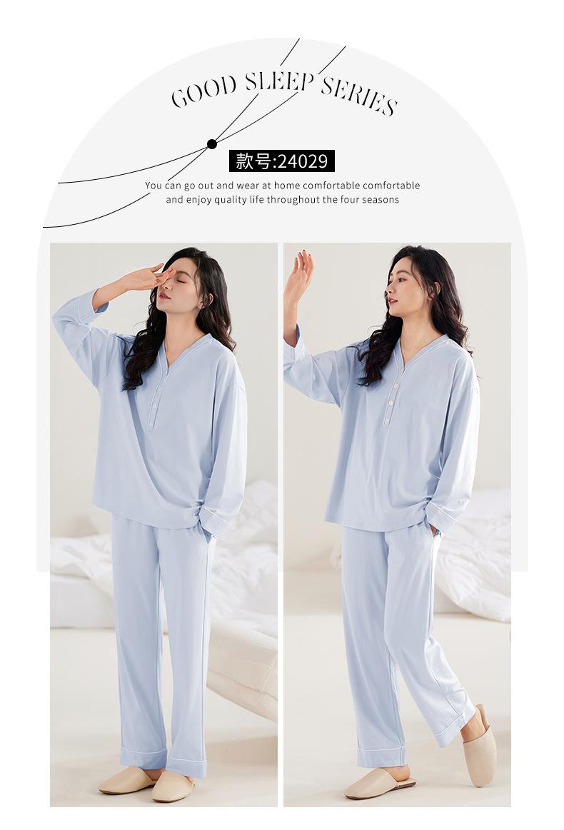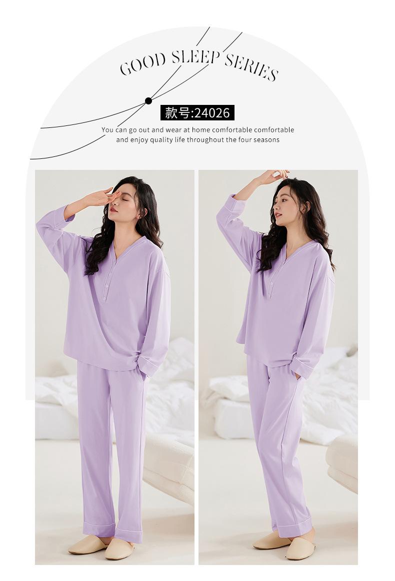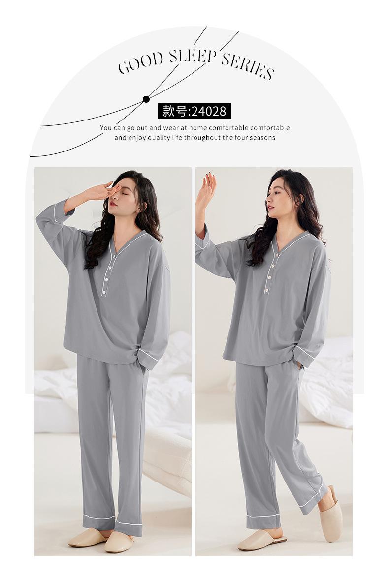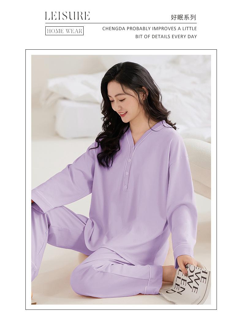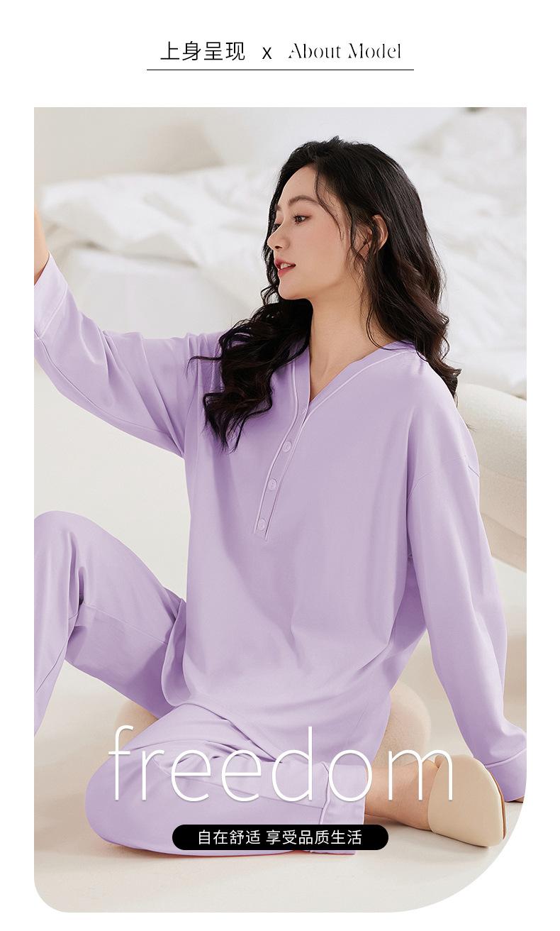 Ropa de Maternidad de Algodón Estilo Nuevo Xi Yue con Almohadilla en el Pecho y Cierre a Presión Temporada Primavera y Otoño Mujeres Embarazadas Pijama de Color Sólido Preparto y Postparto