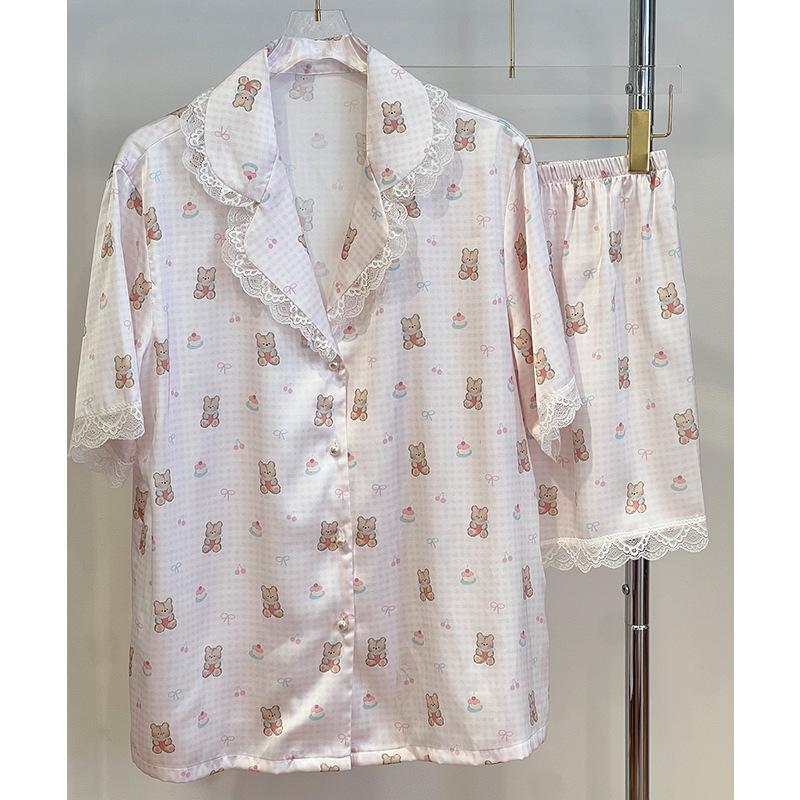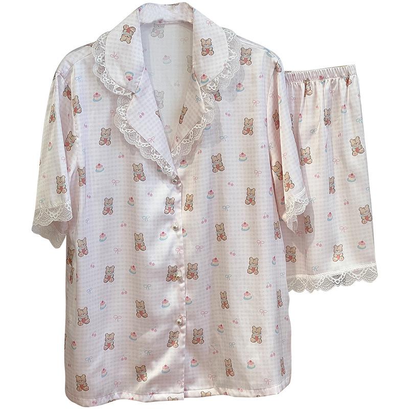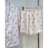 25 Pijamas de Seda de Hielo para Mujer Verano Delgadas Seda de Hielo Rosa de Alta Gama Se Pueden Usar Fuera Ropa para el Hogar Traje de Pantalón Corto de Manga Corta