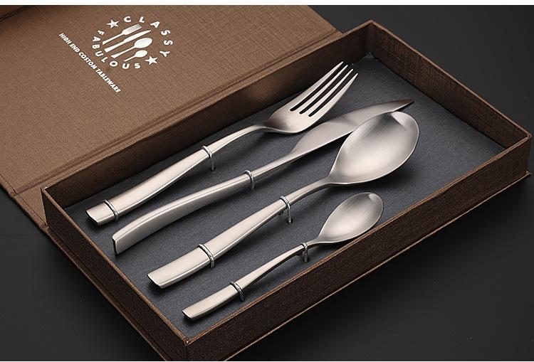 Cuchara de acero inoxidable 304, cuchillo y tenedor, juego de cubiertos para comida occidental, juego de cuchillo para bistec engrosado para hotel, fabricantes, venta al por mayor