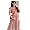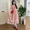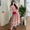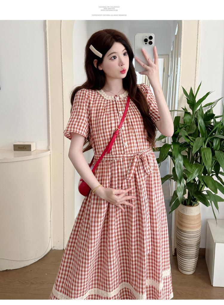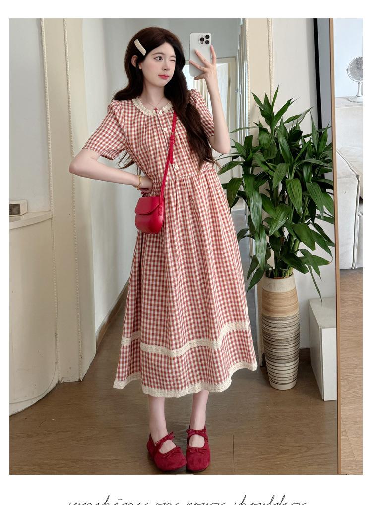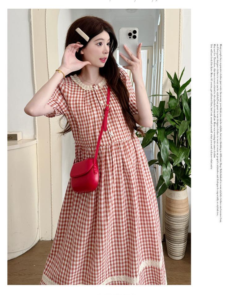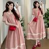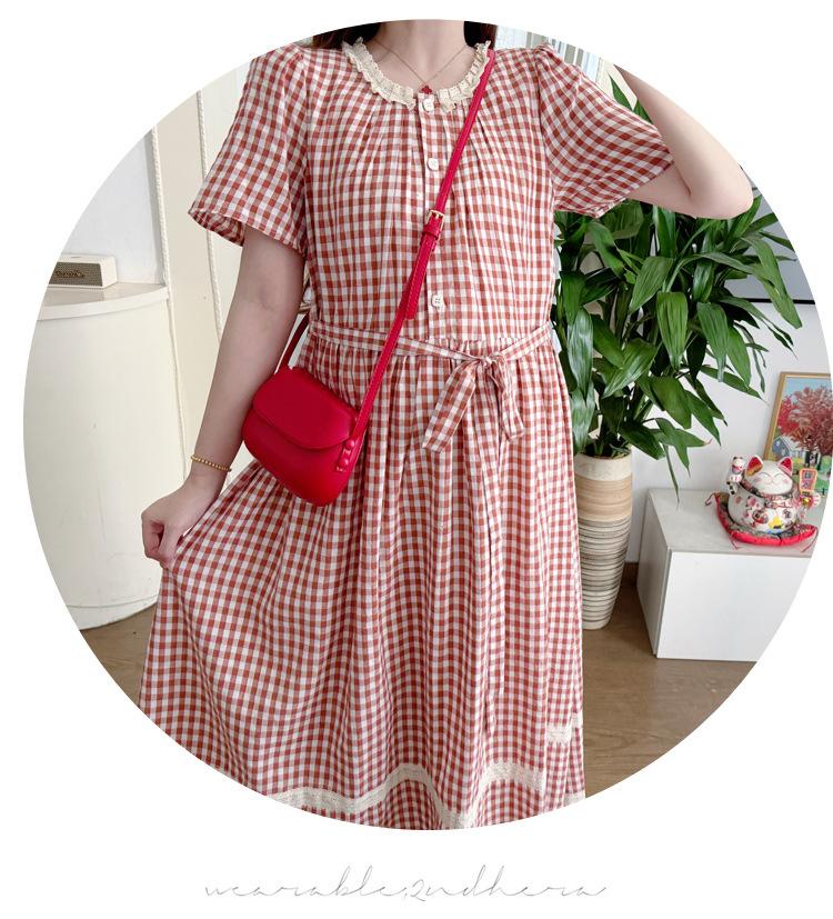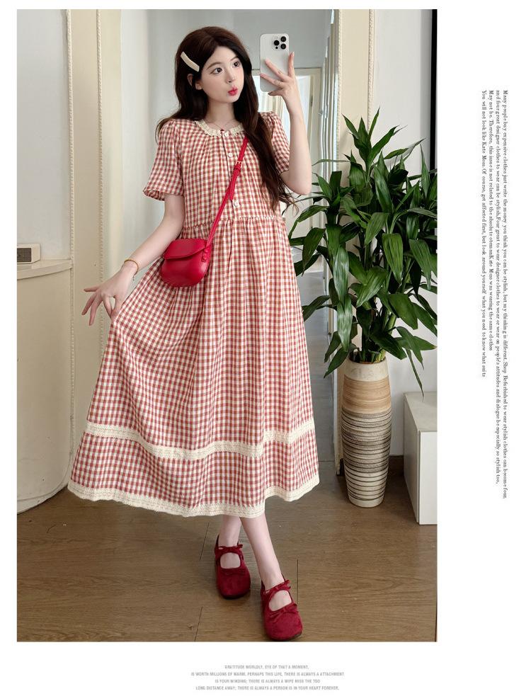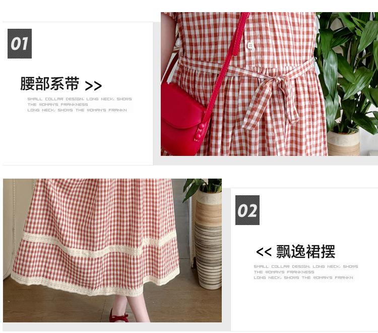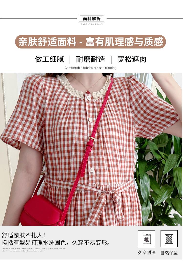 Maternidad 2025 Verano Nuevo Dulce Reductor de Edad Cuadros Rojos Encaje Suelto Talla Grande Vestido para Mujeres Embarazadas