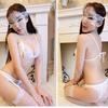 Pink suit (bra + panties +, Purple suit (bra + panties + garter belt), Pink suit + fan socks, Purple suit + purple stockings