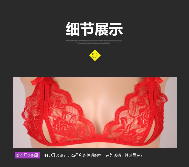 Ropa interior sexy para mujer de tres puntos de encaje transparente talla grande uniforme transparente sexy traje de pasión pantalones con tirantes